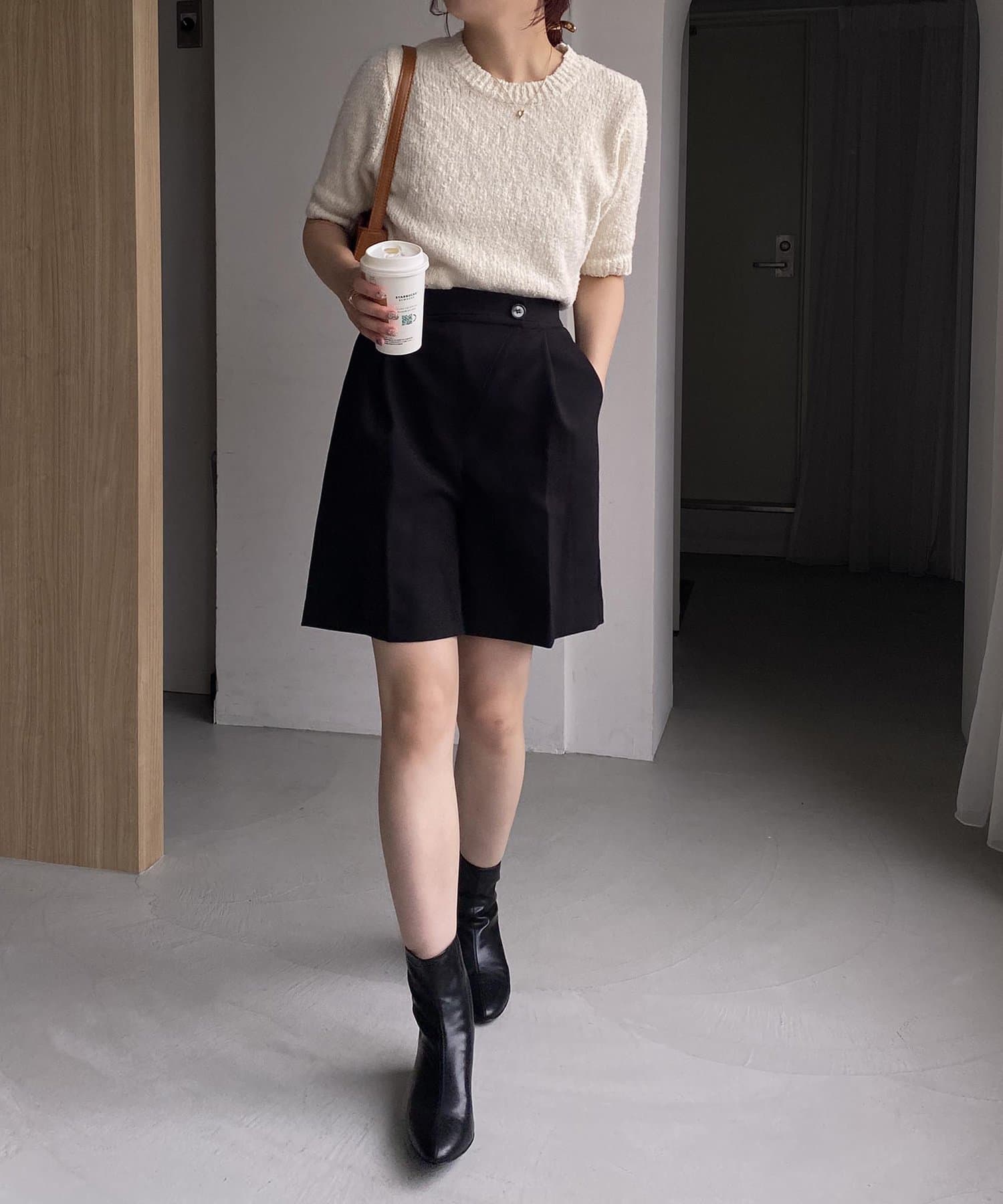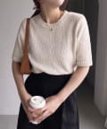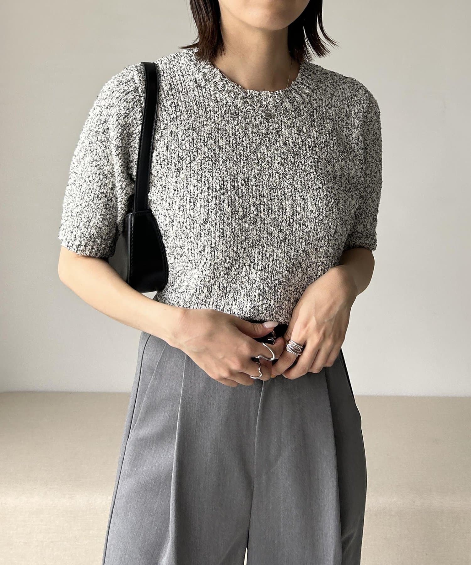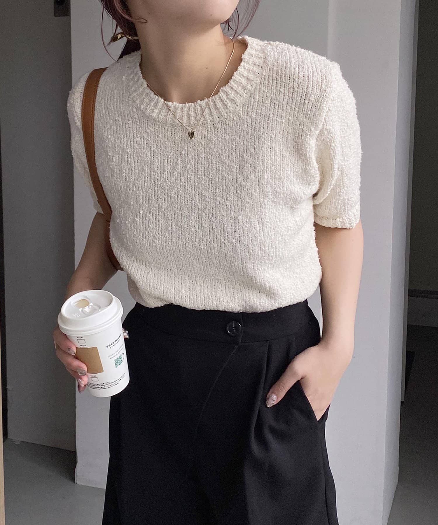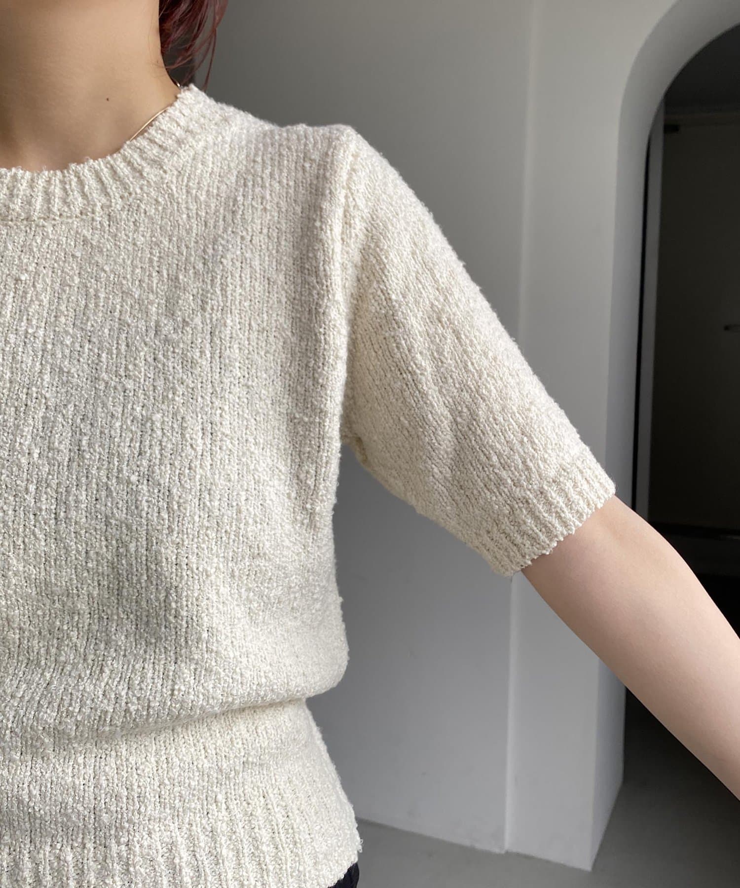 トレンドの凹凸感のあるネップ糸を使用したシンプルなサマーニット