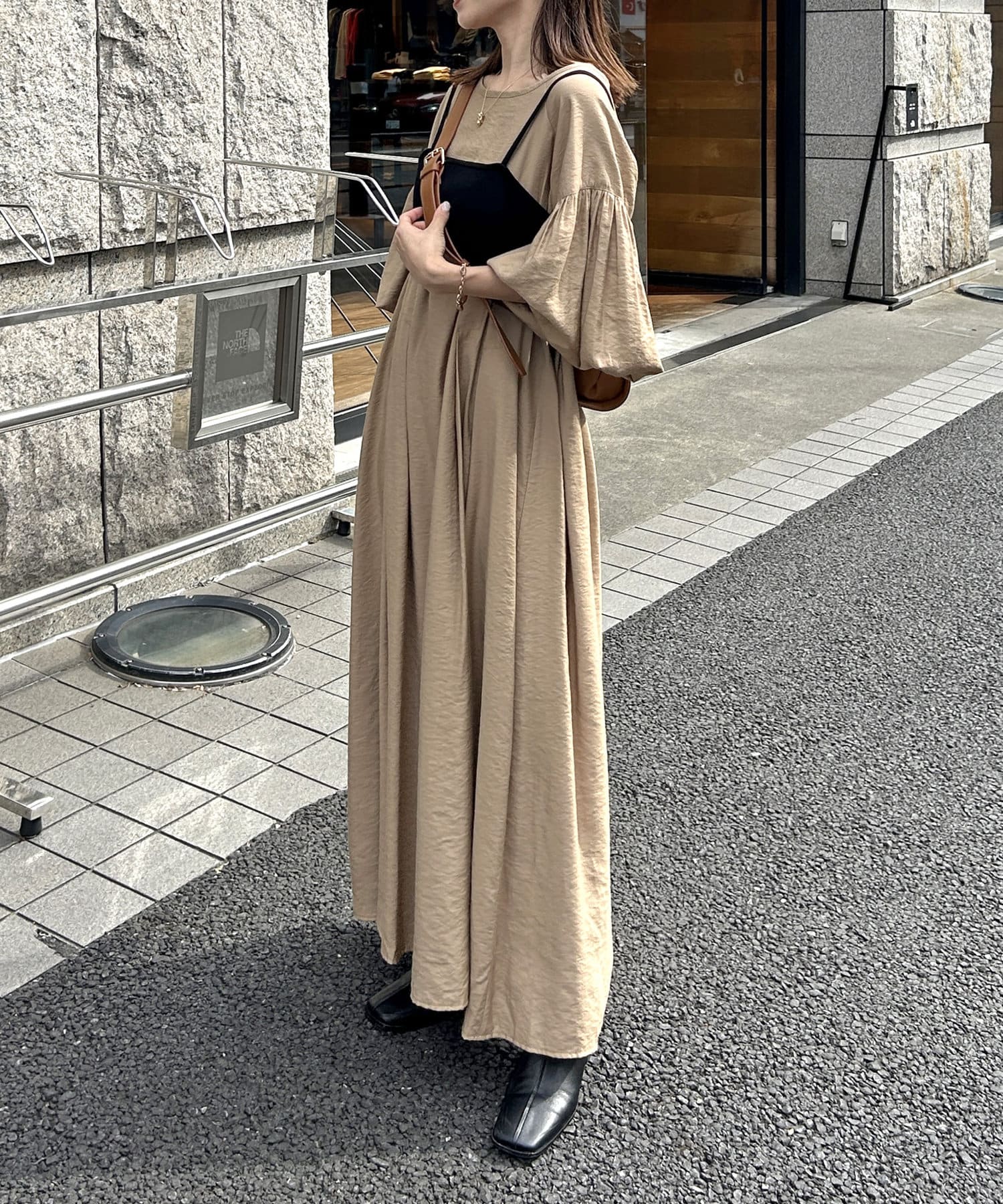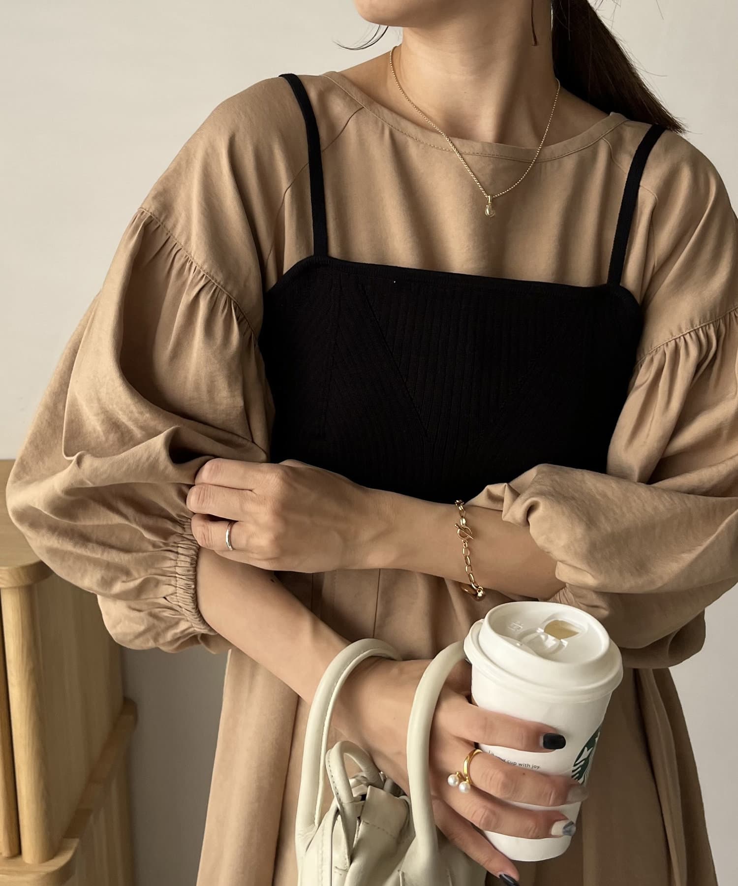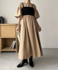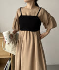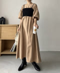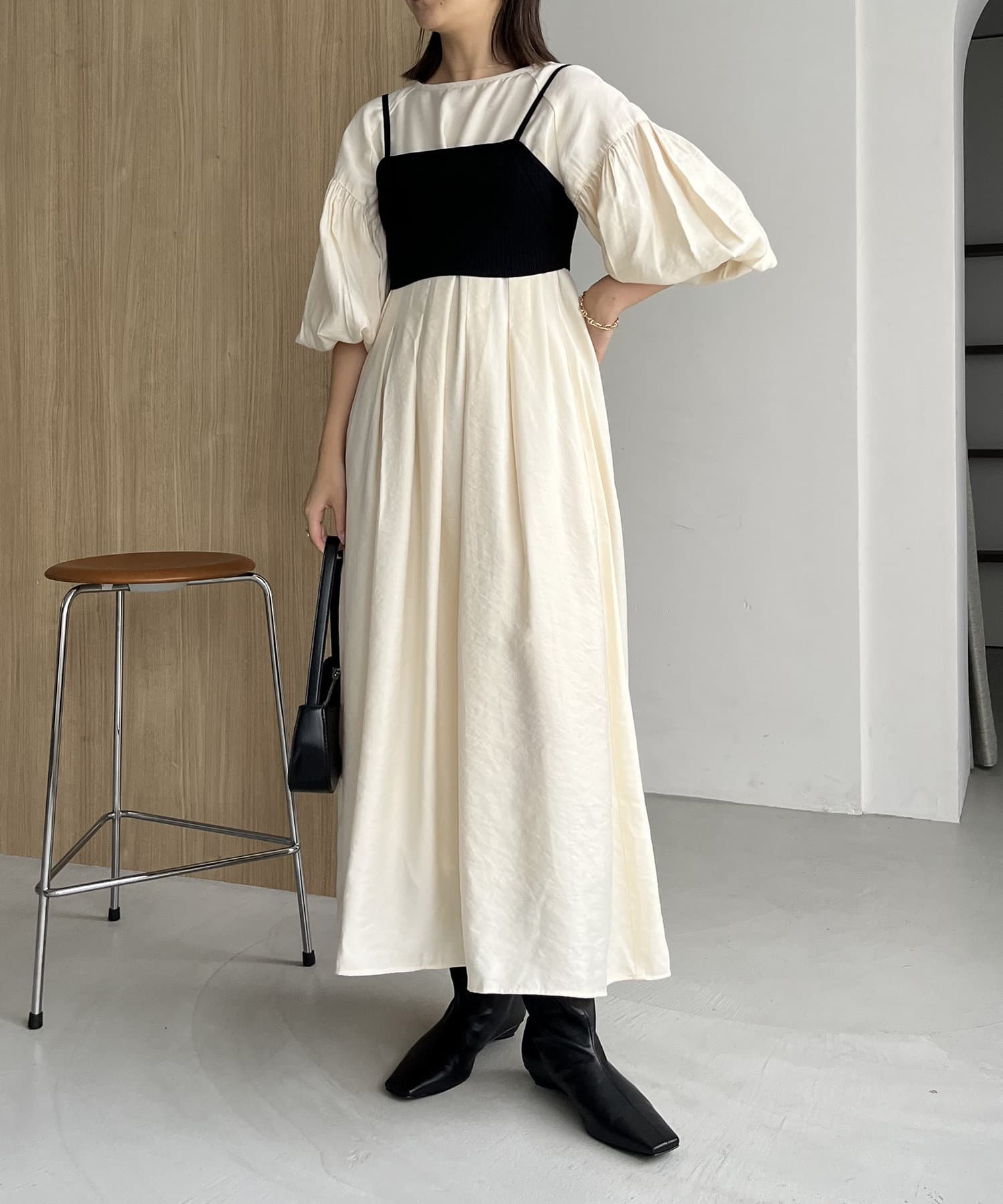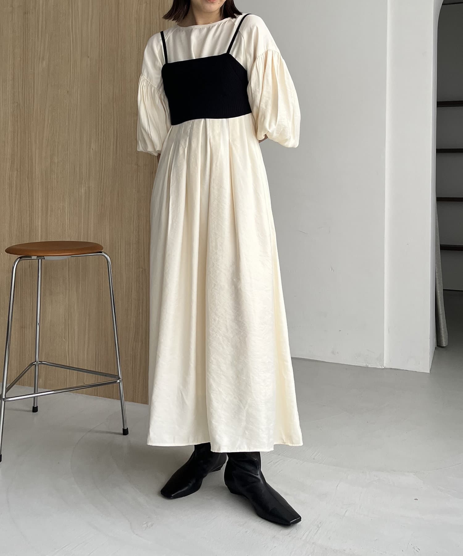 パフワンピースに、ニットビスチェがセットになった着映えアイテム