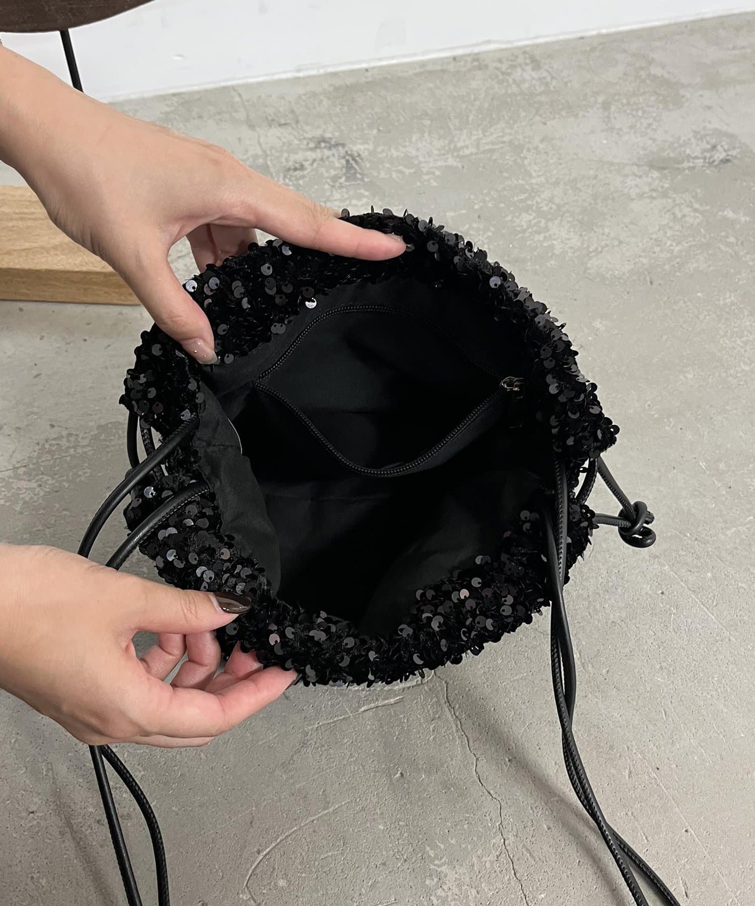 スパンコール巾着バッグ