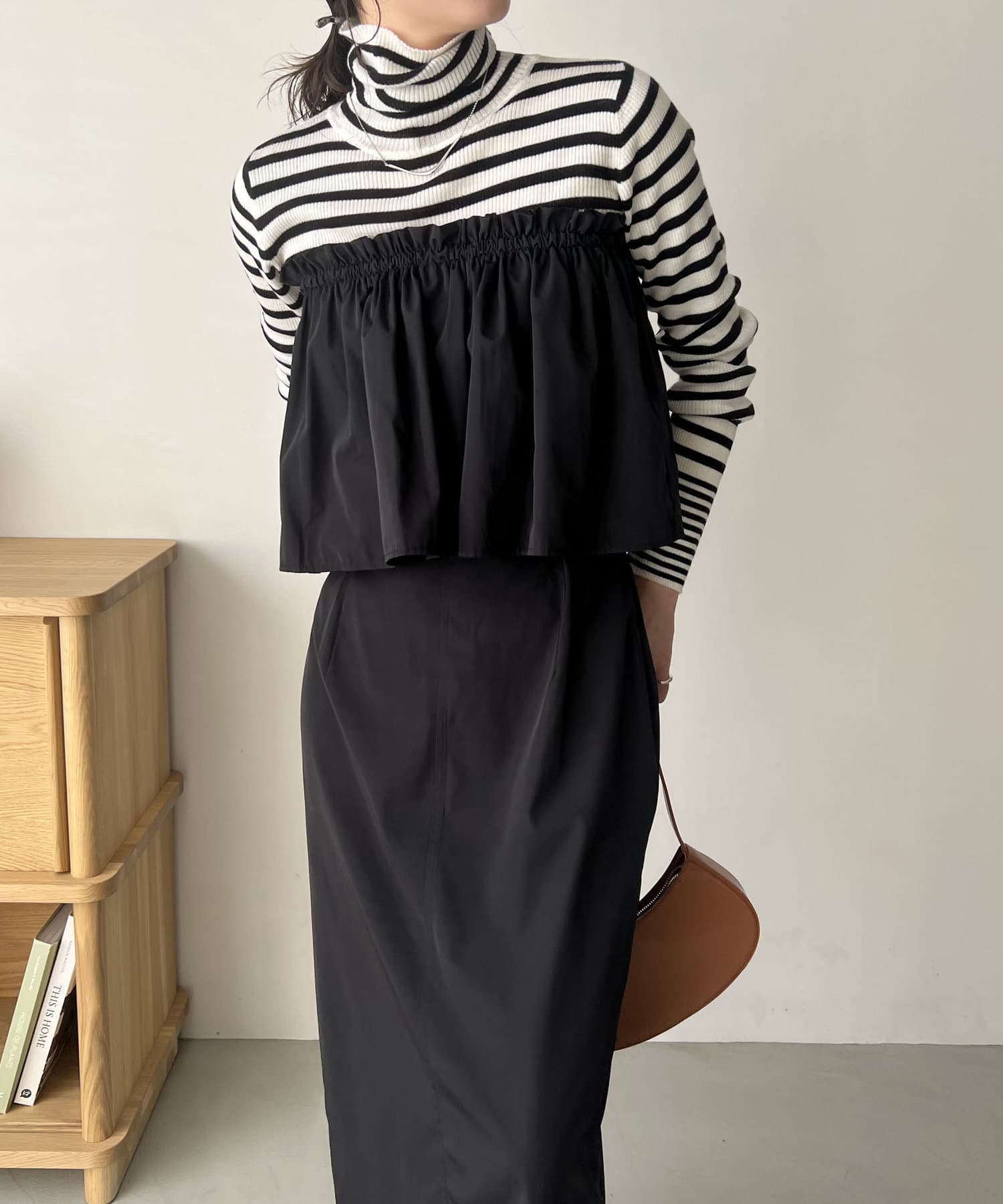 ・Iラインのスカートに取り外し可能なフリルのペプラムパーツがセットになったアイテム
