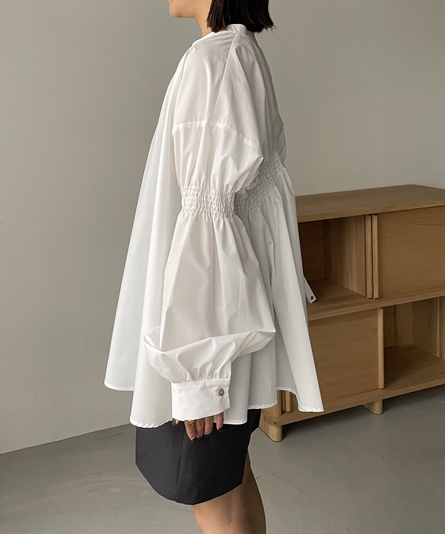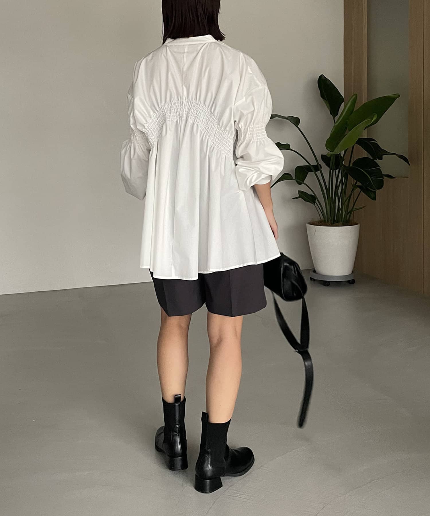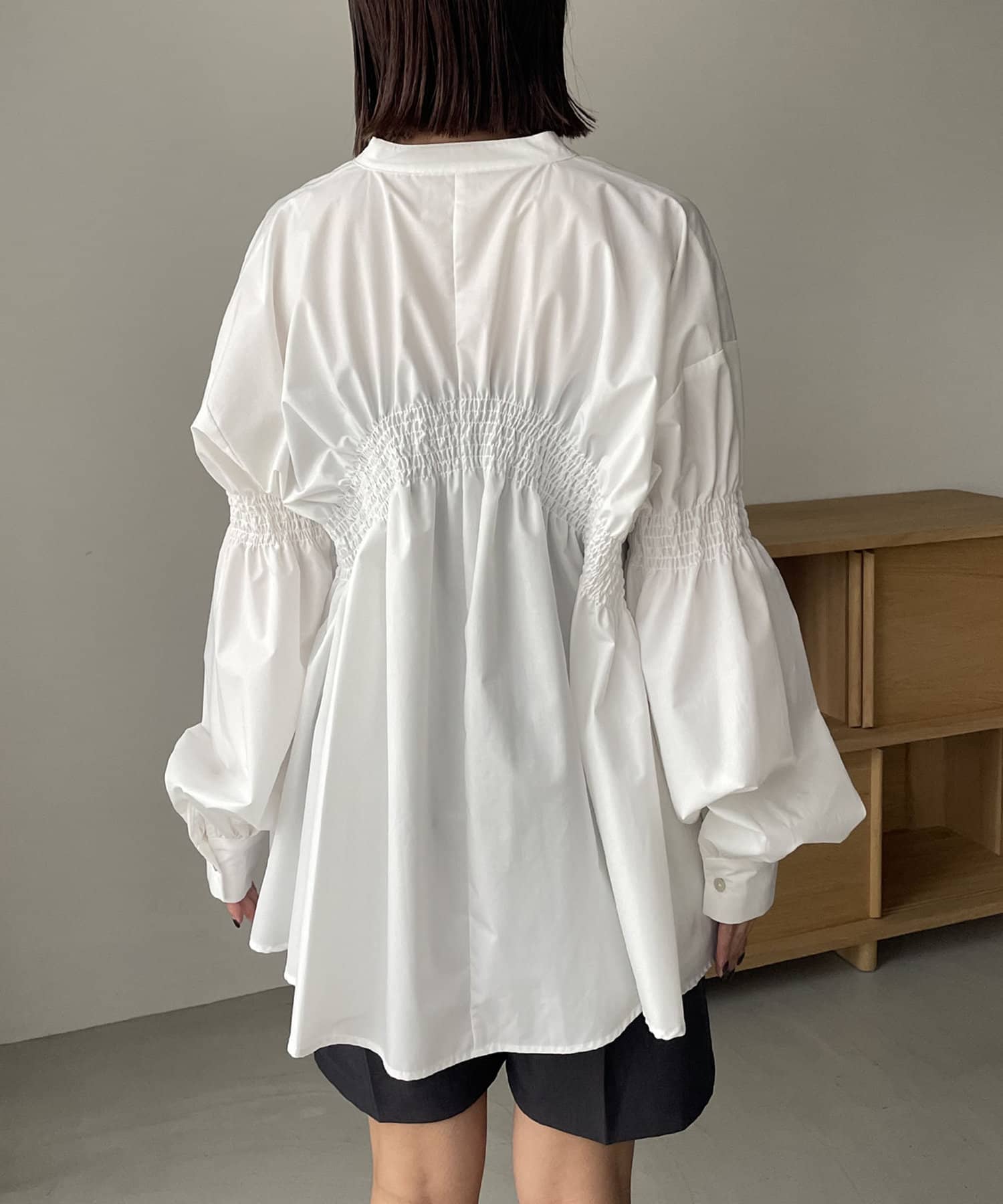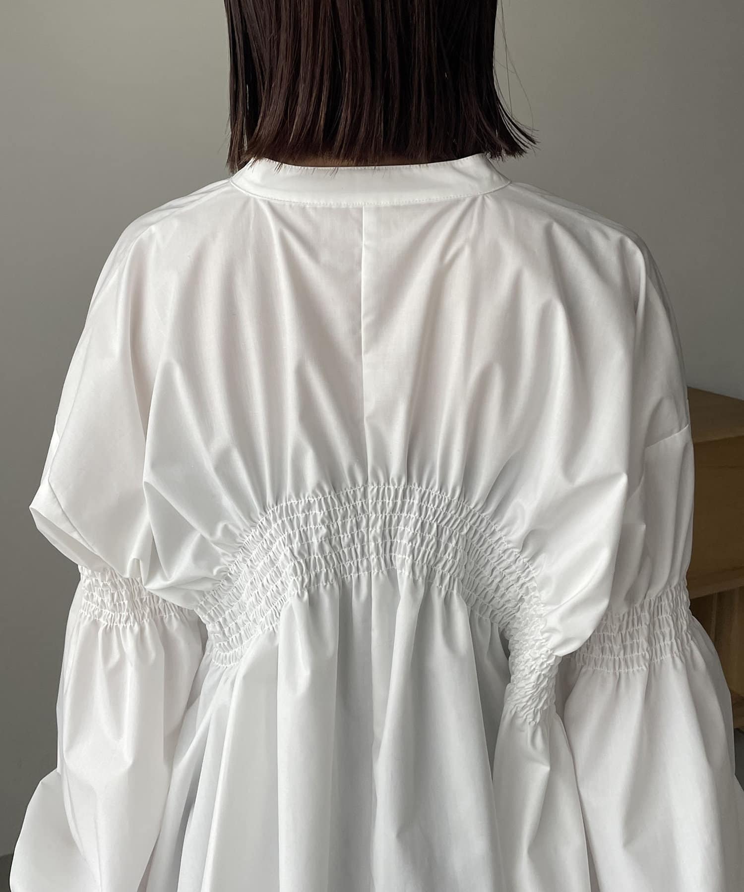 ・背中にラウンド型に入ったシャーリングギャザーがポイント