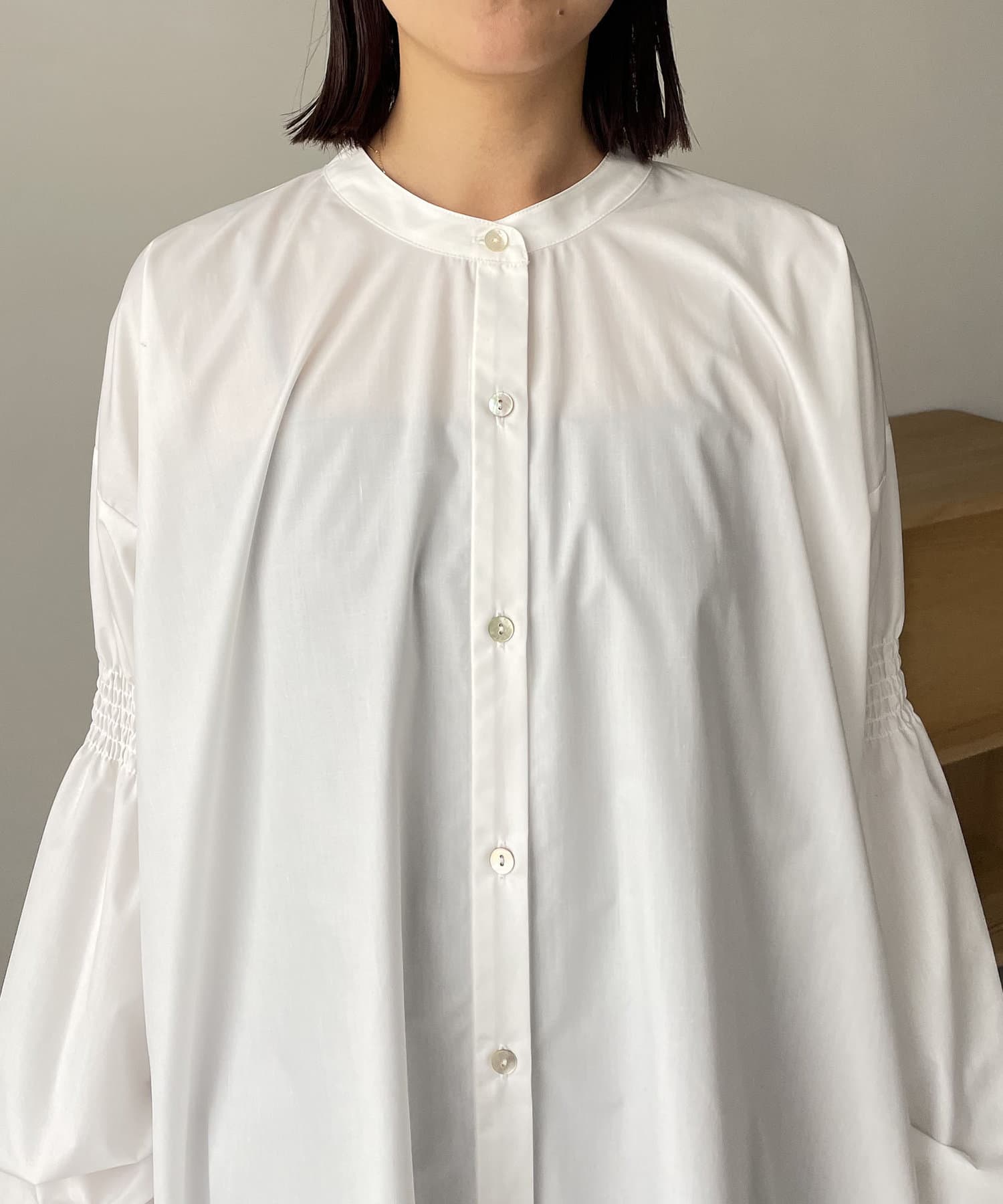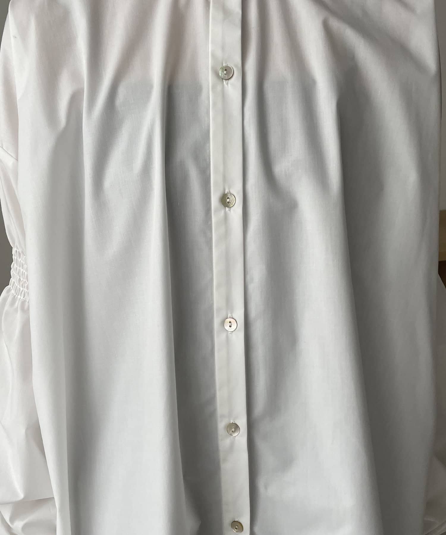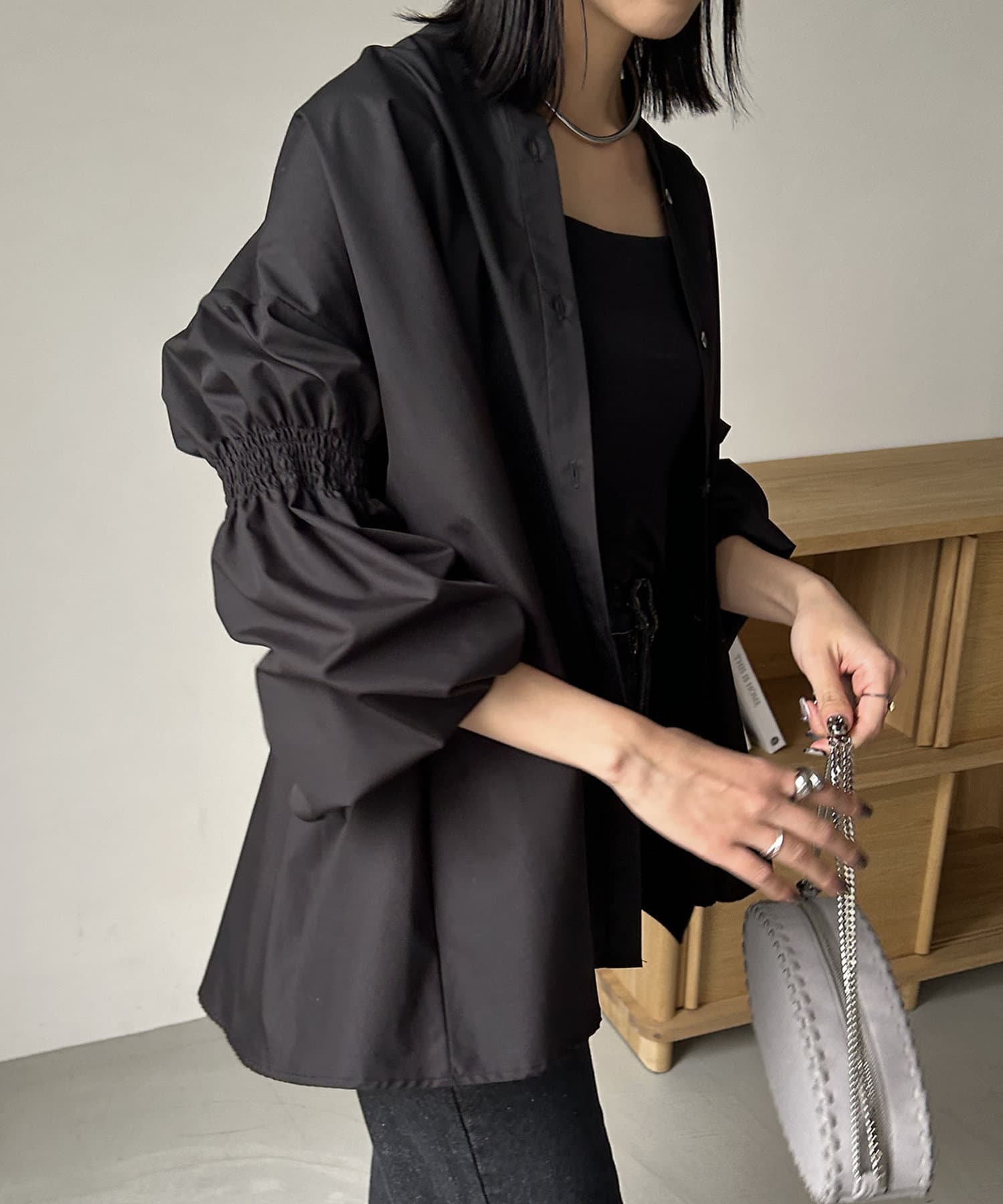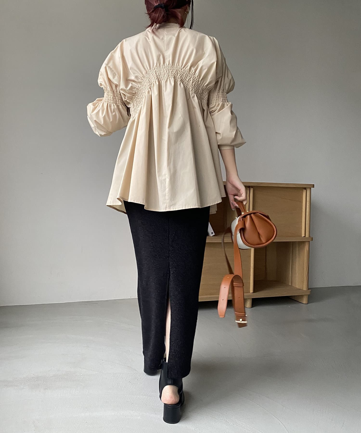 ・肘上にもシャーリングが入っており、袖の形もアクセントに