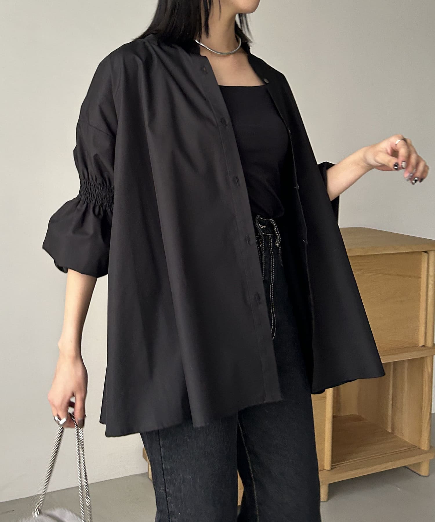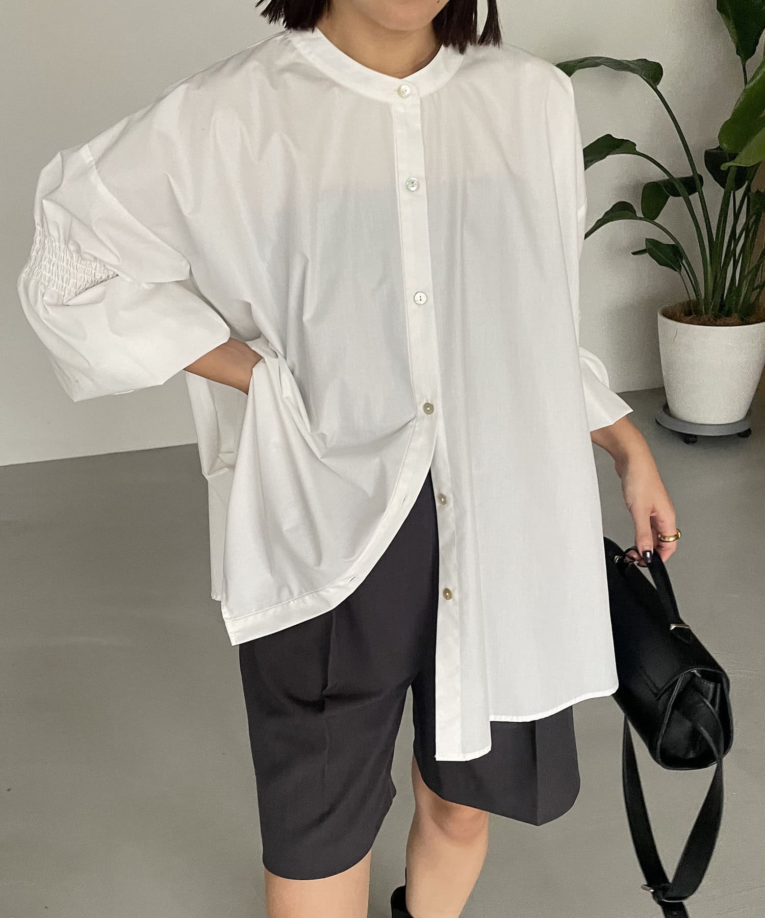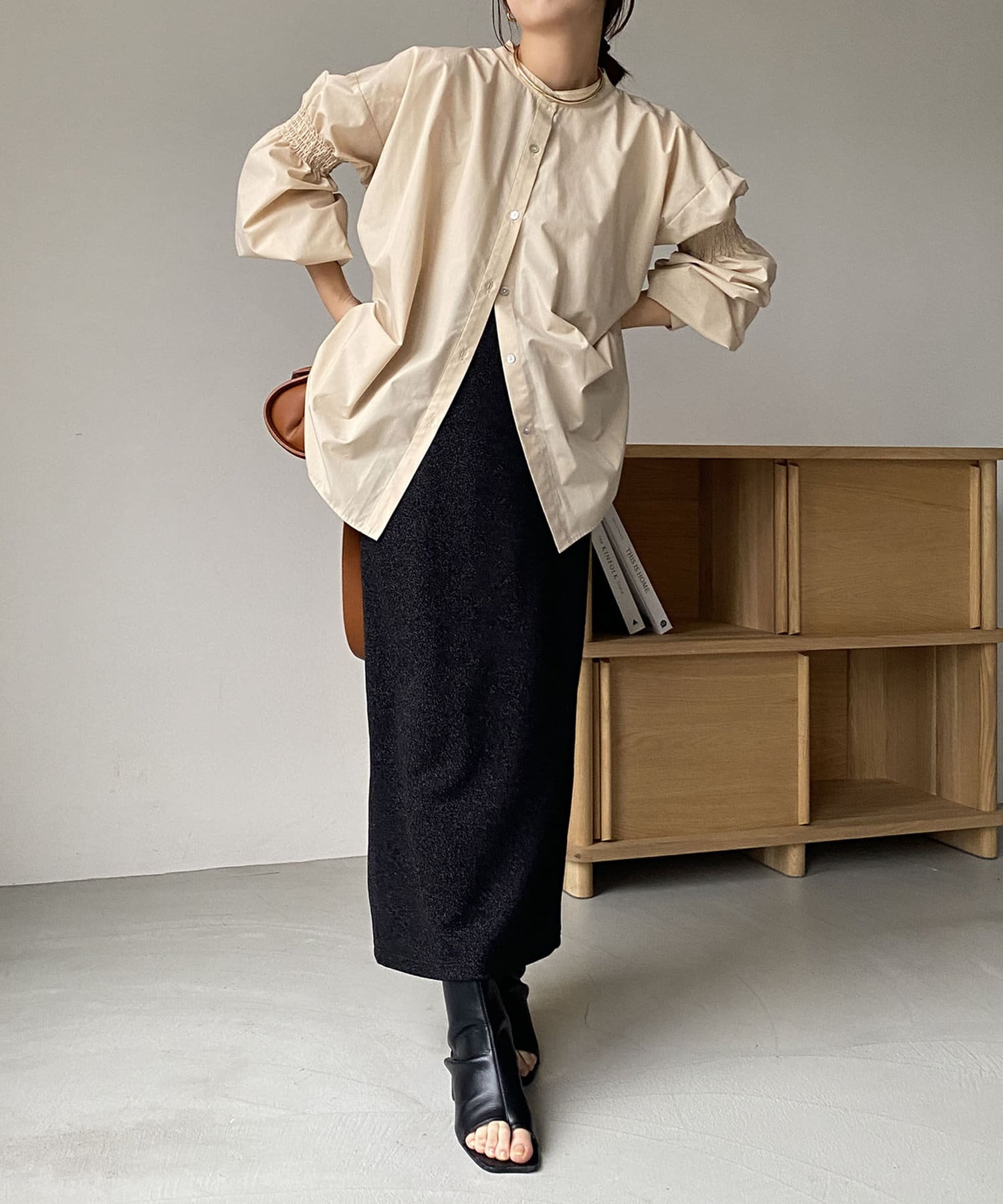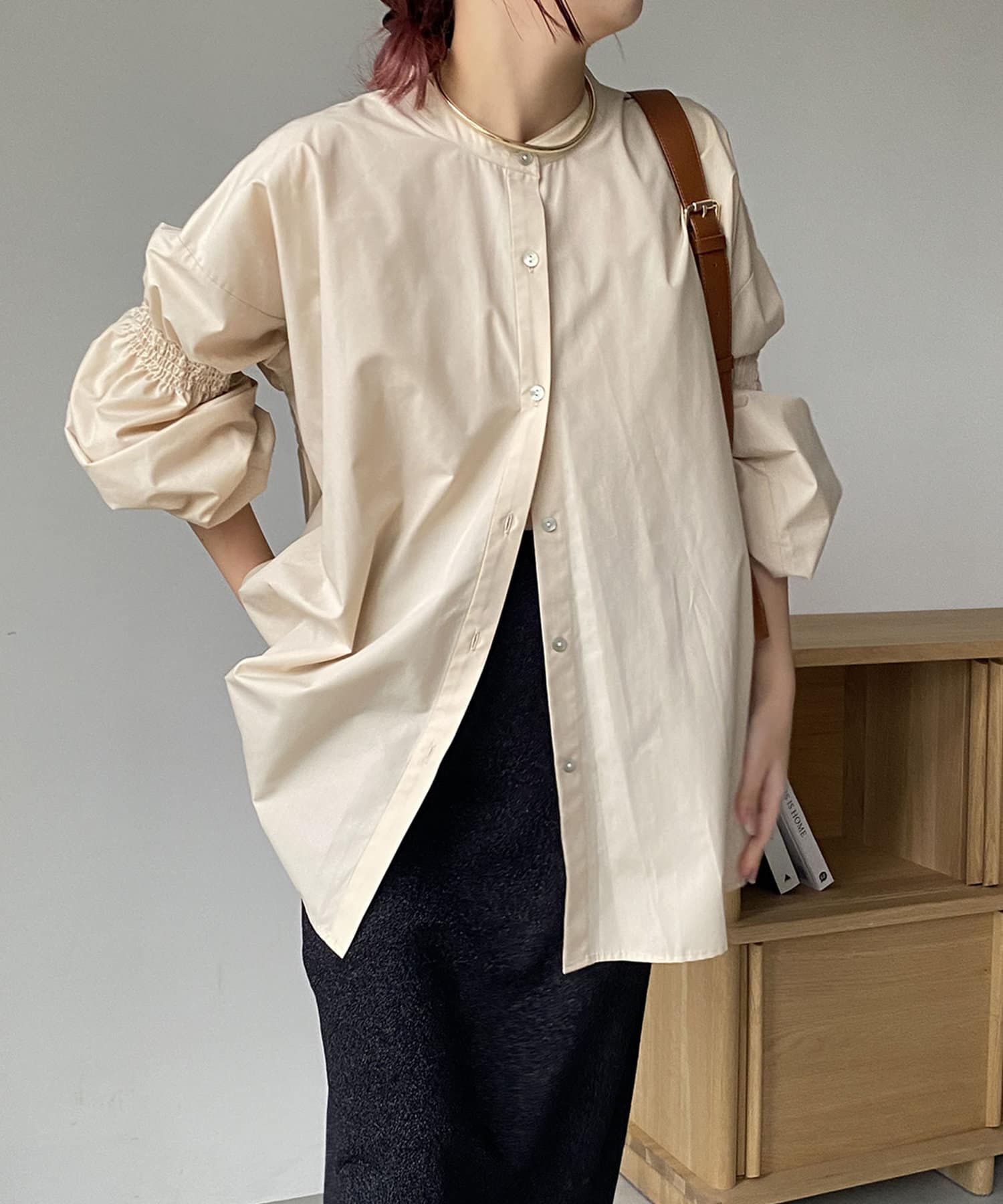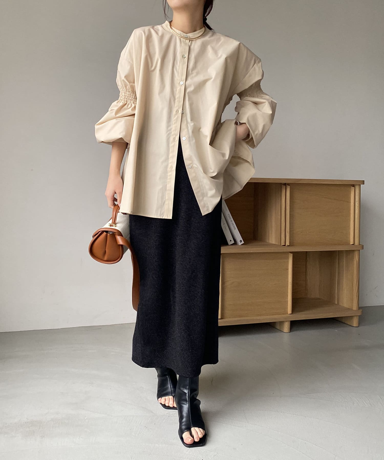 ・肘上にもシャーリングが入っており、袖の形もアクセントに