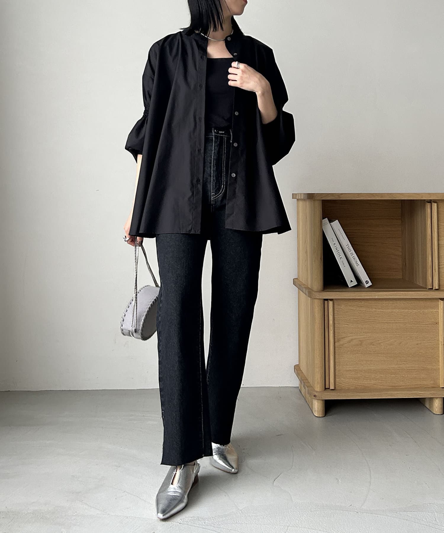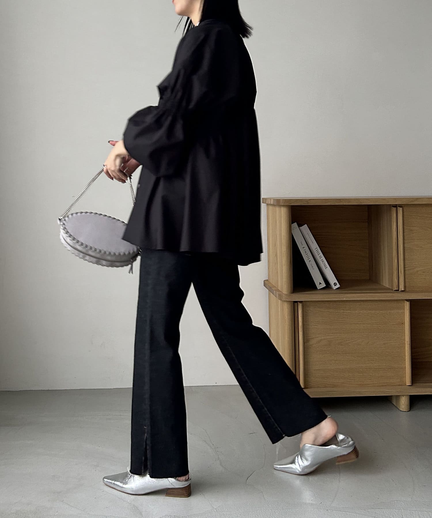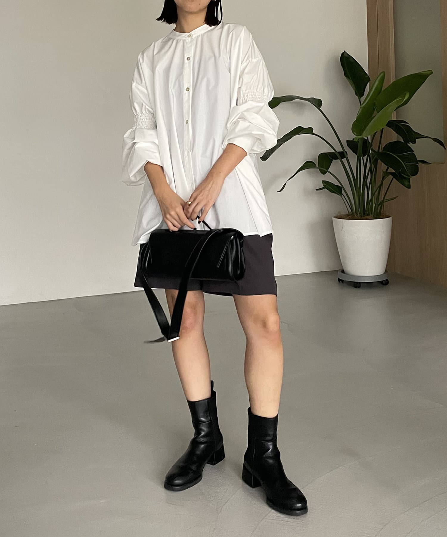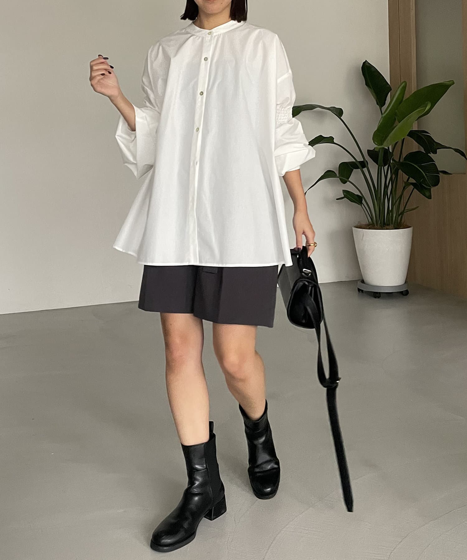 ・肘上にもシャーリングが入っており、袖の形もアクセントに