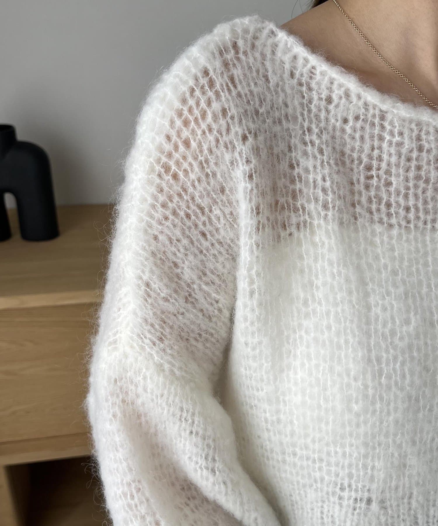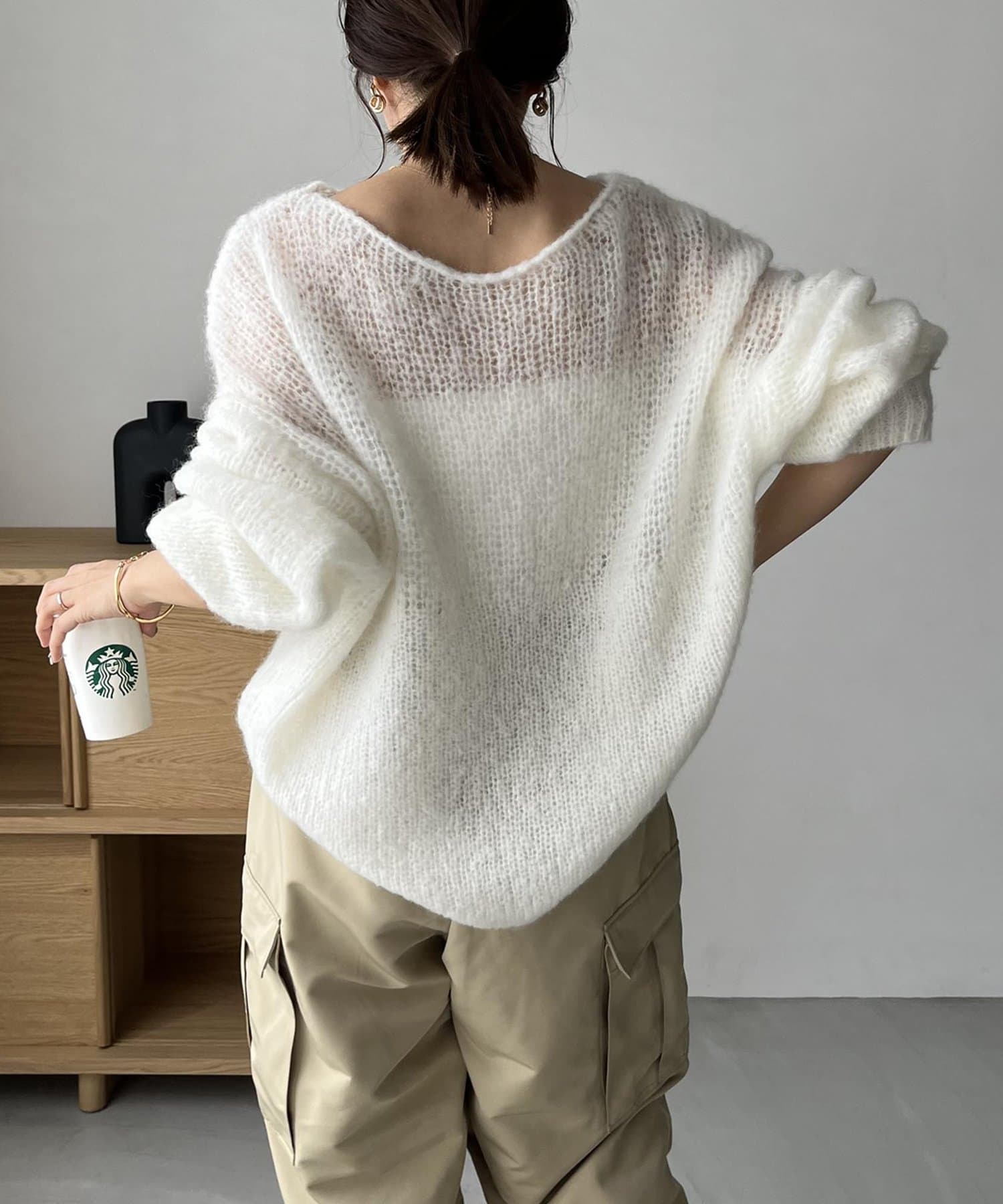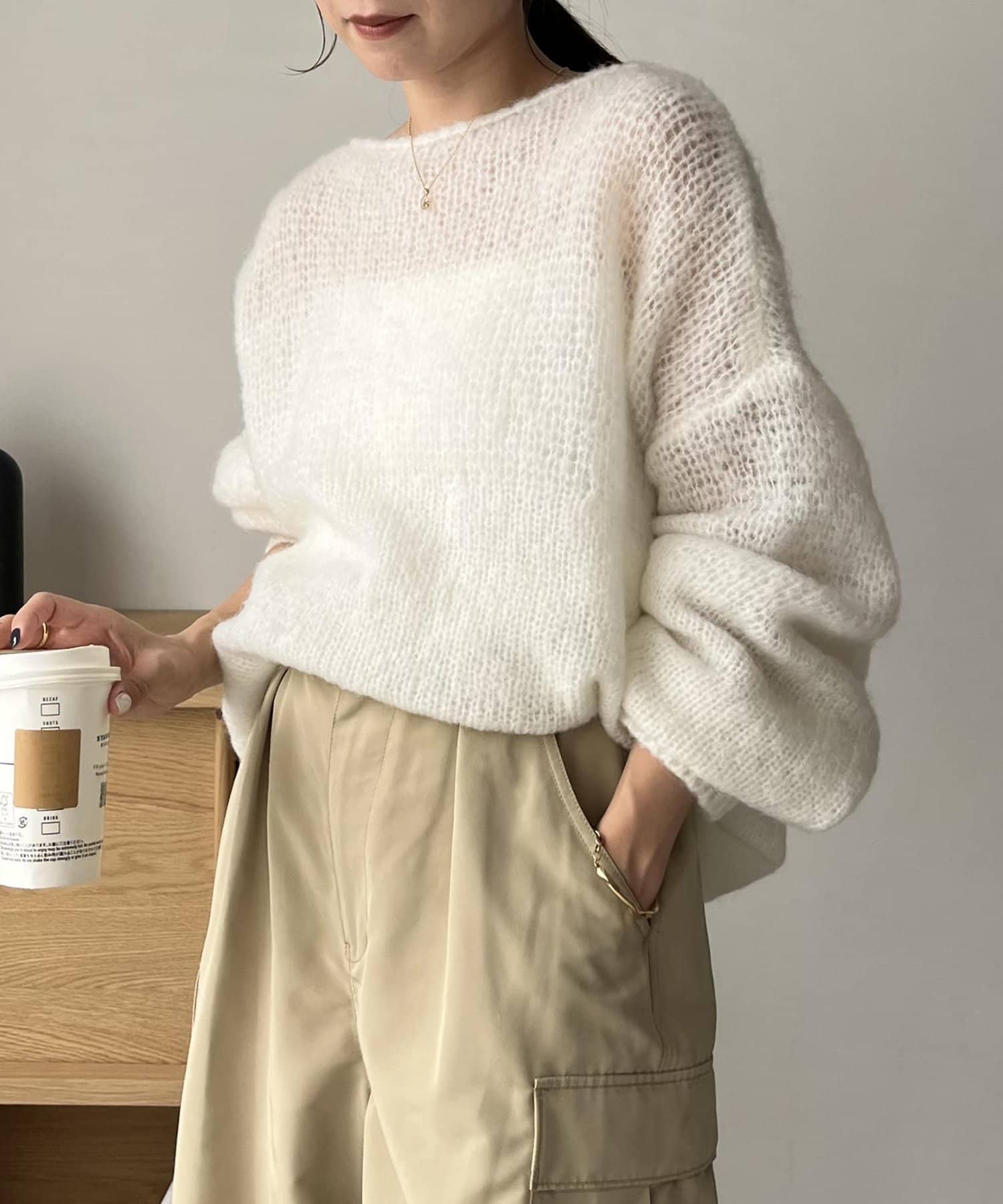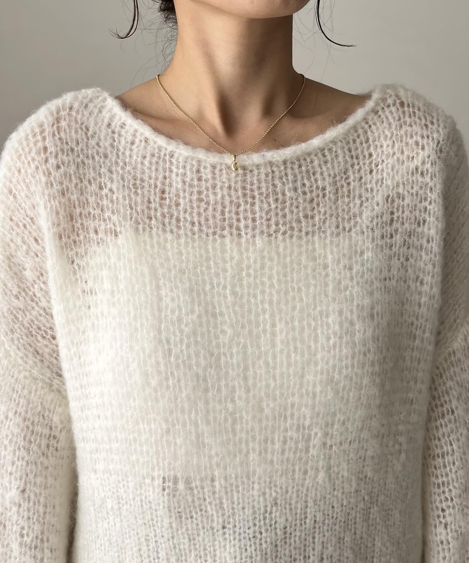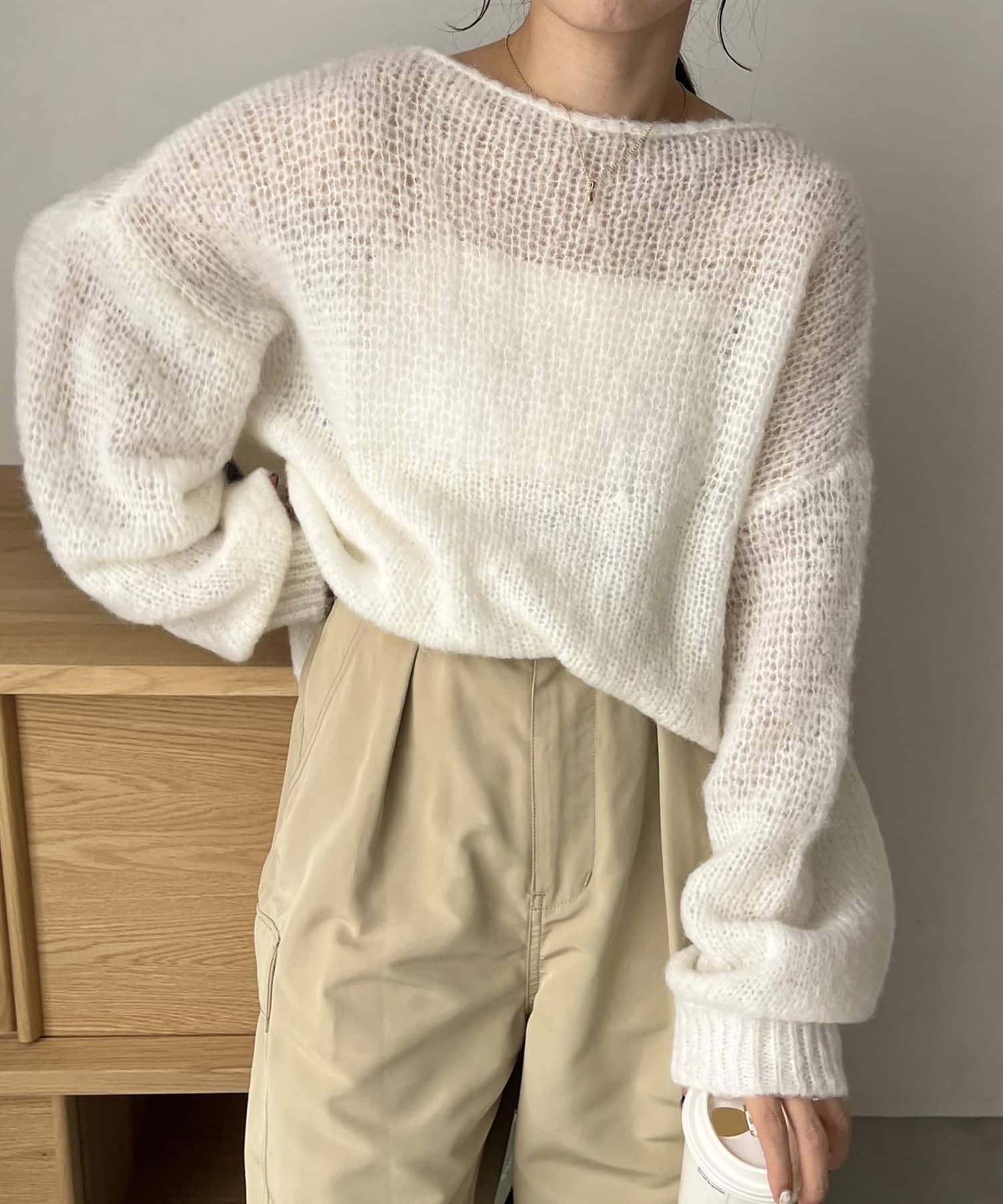 ・裾から肩にかけて3段に編み分け、透け感が違うのがポイント