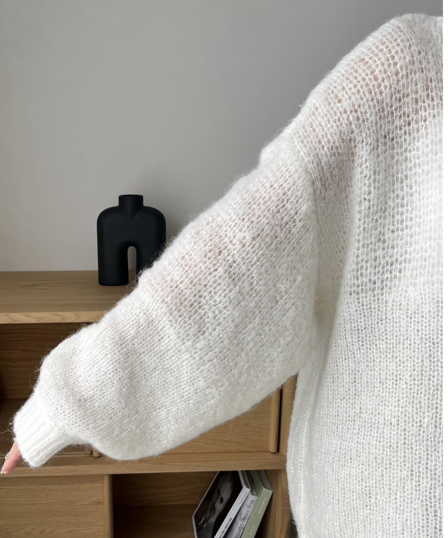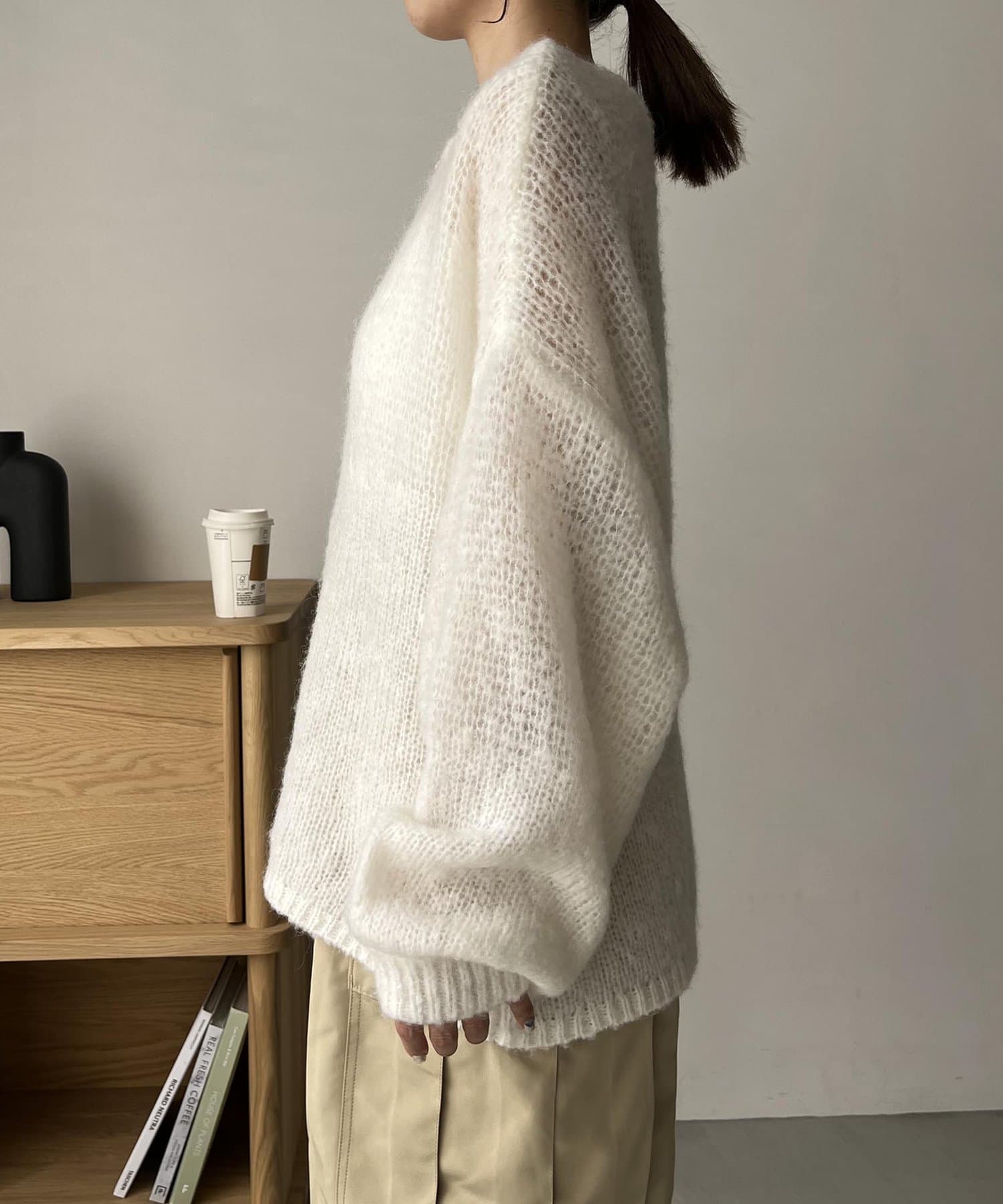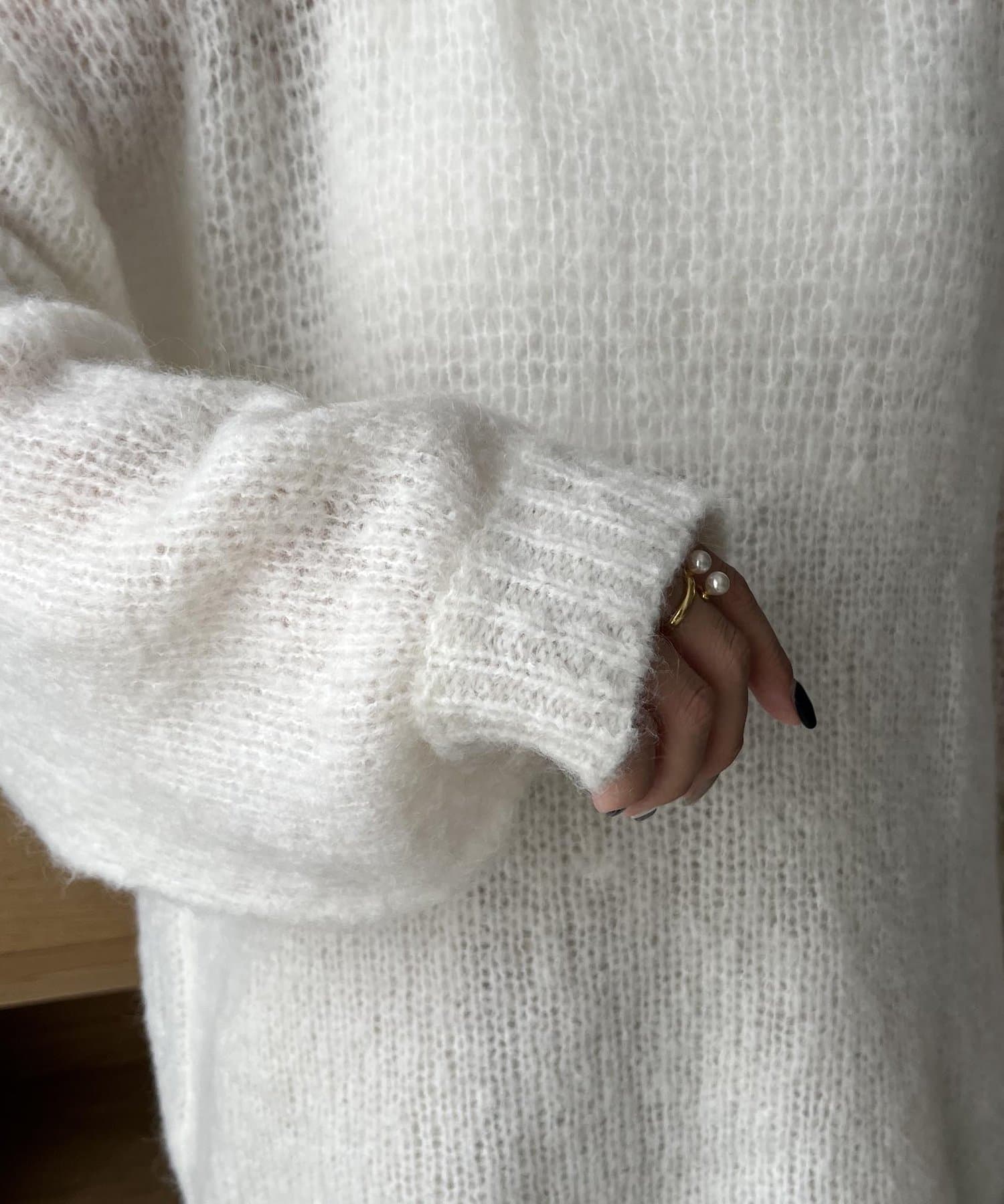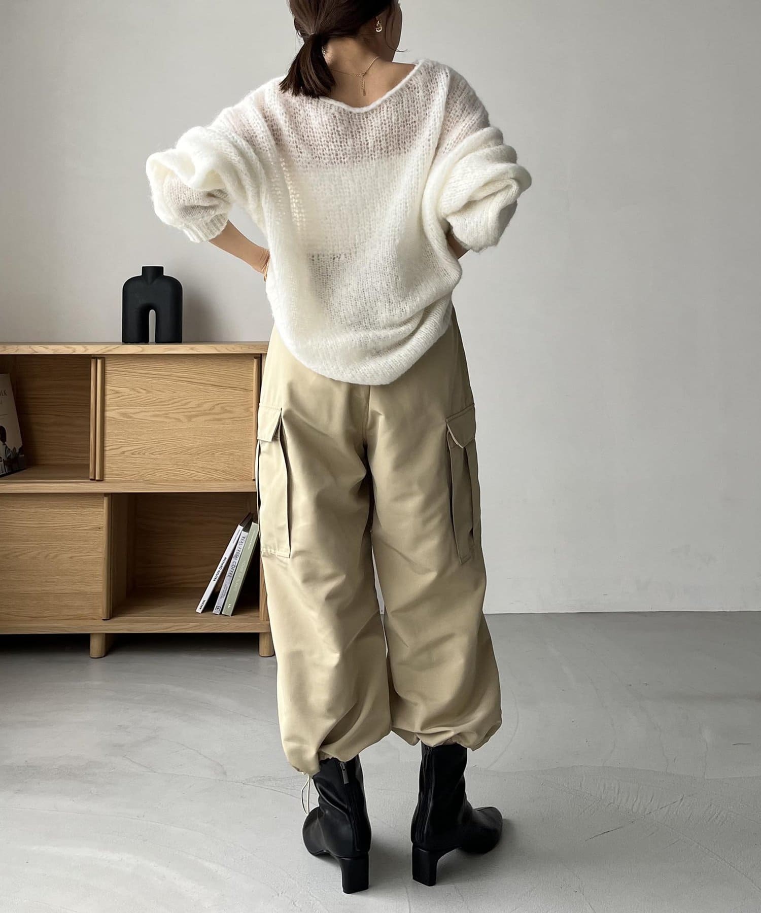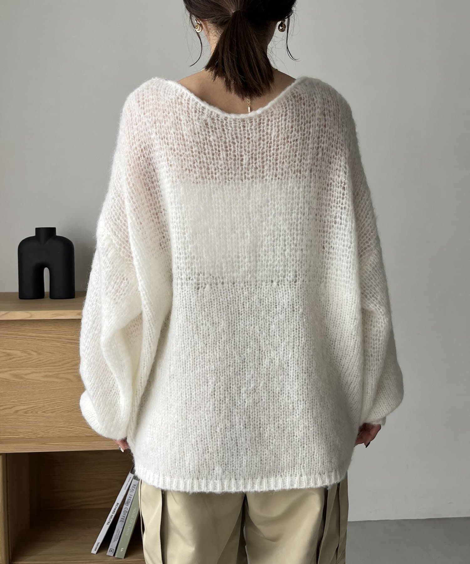 ・裾から肩にかけて3段に編み分け、透け感が違うのがポイント