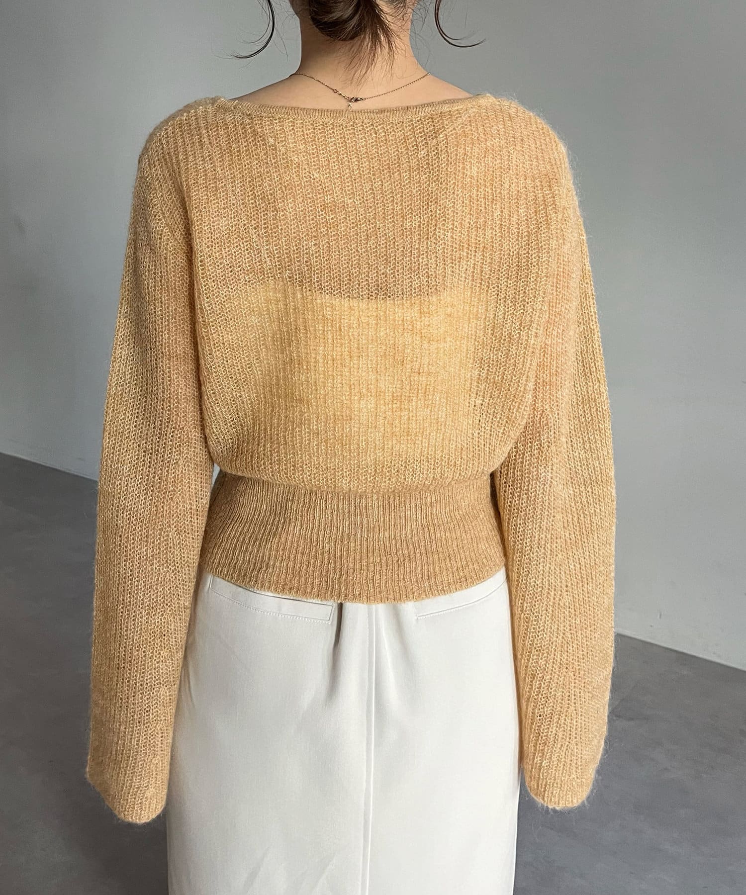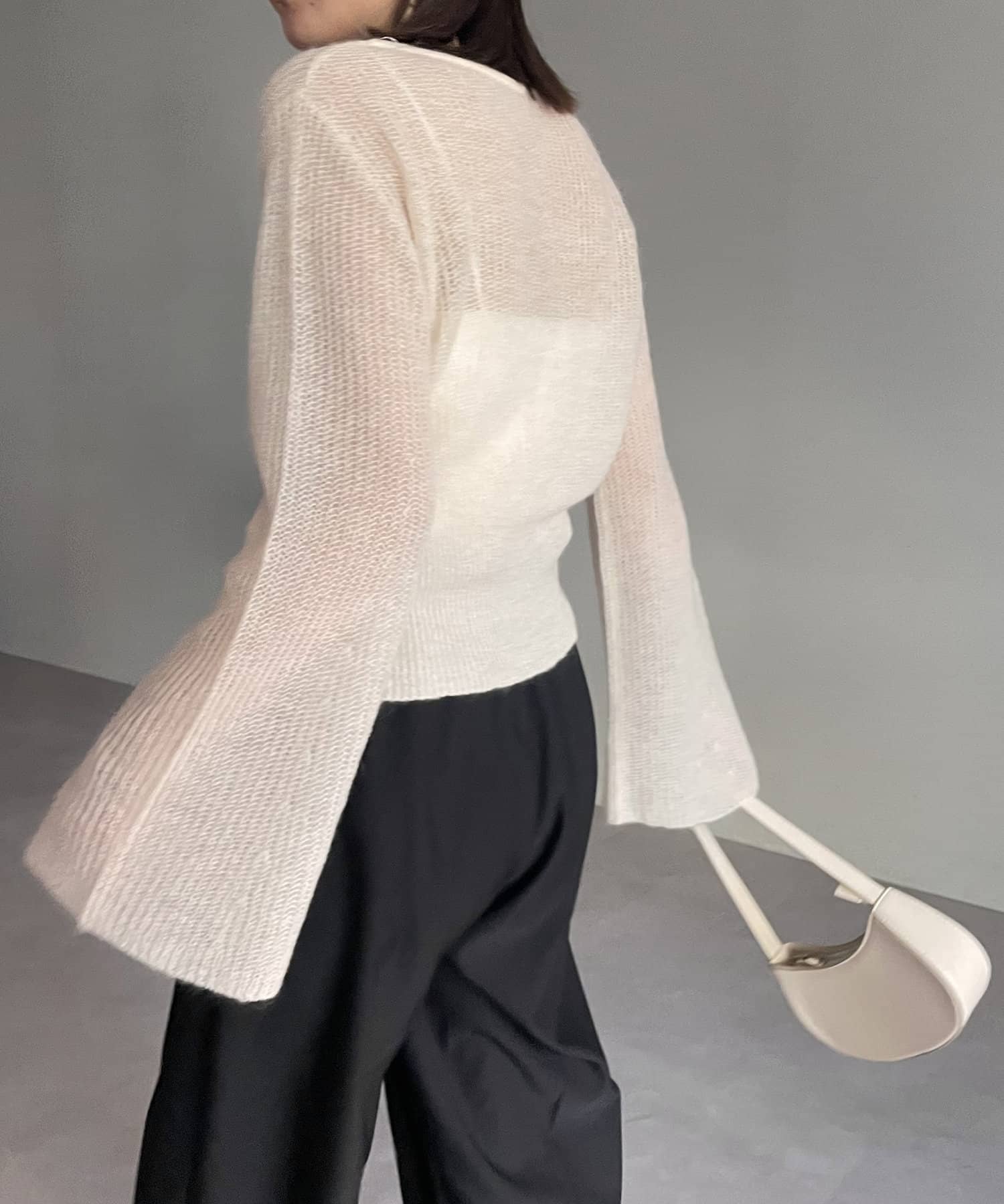 ・モヘアの程よい透け感が女性らしい抜け感をプラス