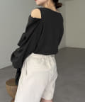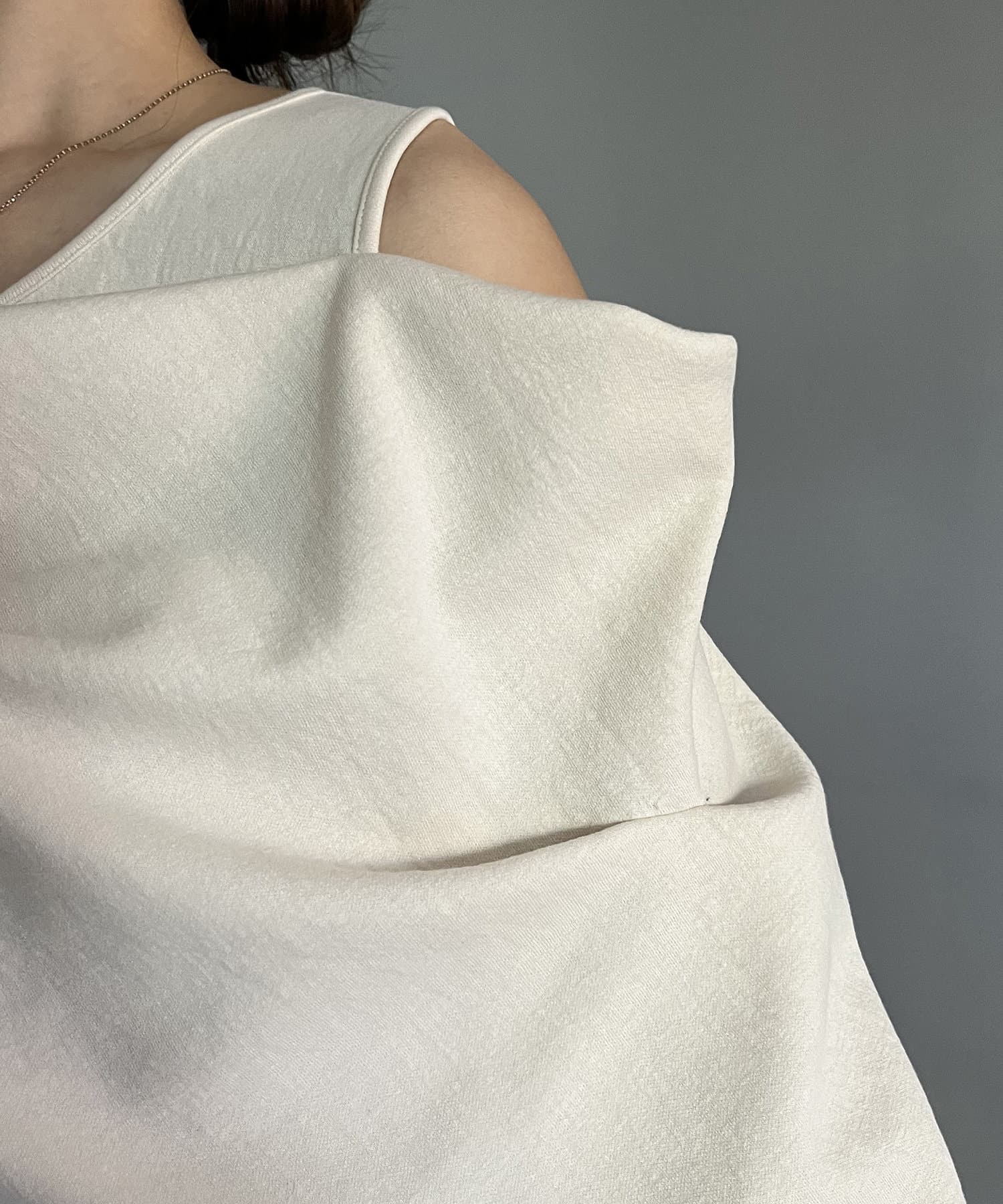 ・中にタンクトップをレイヤードしているようなデザインなので、程よい肌見せが叶う1枚