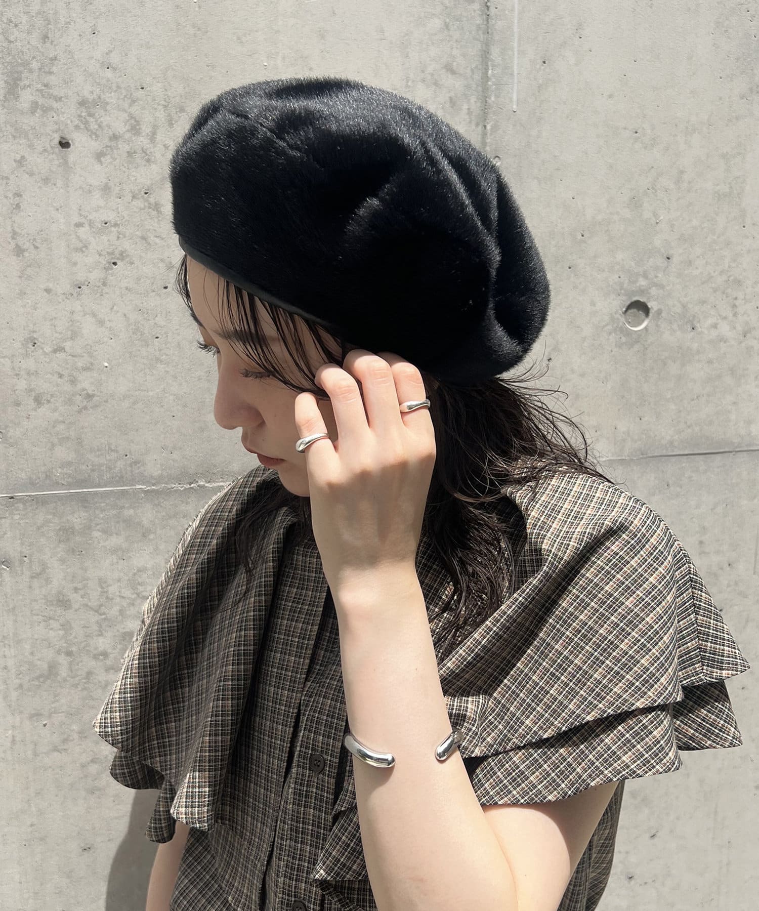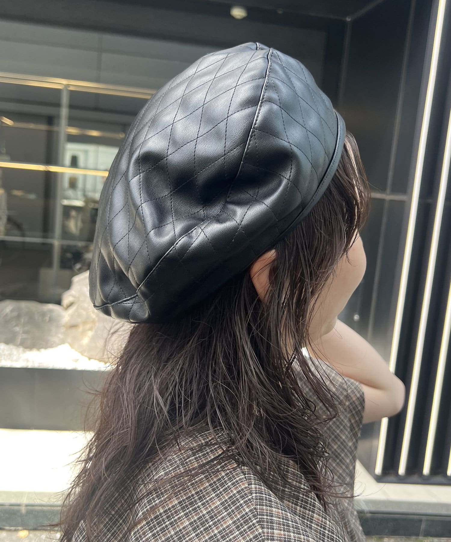 キルトとフェイクファーのリバーシブル仕様のべレエ帽
