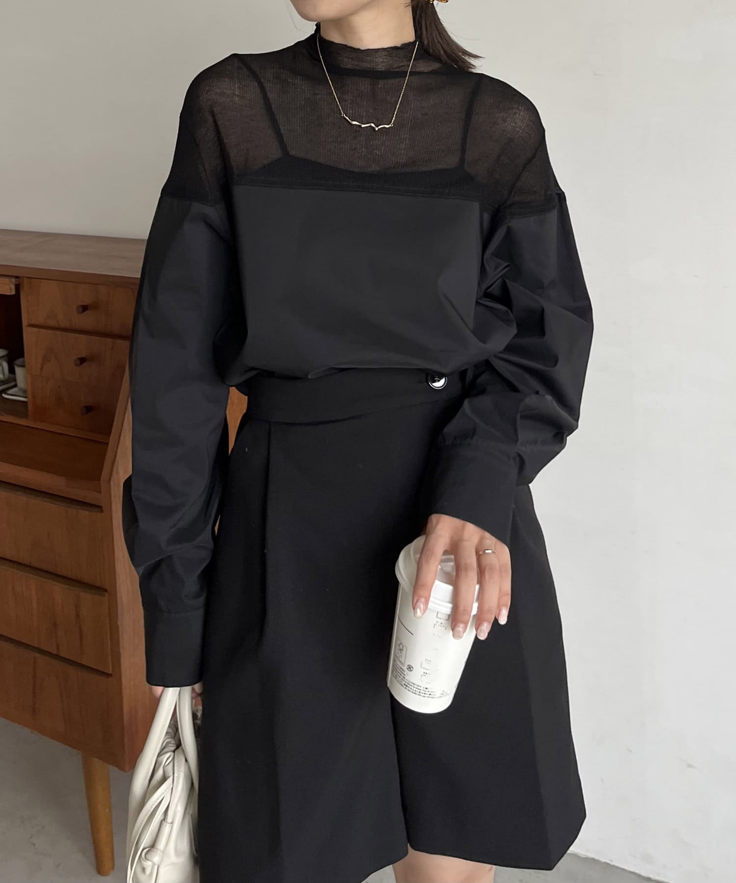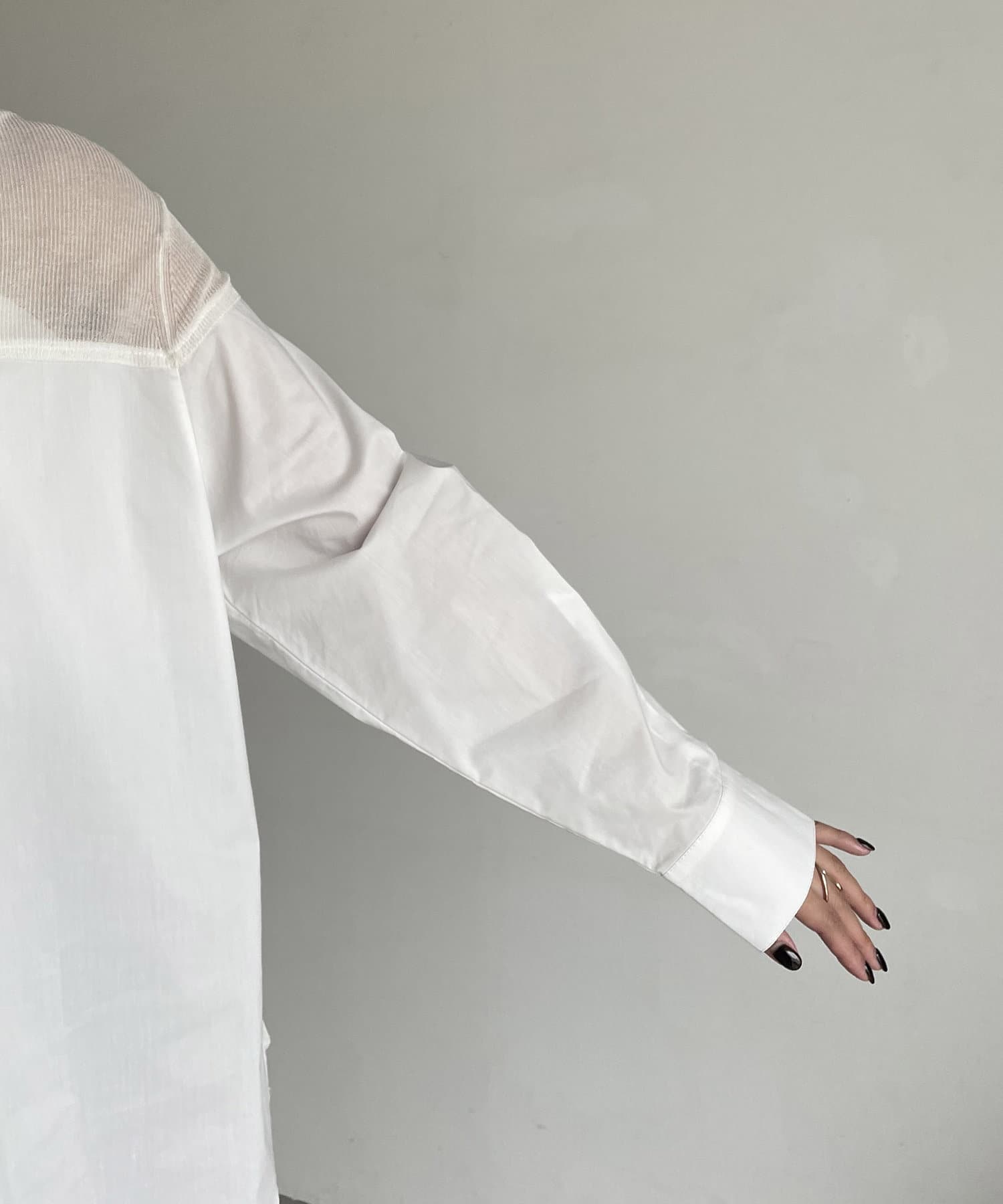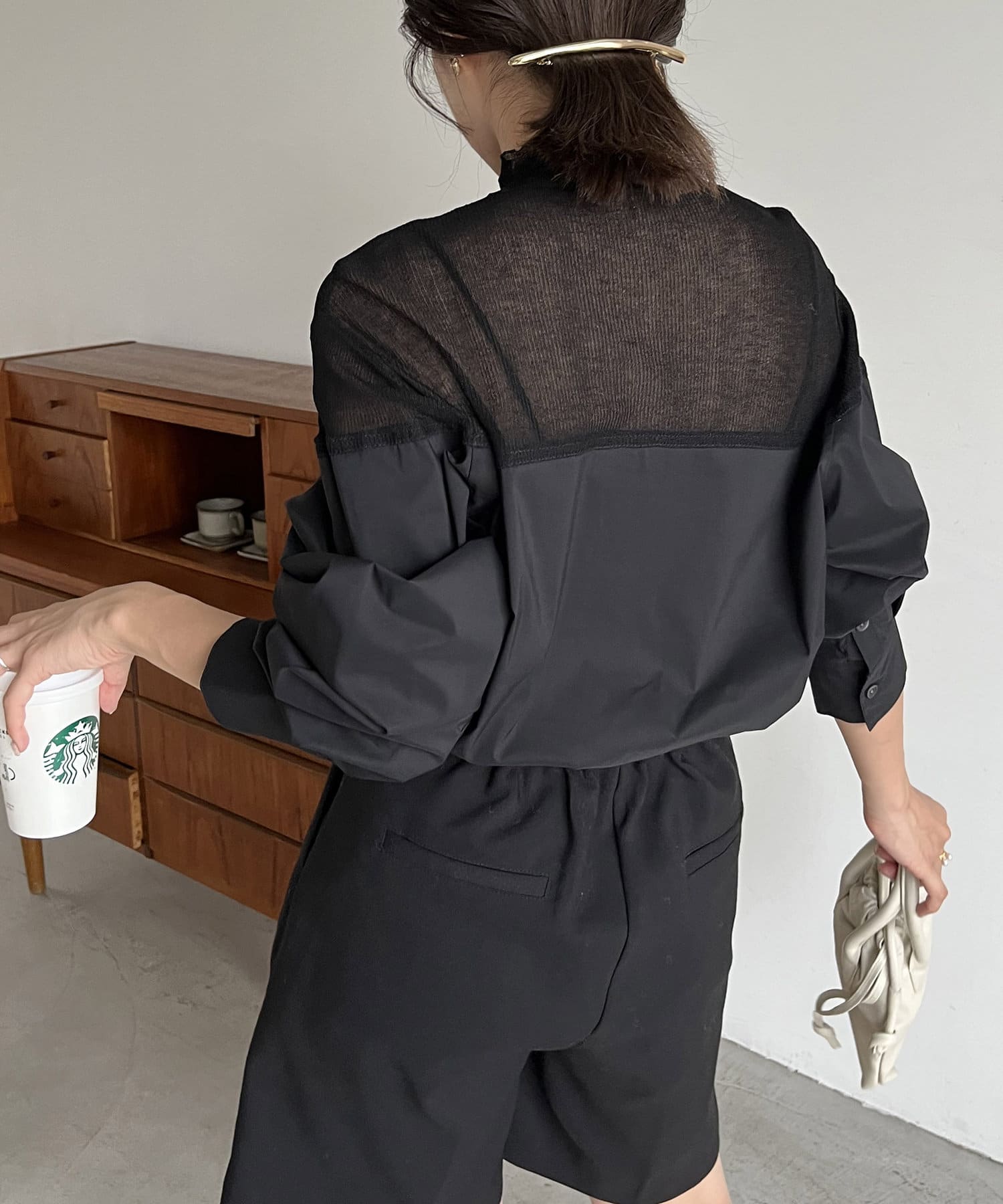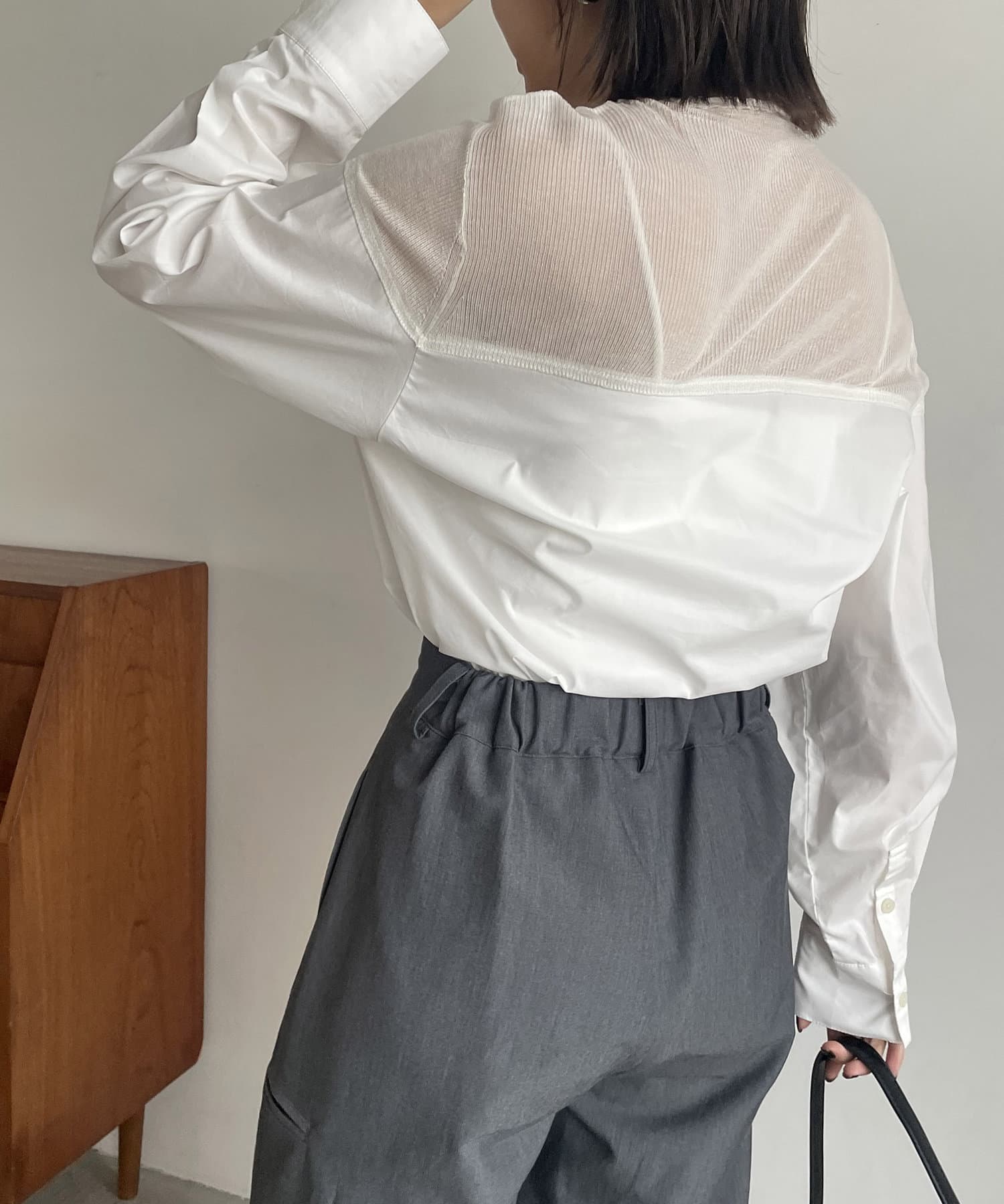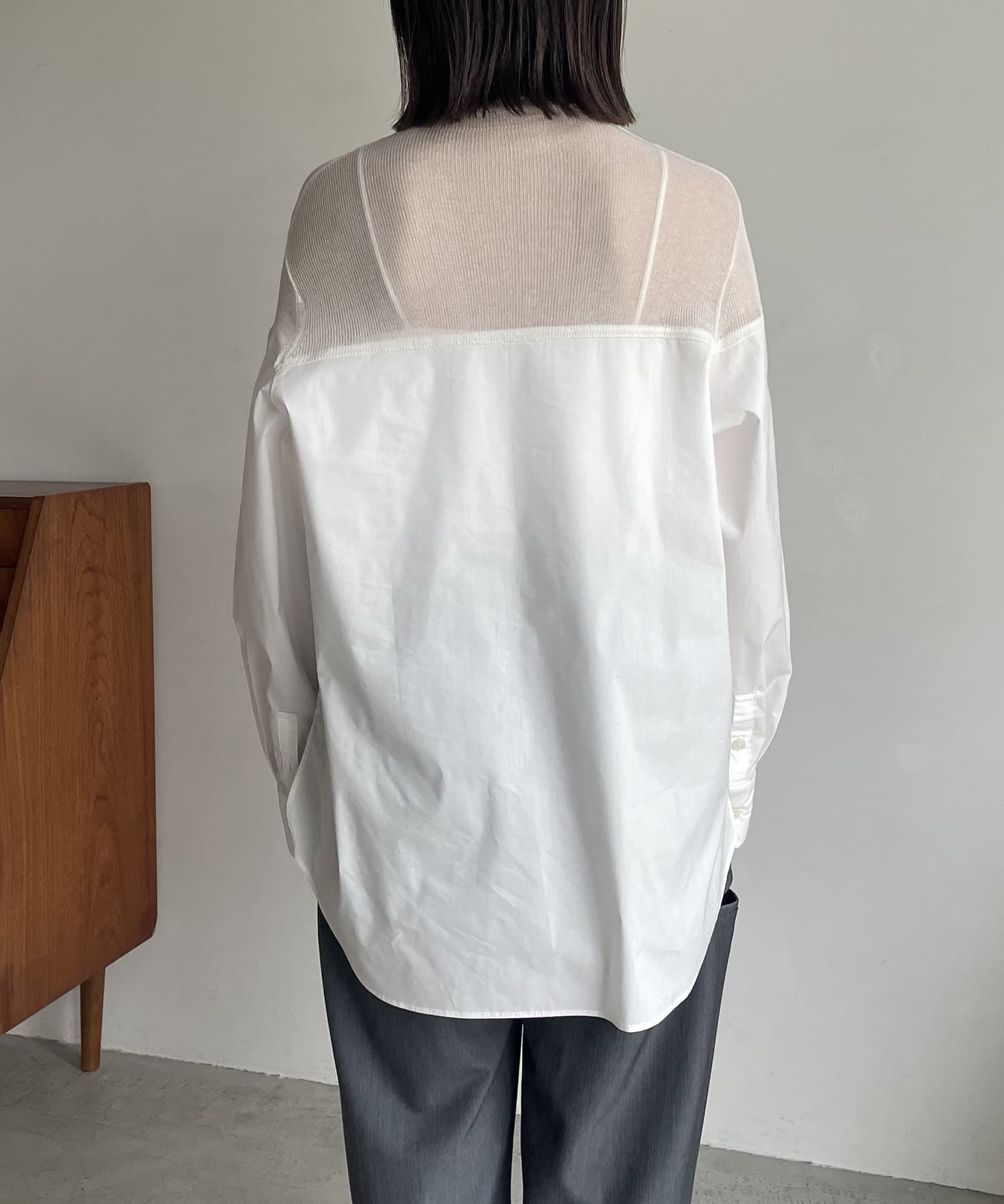 シアーニットがドッキングされた抜け感漂うシャツ