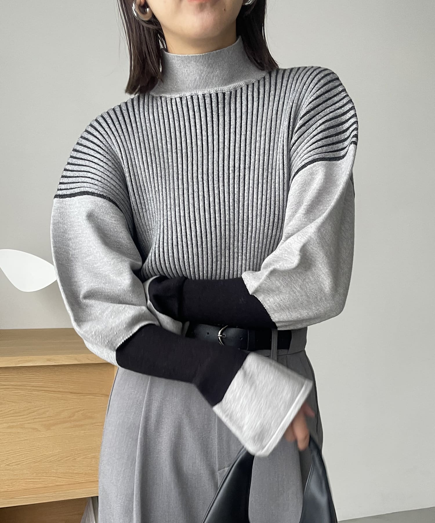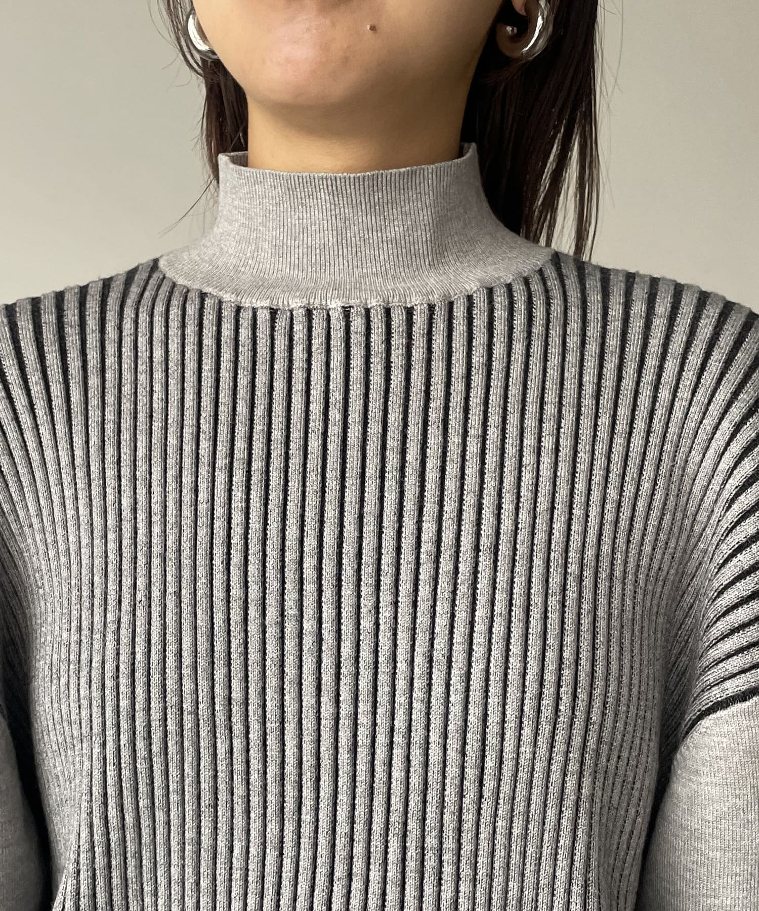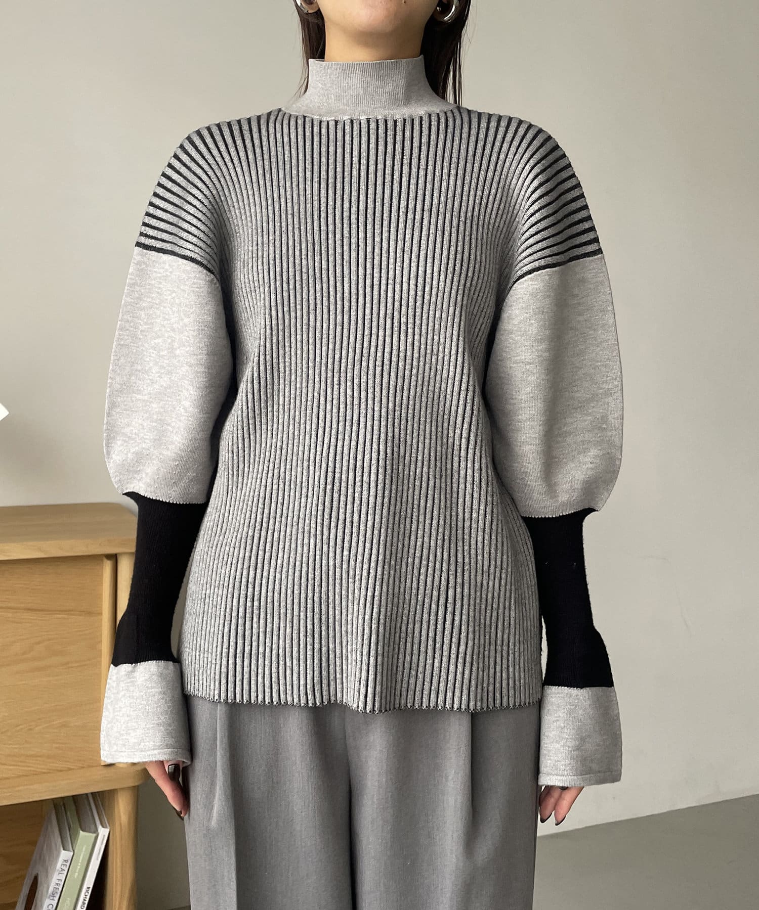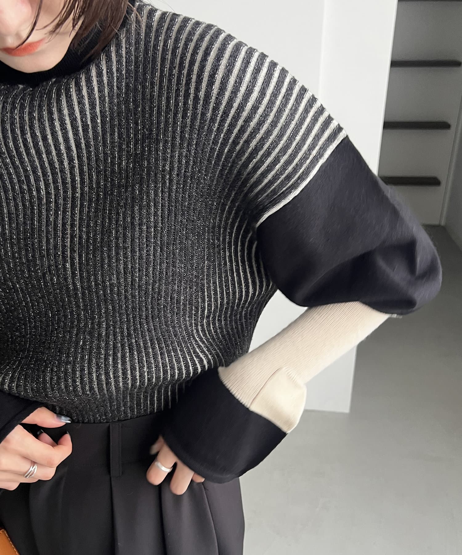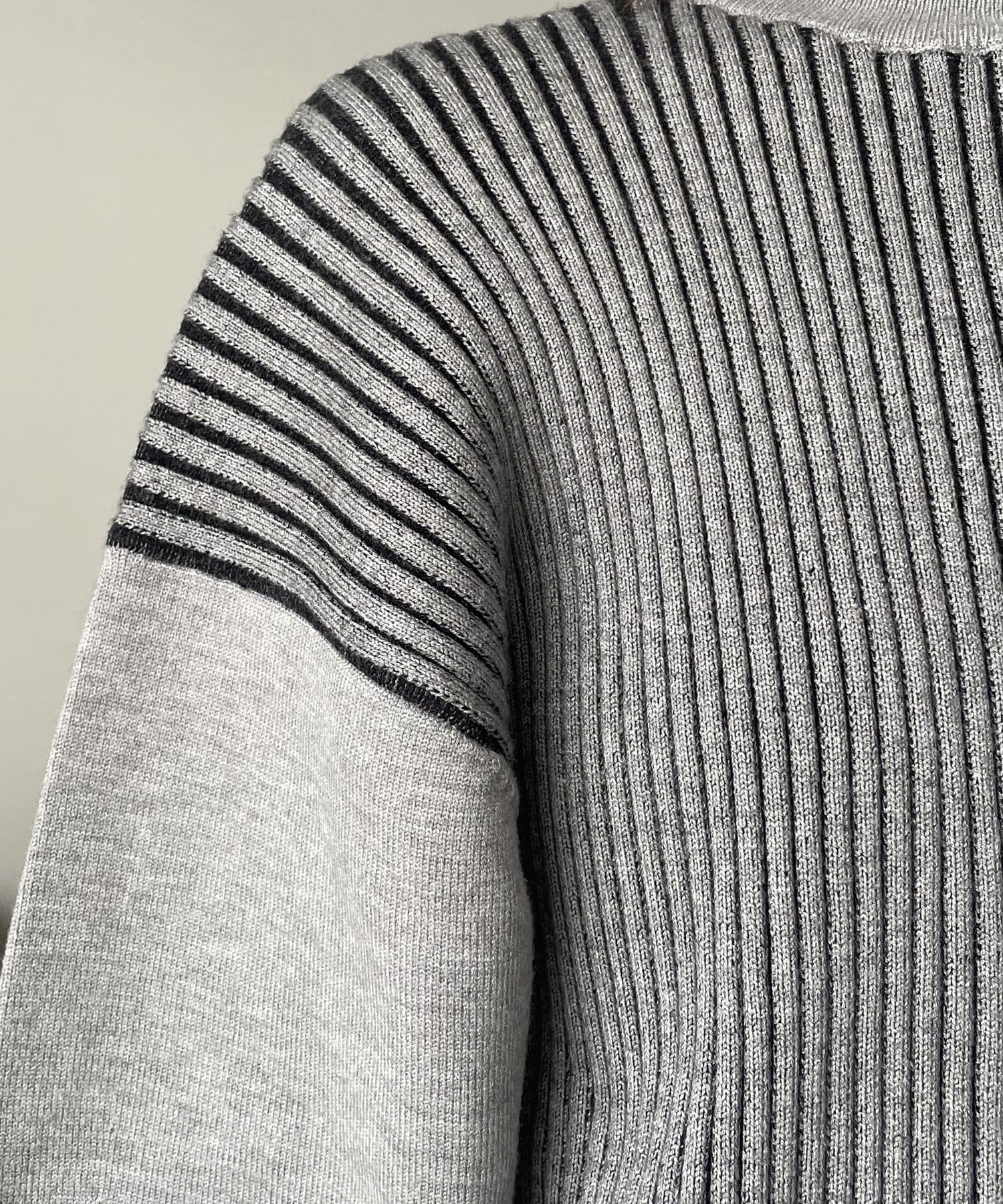 ・1枚のニットの中にリブ編み、天竺編み、2種類の編み地を盛り込んだ、非常に凝った作りのニットです。