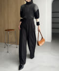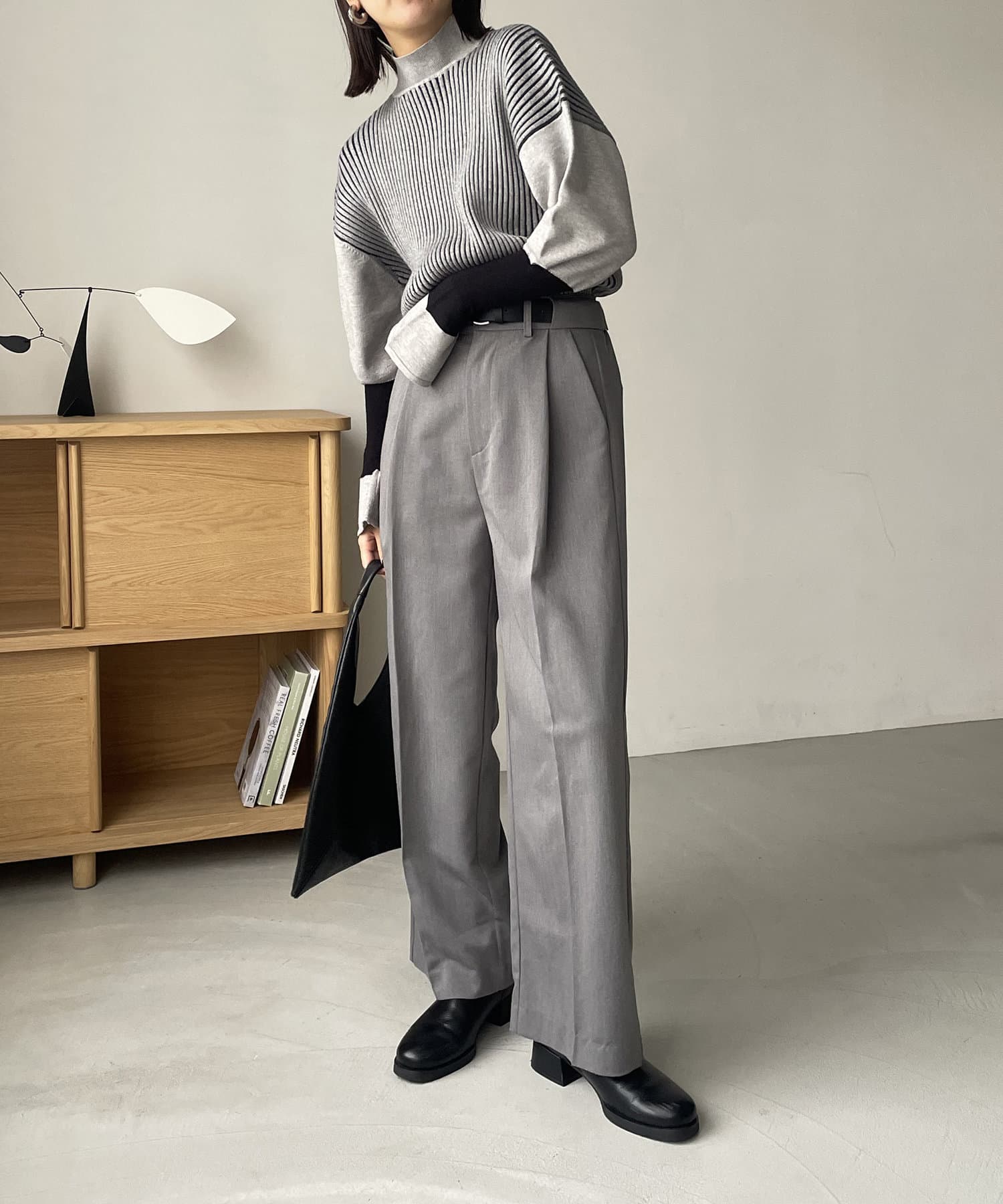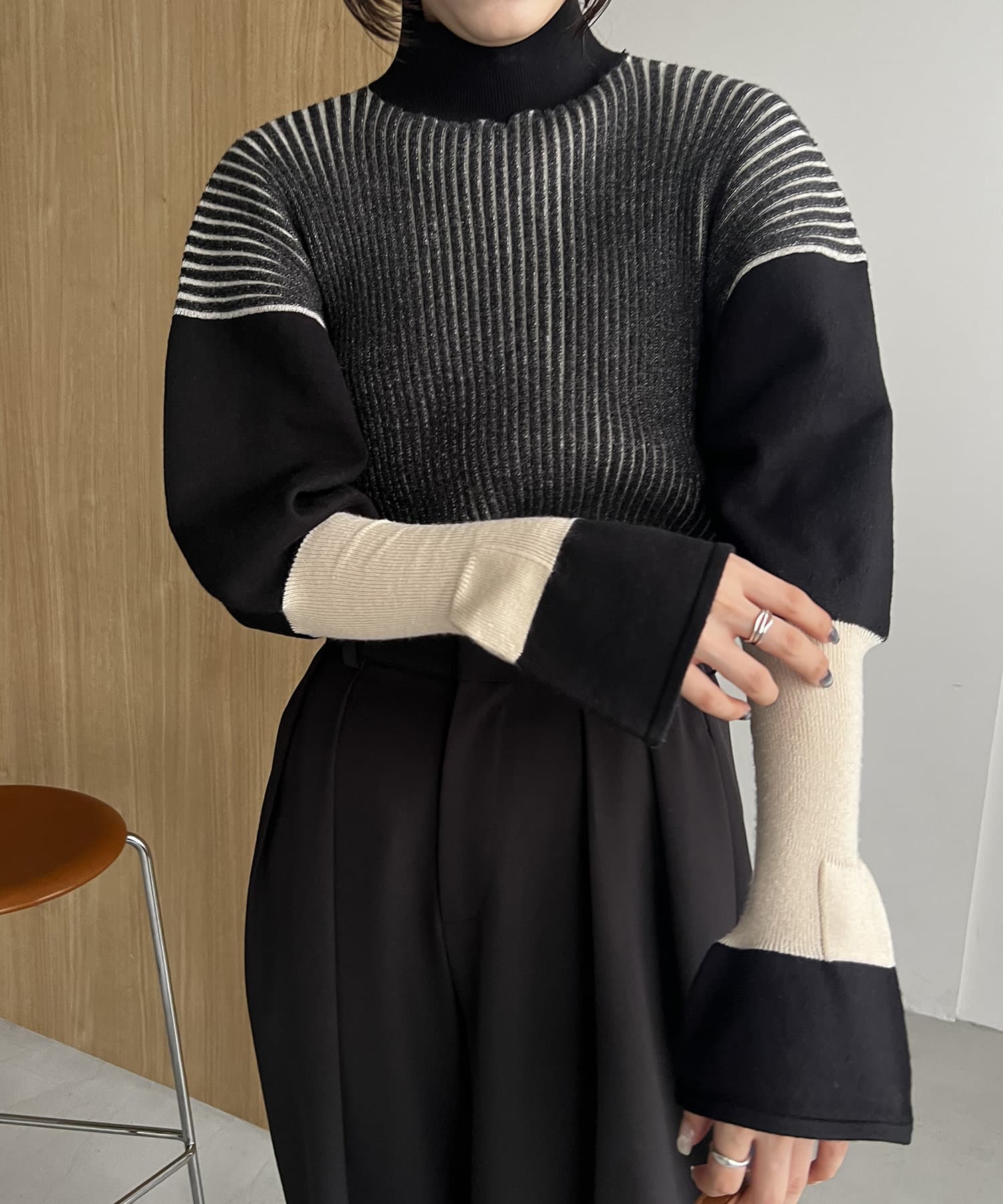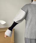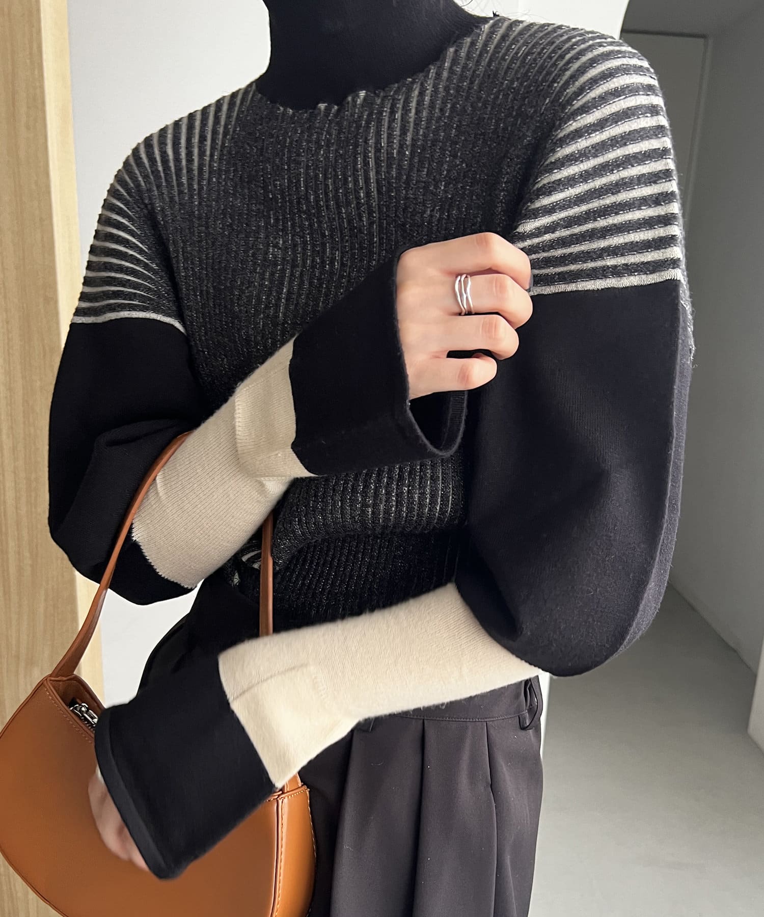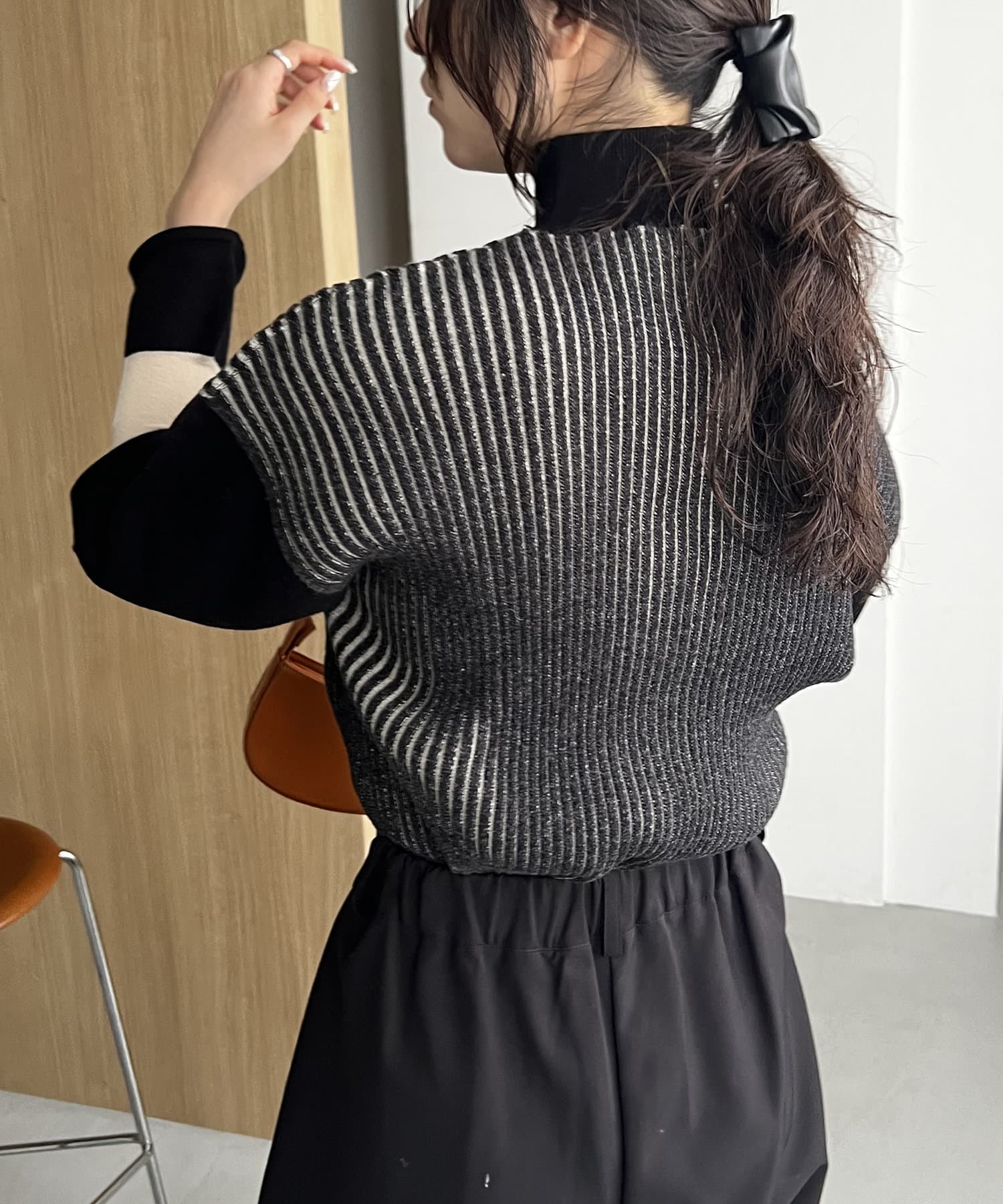 ・1枚のニットの中にリブ編み、天竺編み、2種類の編み地を盛り込んだ、非常に凝った作りのニットです。