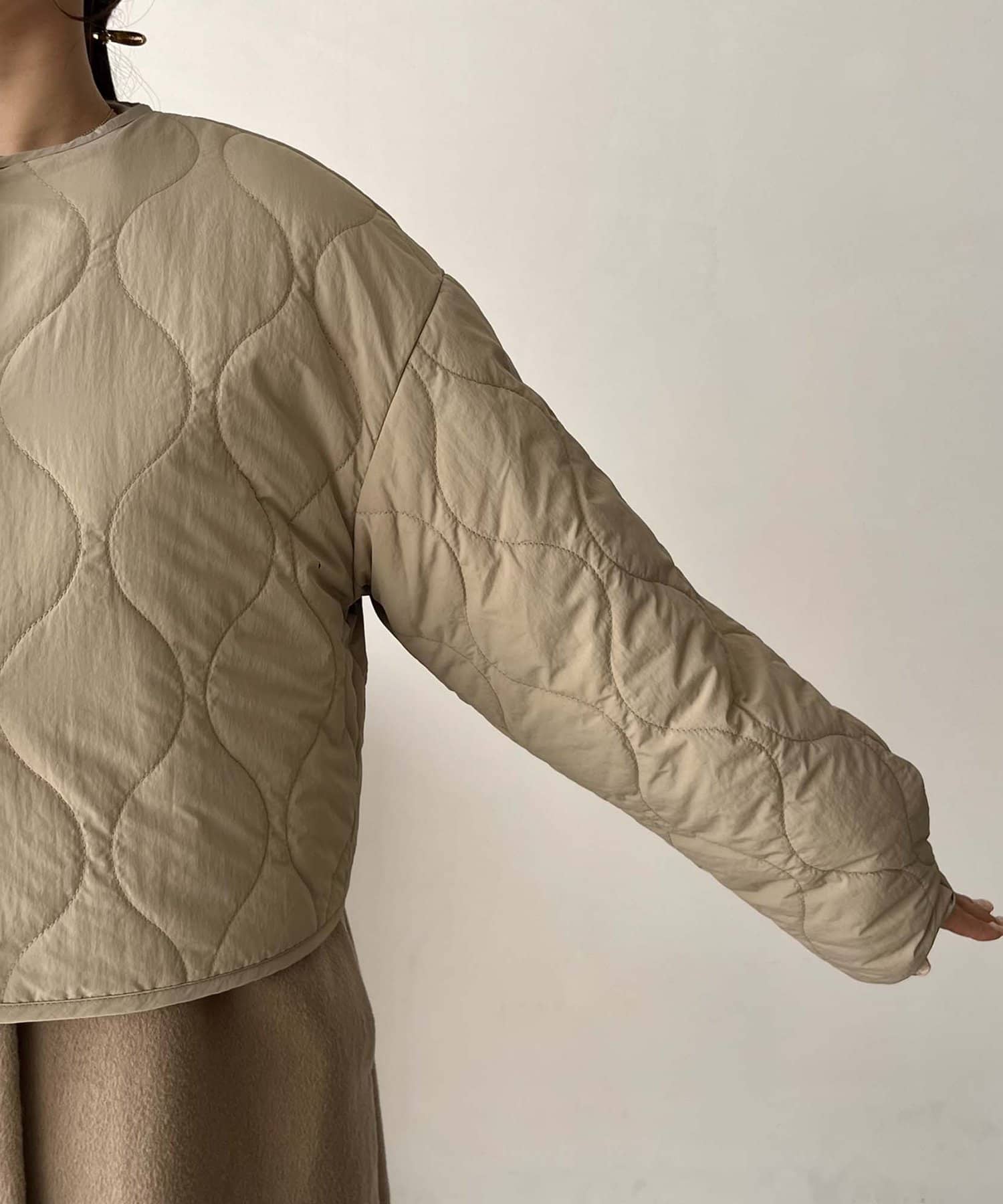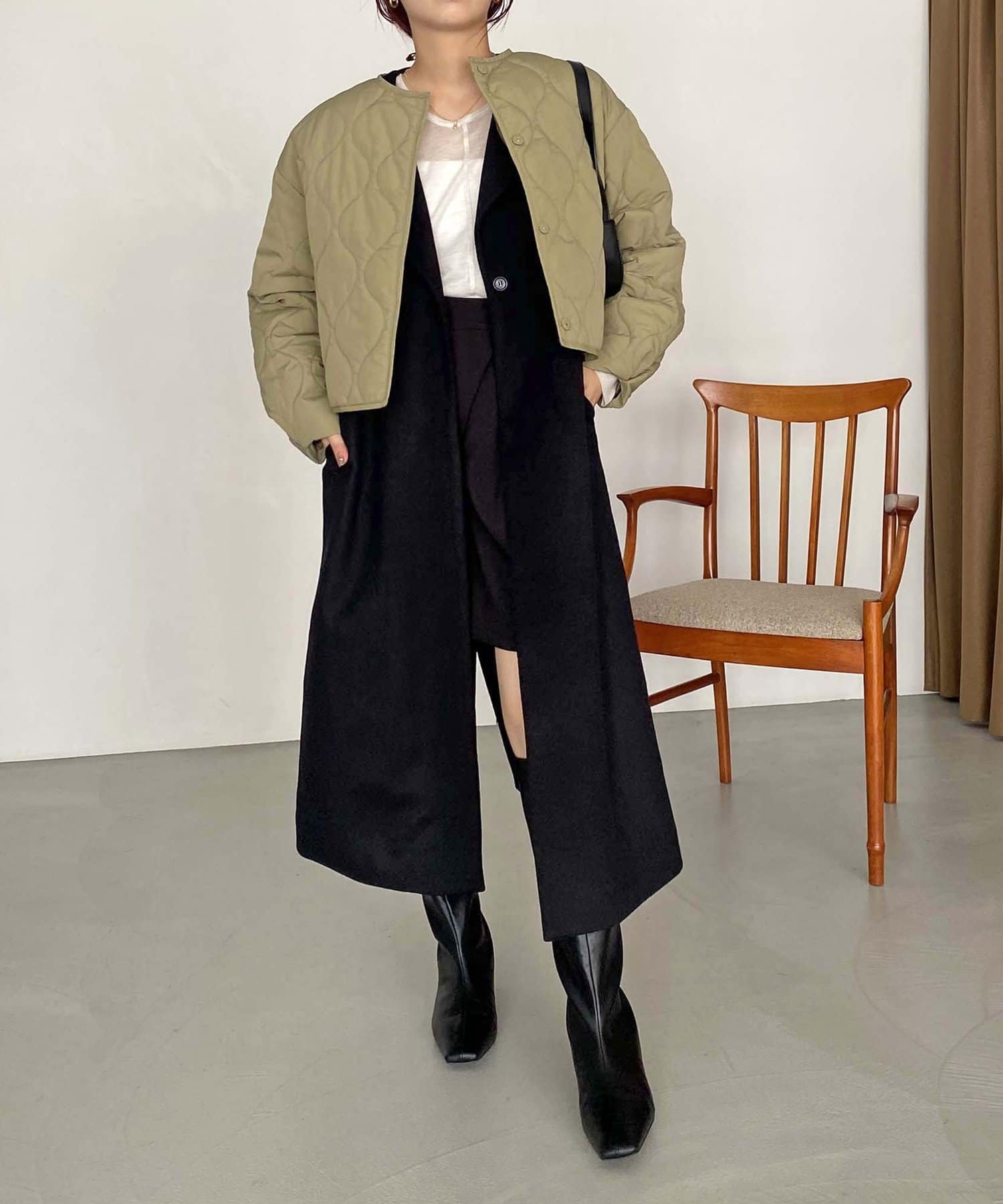 ・キルトコートは袖口にタックが入っており、立体的なシルエットに