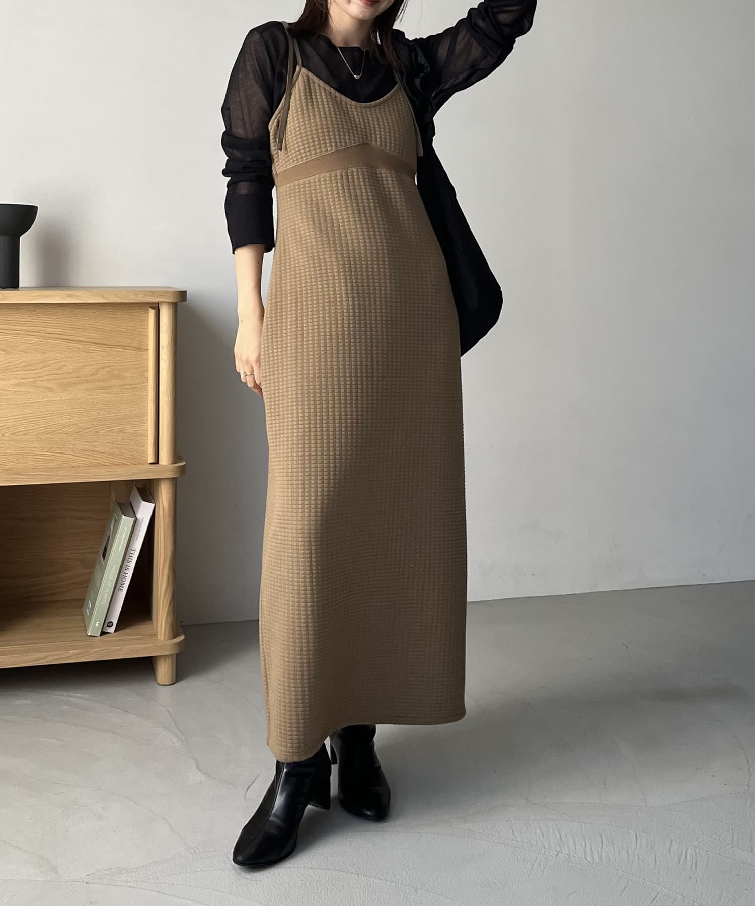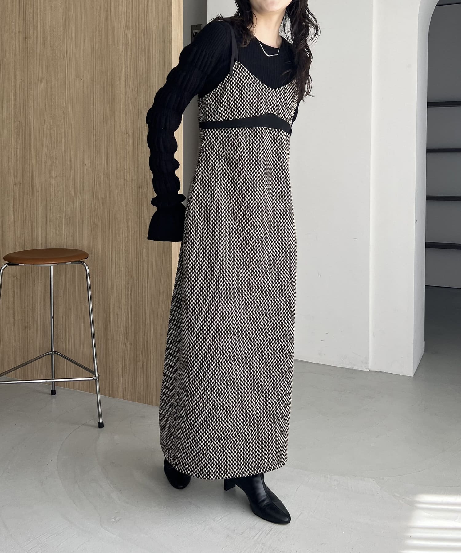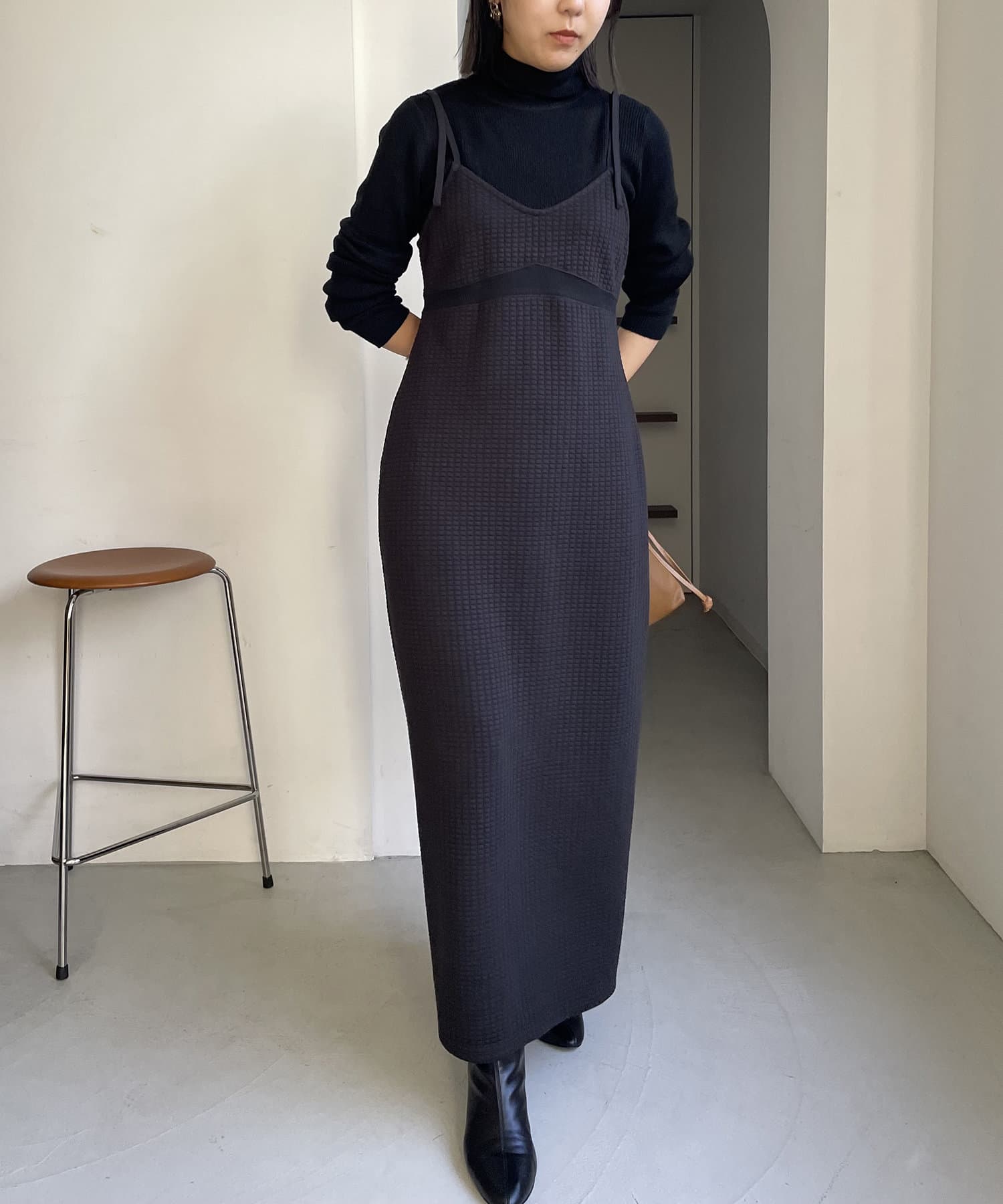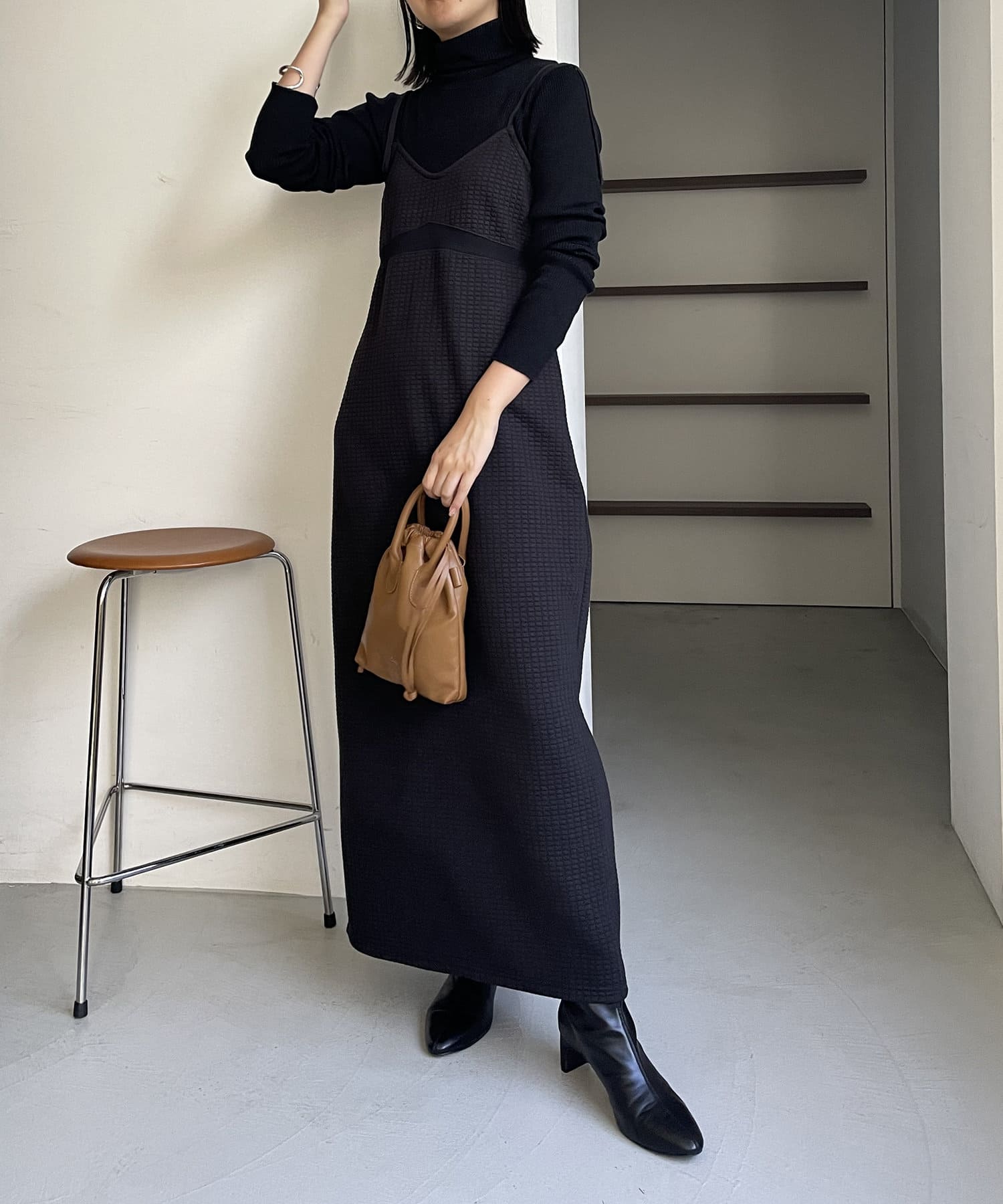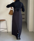 ・ウエストに異素材の切替が入っていて、ウエスト位置が高く見えすっきり効果も◎