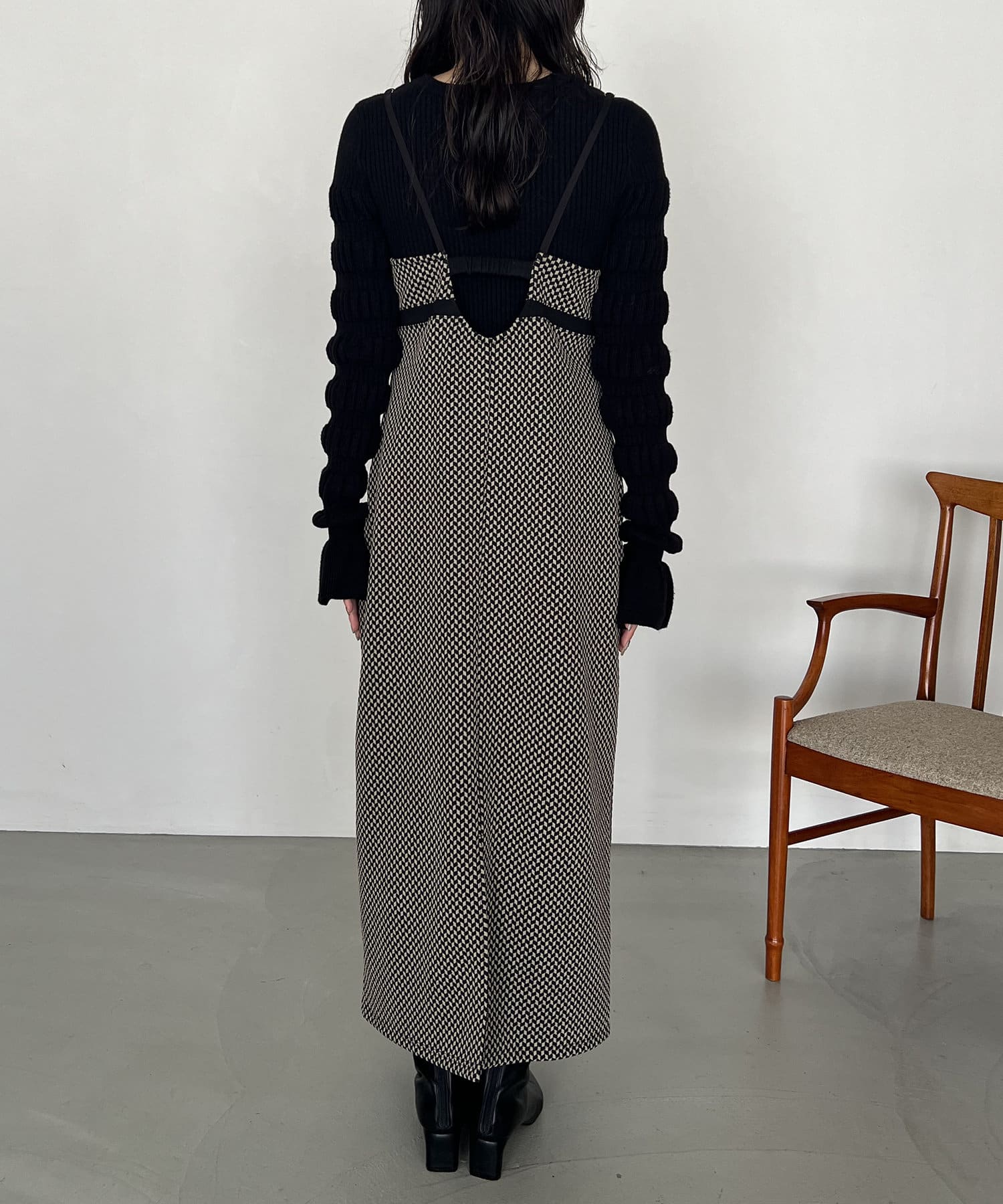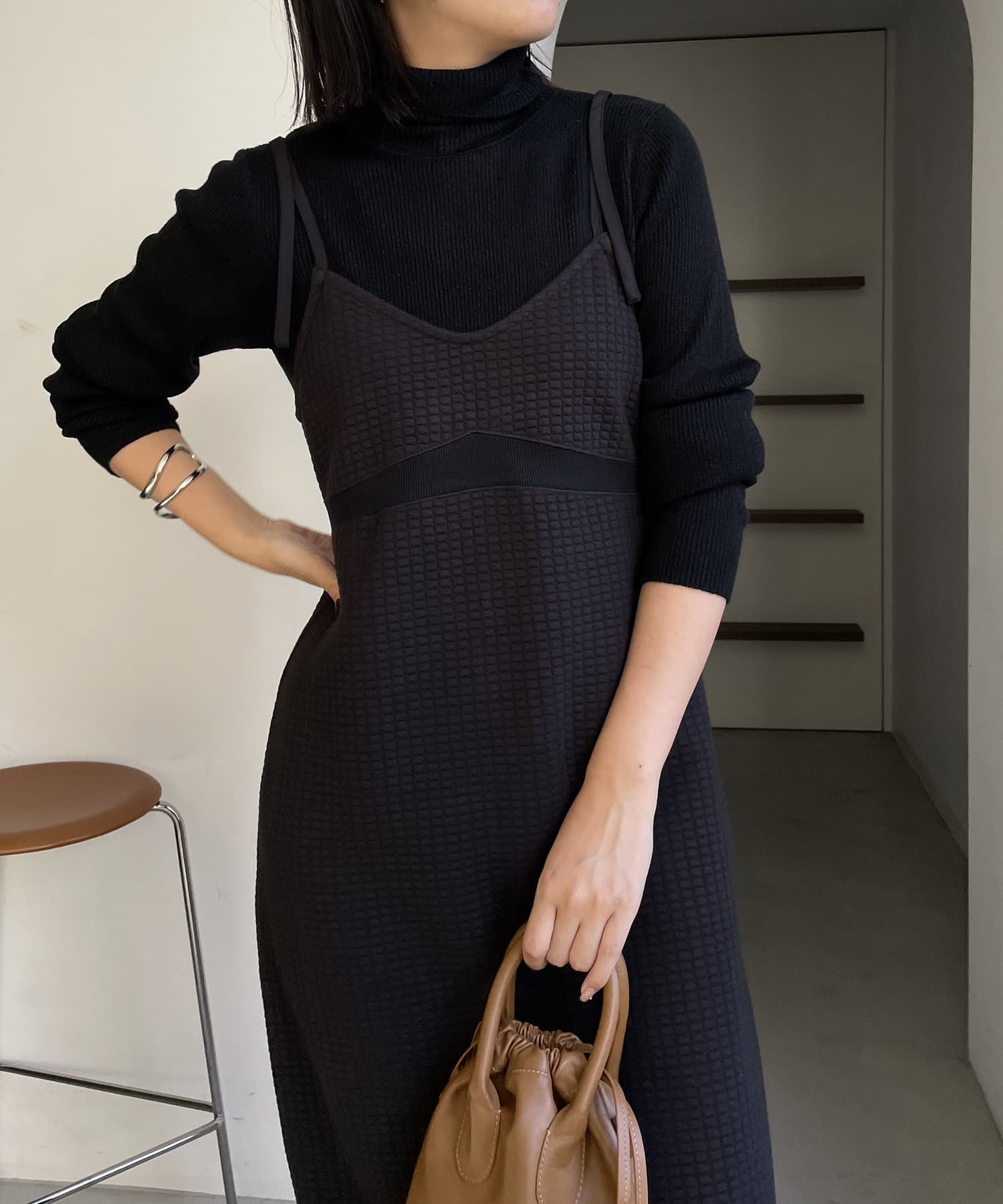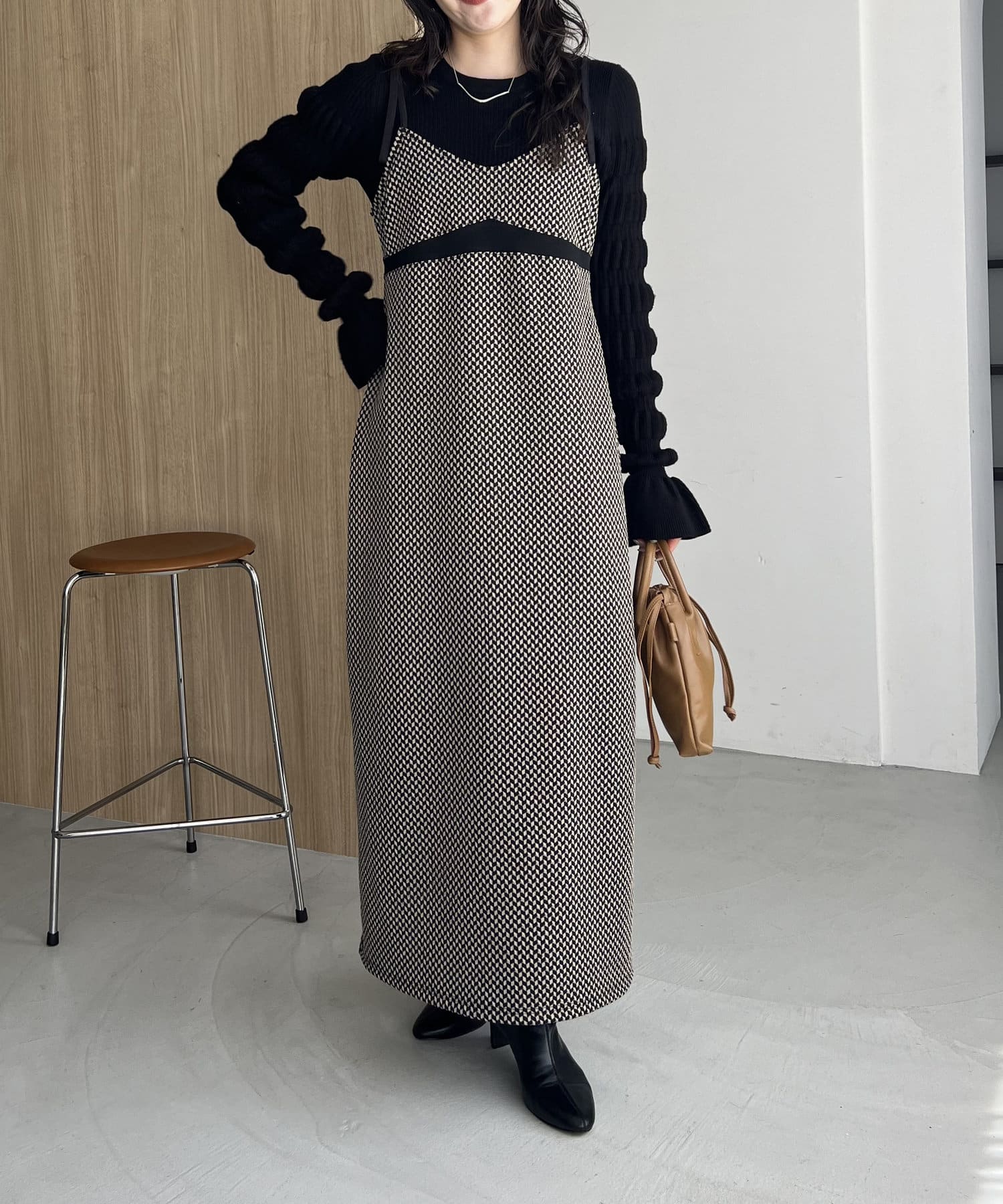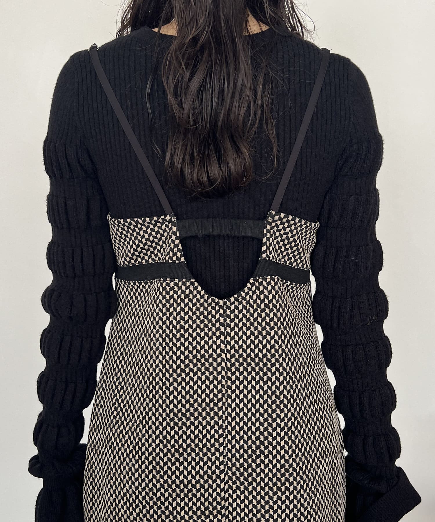 ・ウエストに異素材の切替が入っていて、ウエスト位置が高く見えすっきり効果も◎