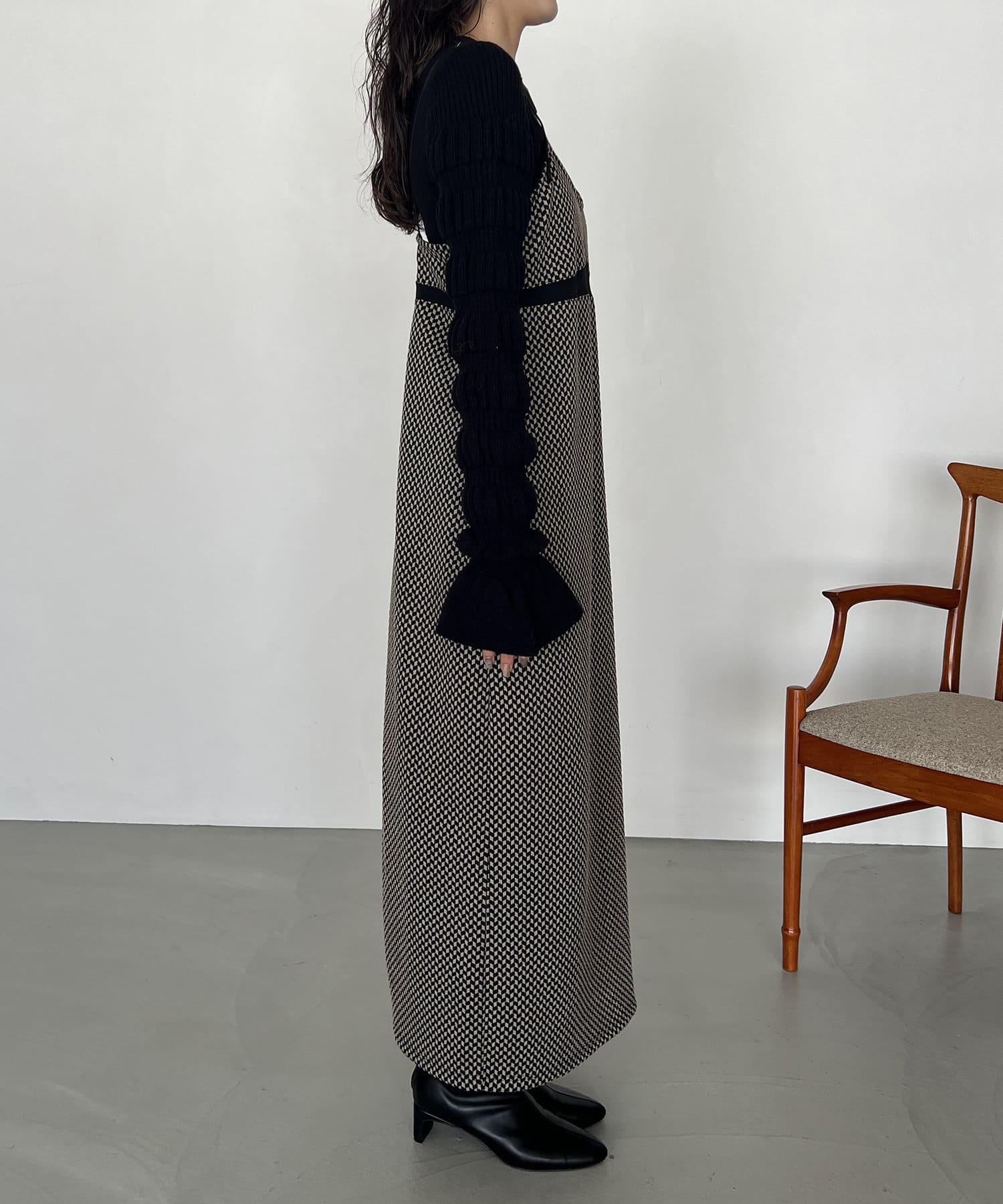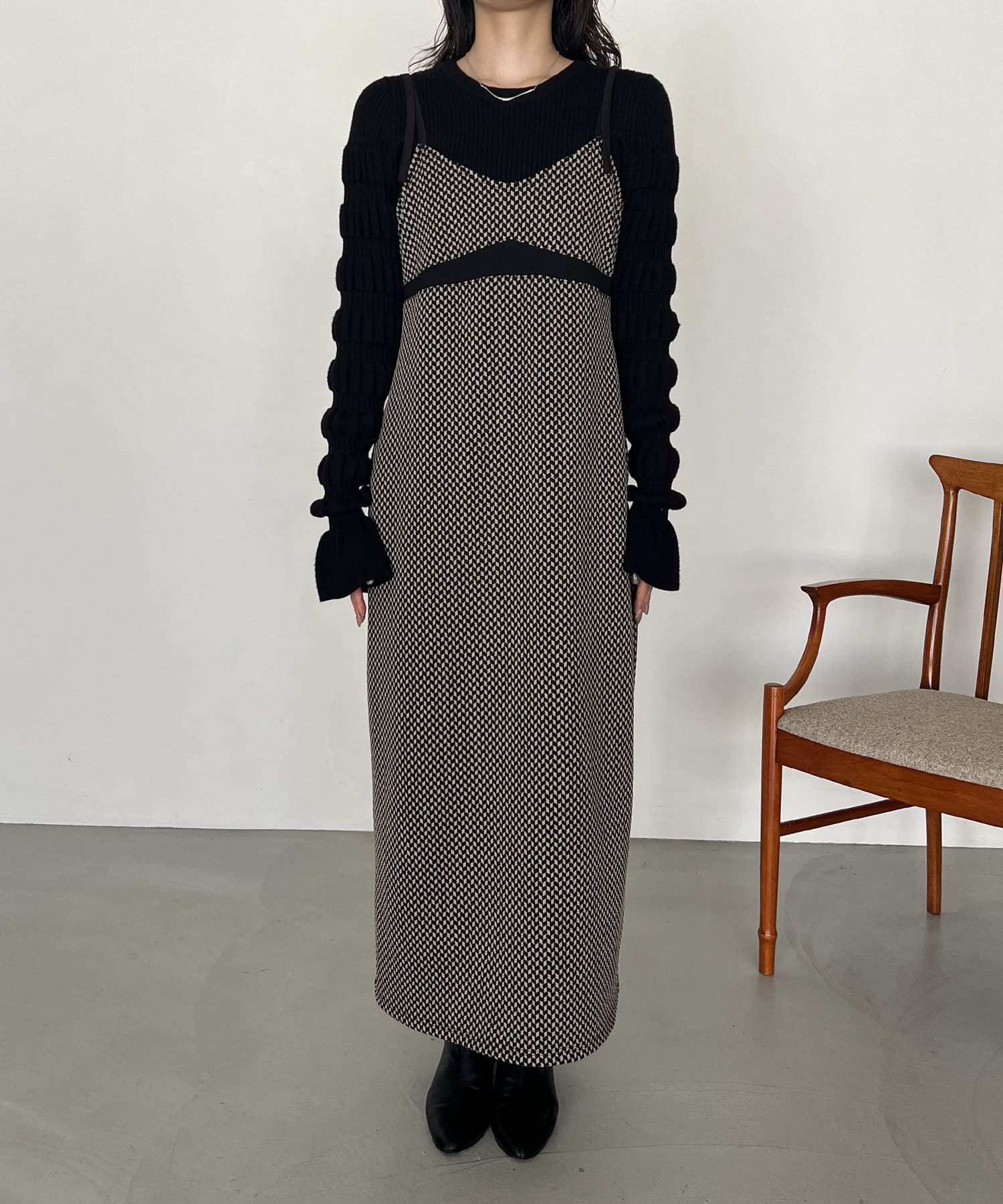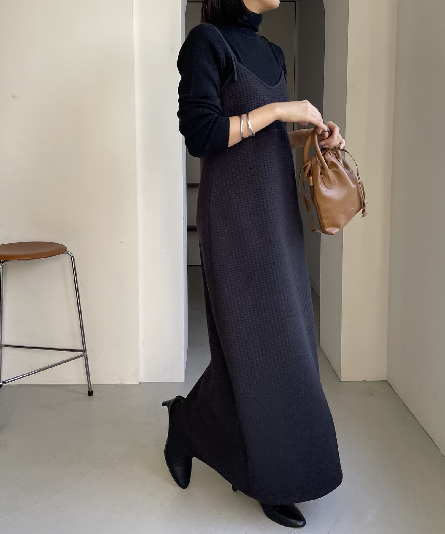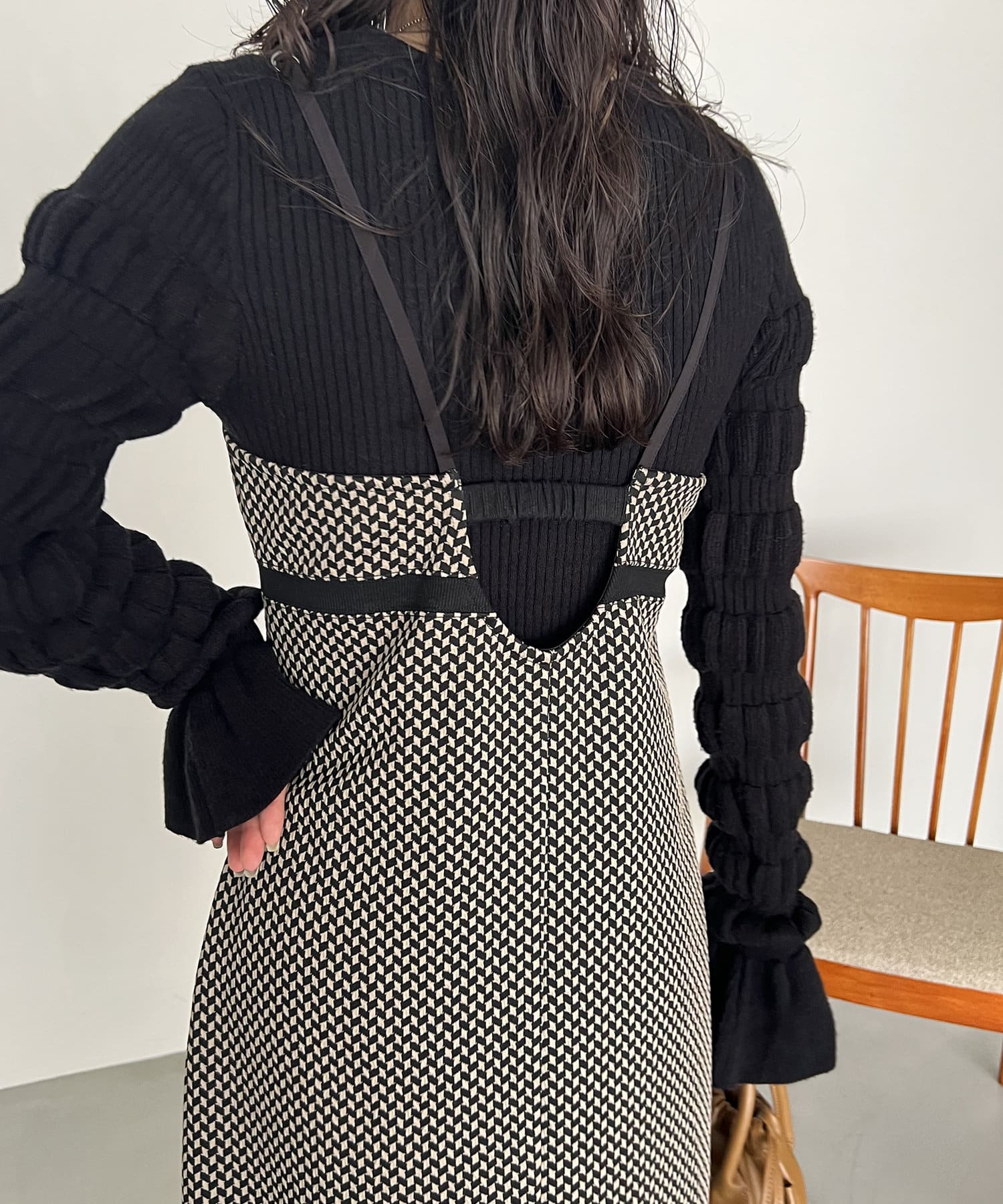 ・ウエストに異素材の切替が入っていて、ウエスト位置が高く見えすっきり効果も◎