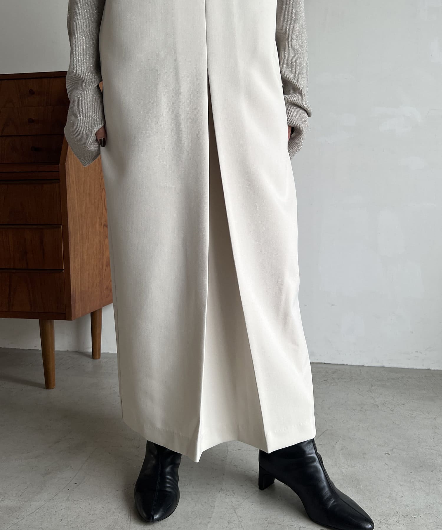 ・センターに入った深めのタックが動きをプラスしてくれ、こなれた印象に