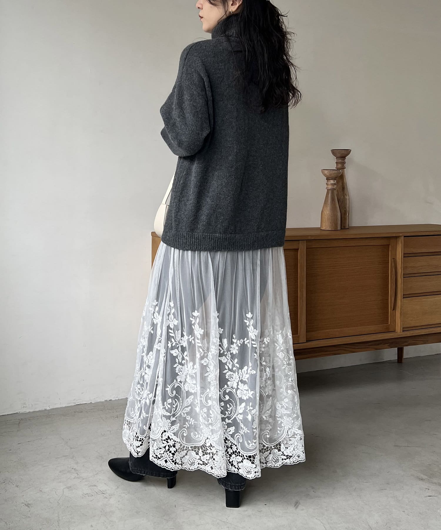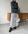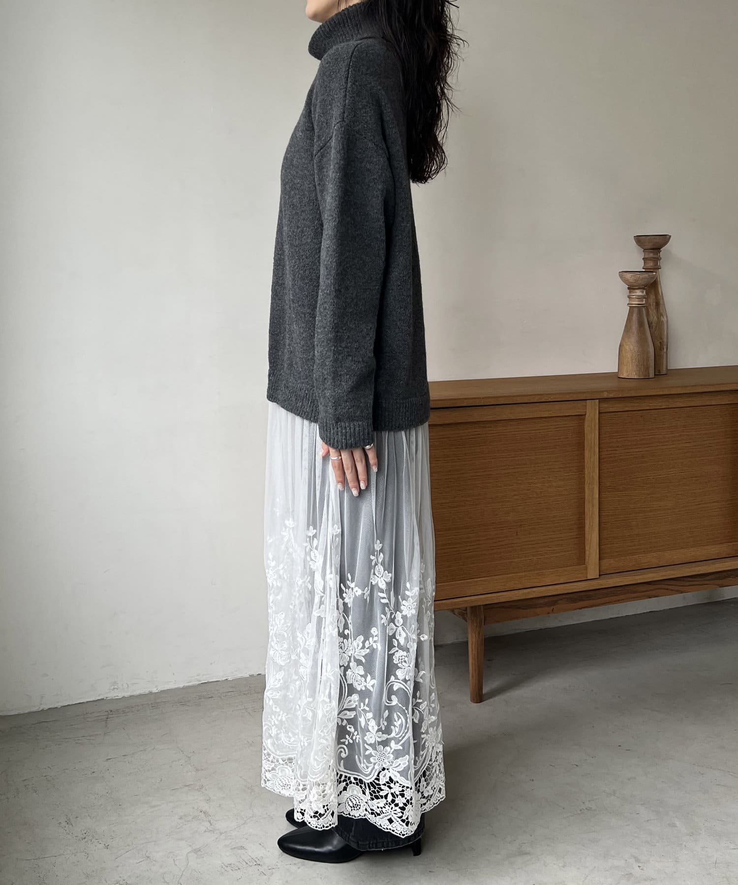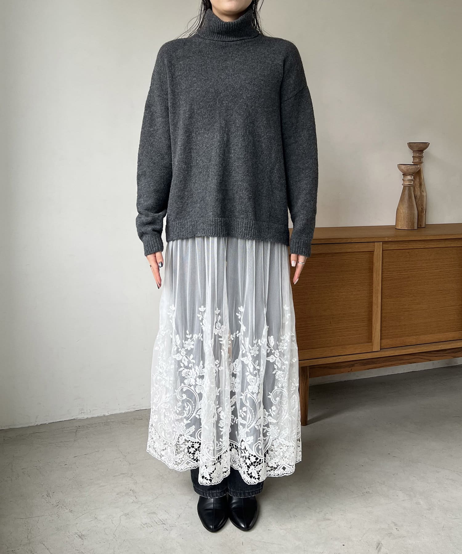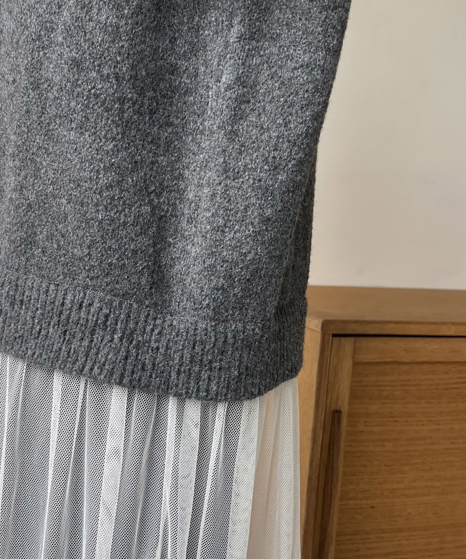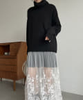 ニットにレーススカートがドッキングされたレイヤード風ワンピース