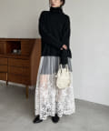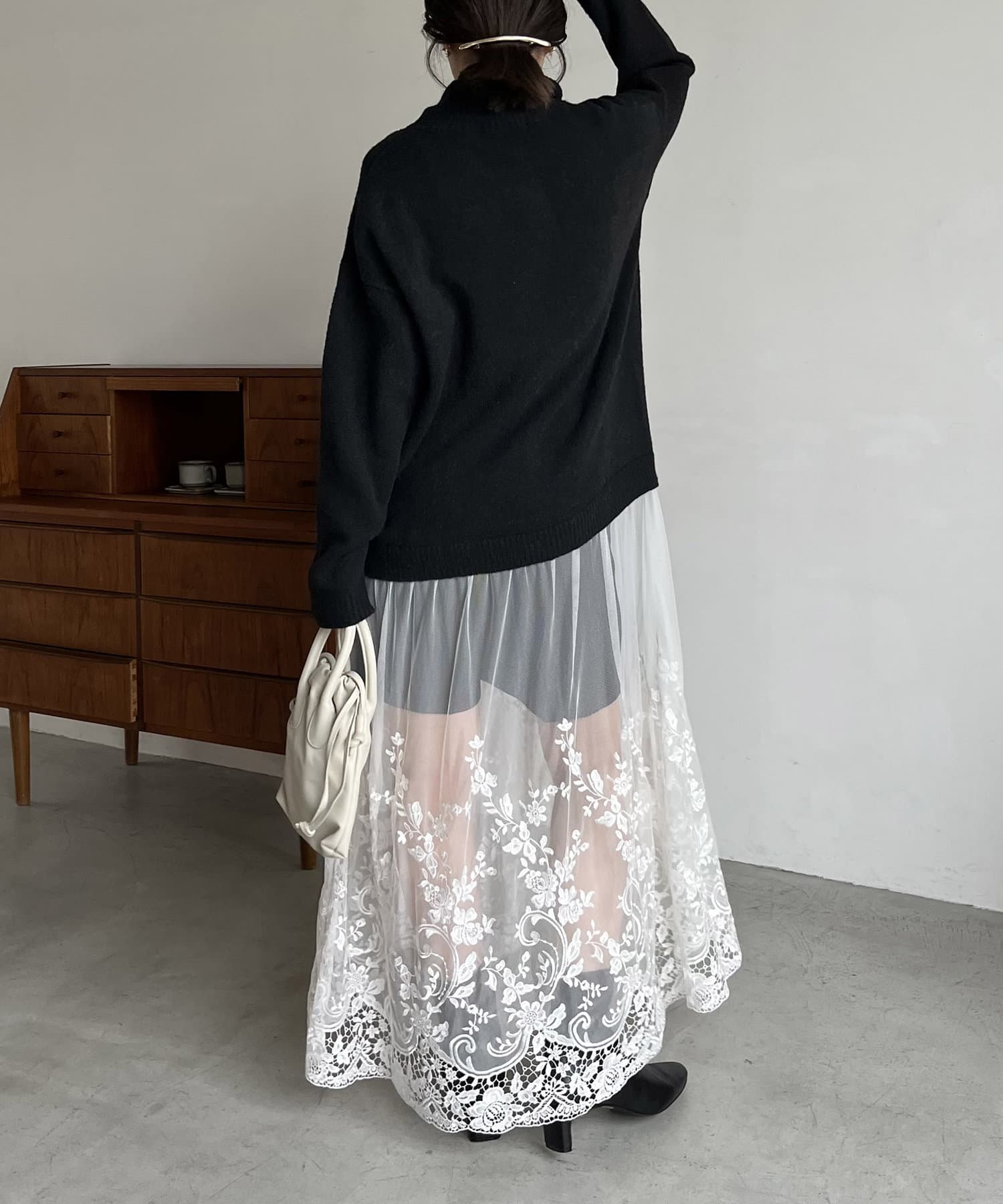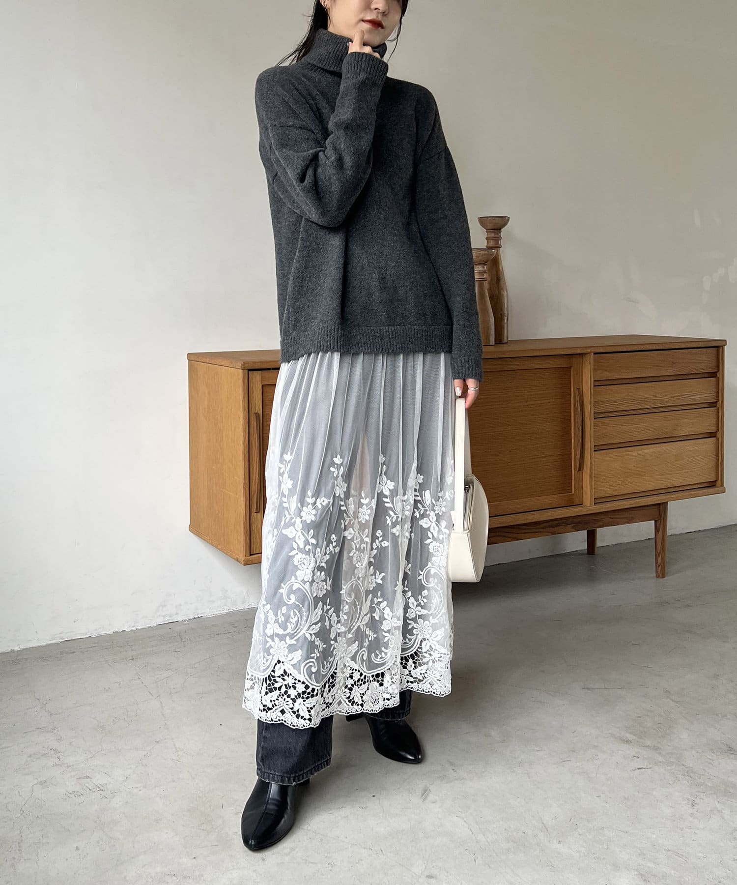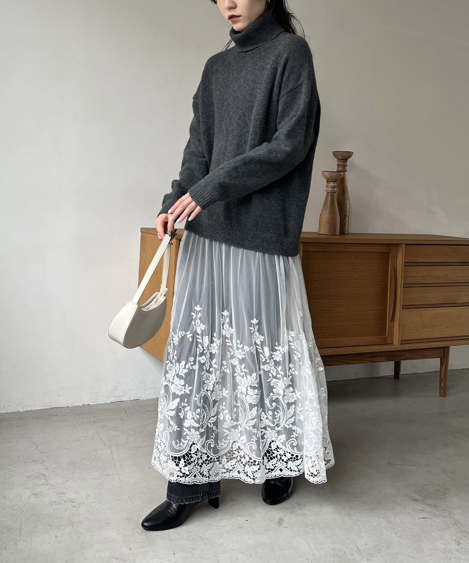 ニットにレーススカートがドッキングされたレイヤード風ワンピース