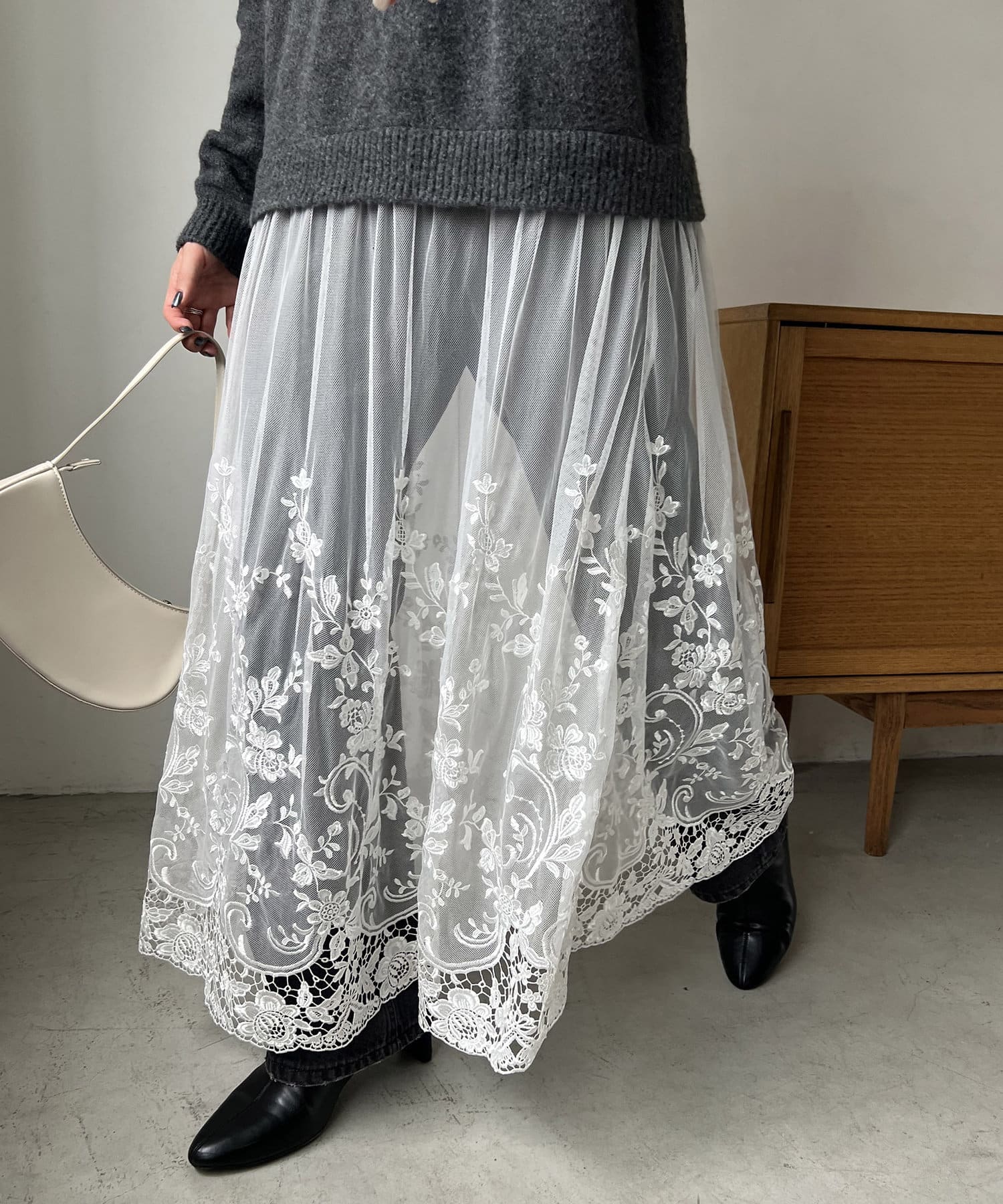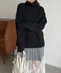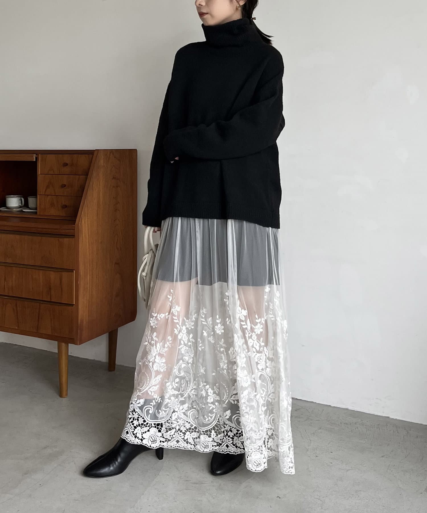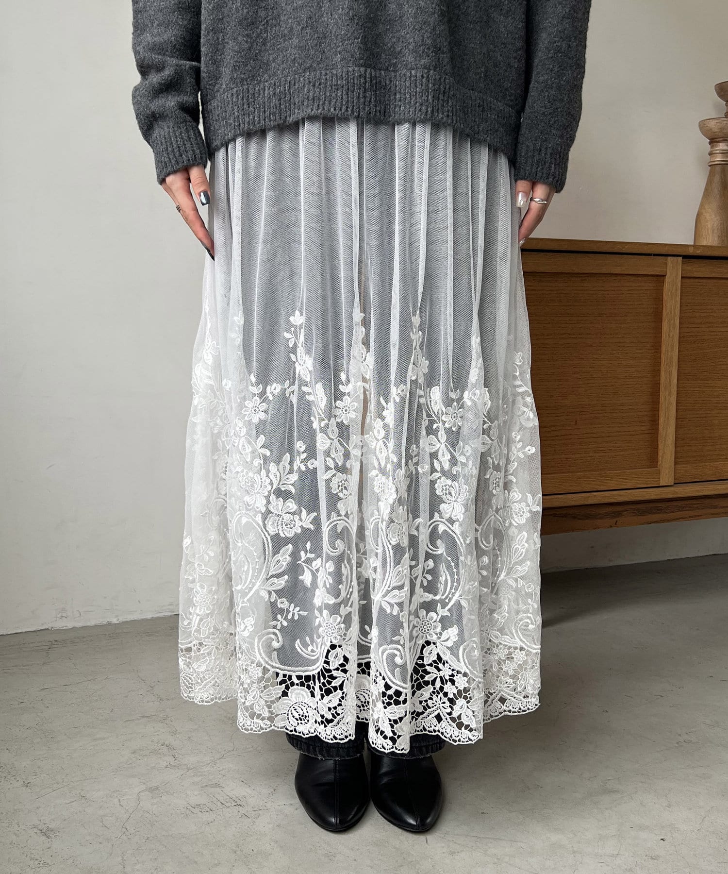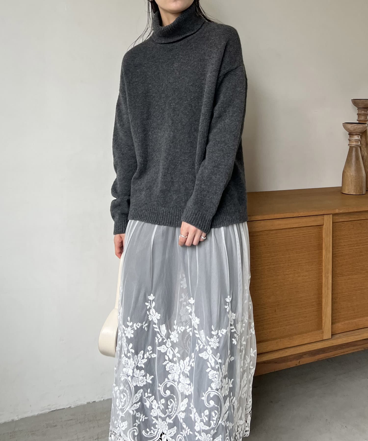 ニットにレーススカートがドッキングされたレイヤード風ワンピース