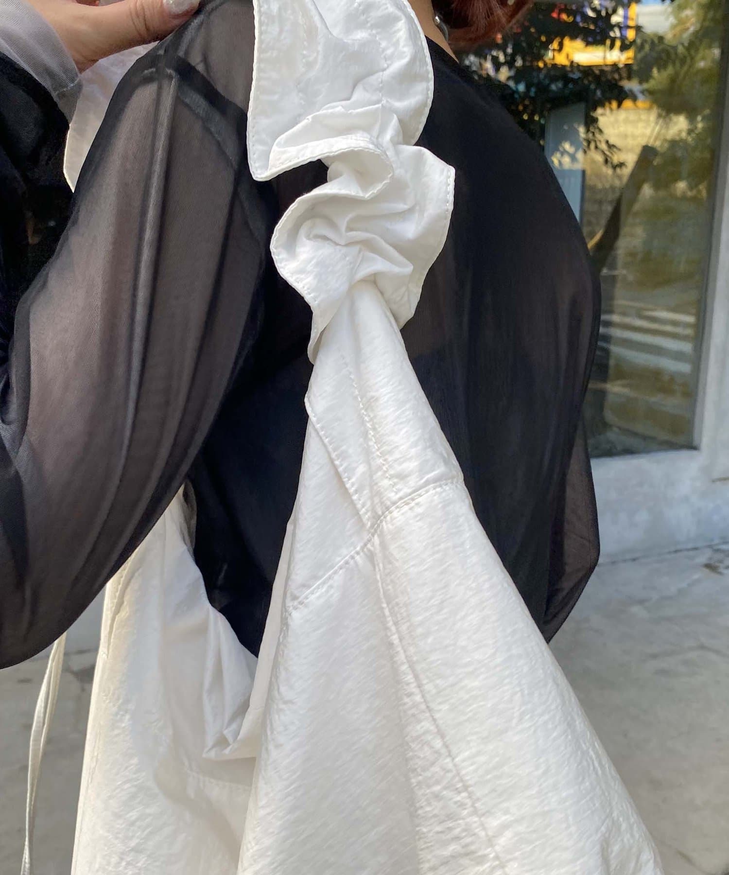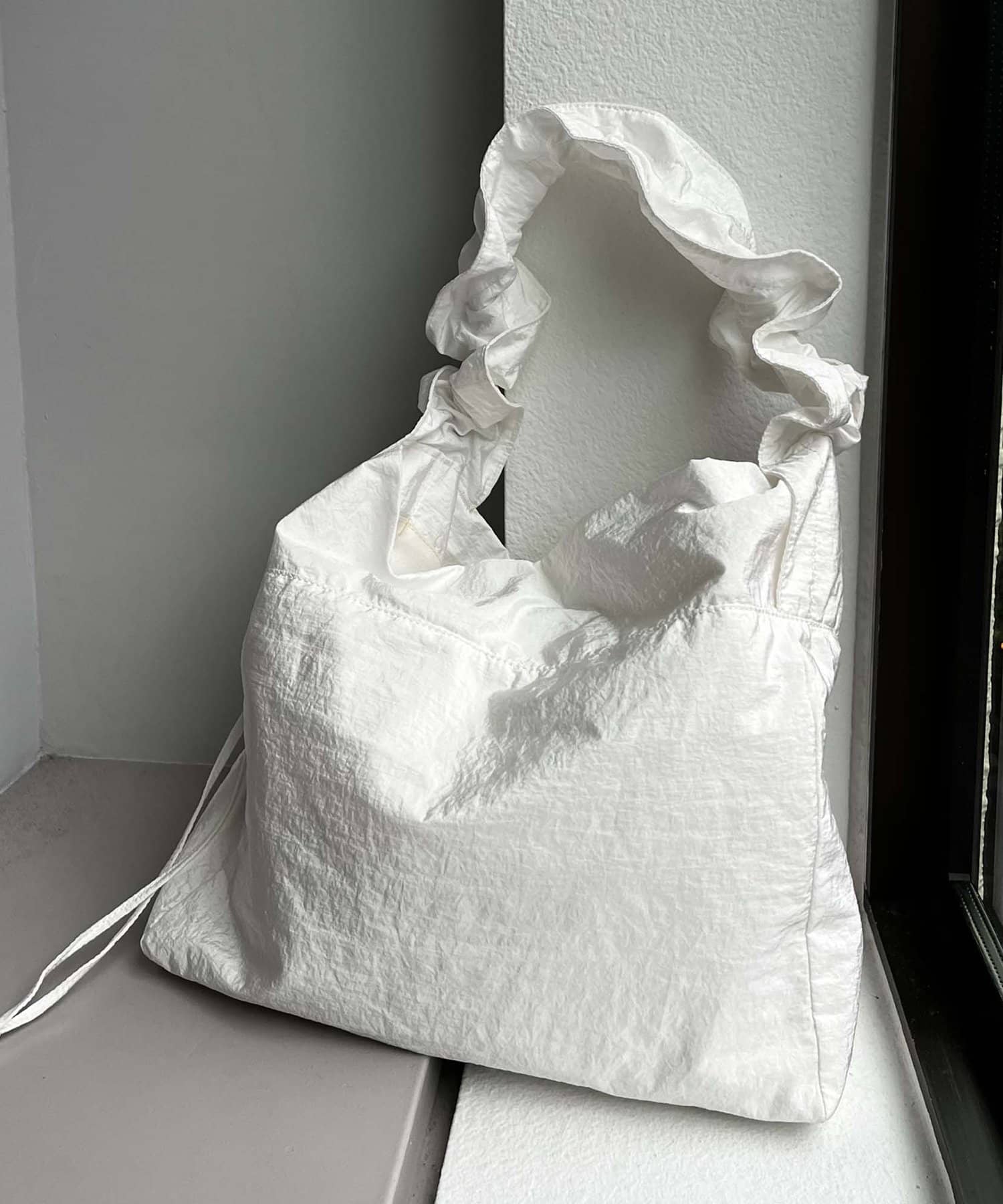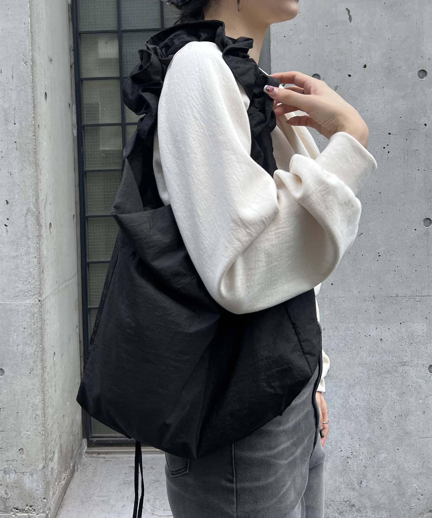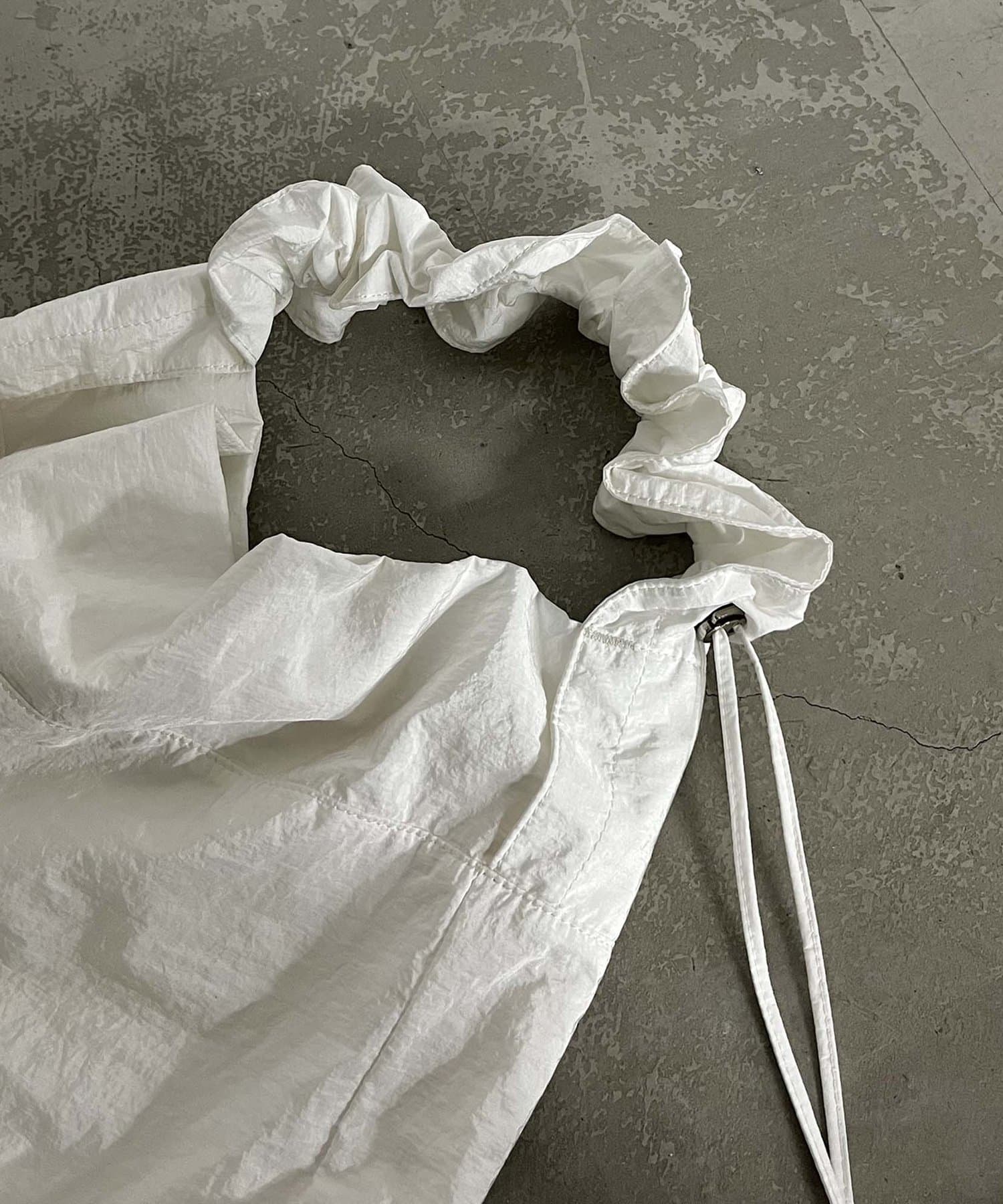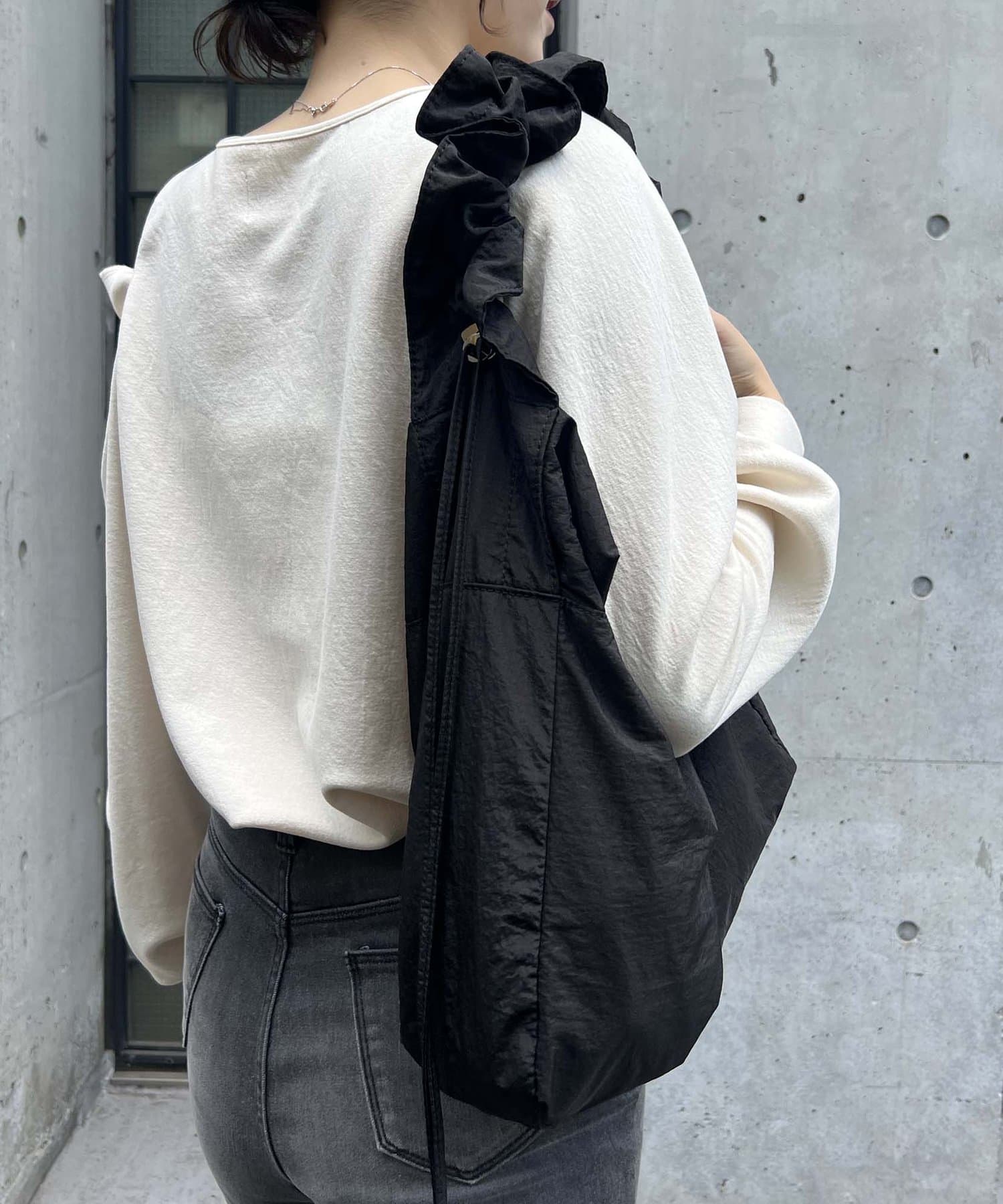 ・ショルダー紐がドロストになっているので、短くするとフリルっぽくなる
