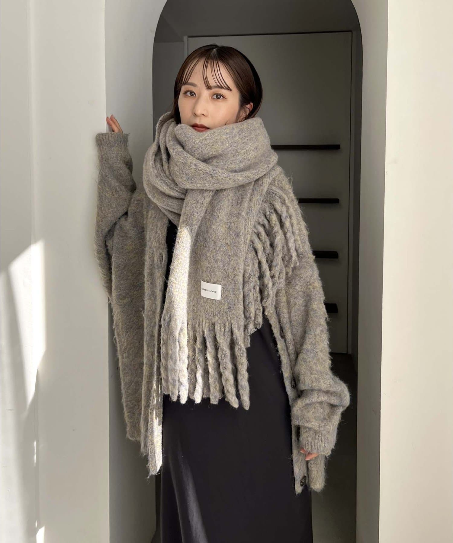 是非カーディガンと一緒に付けていただきたいフリンジマフラー!