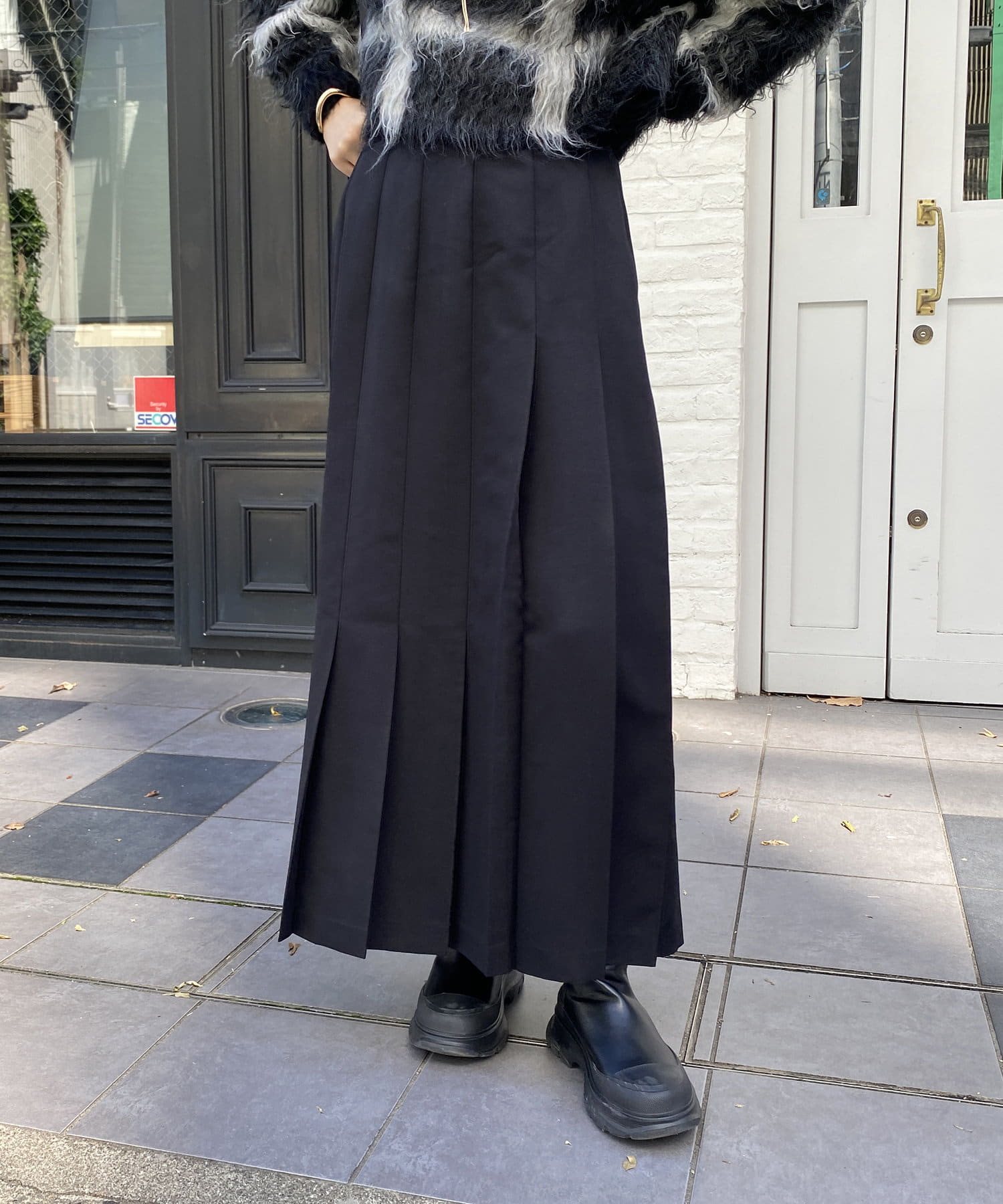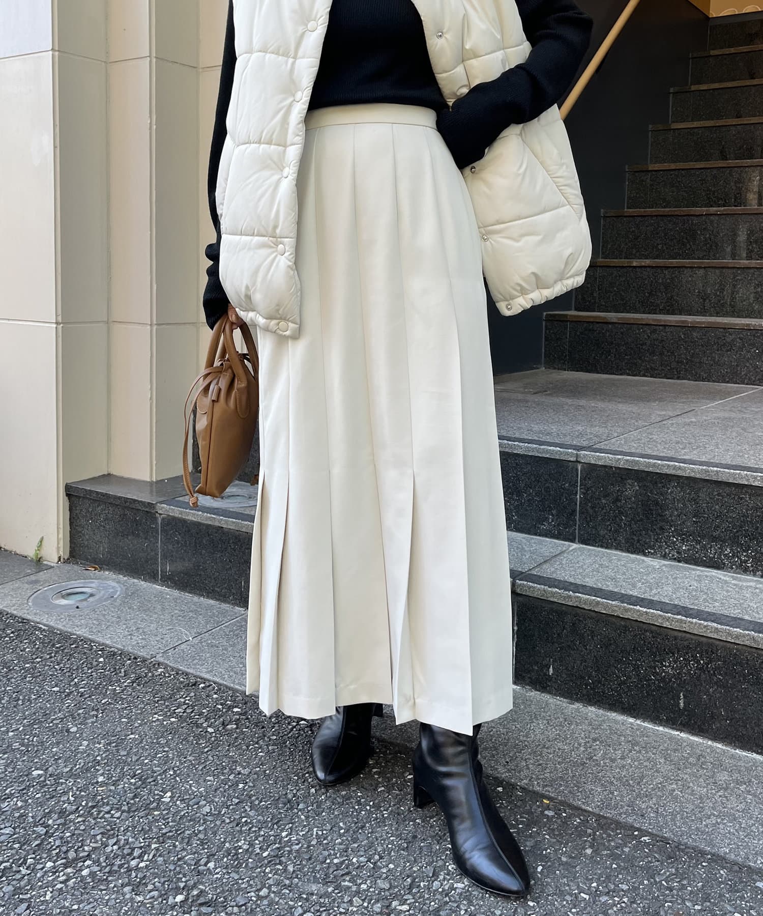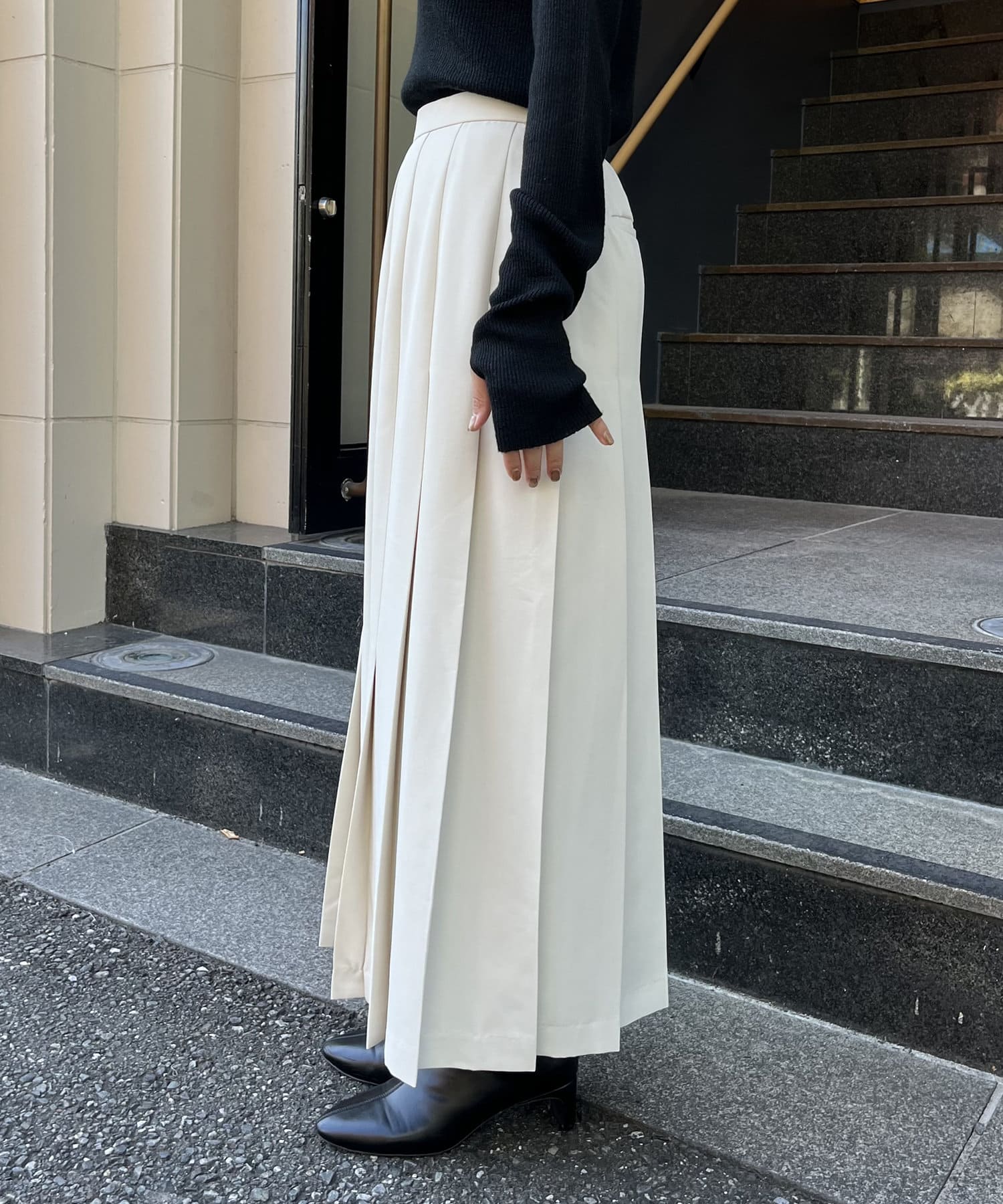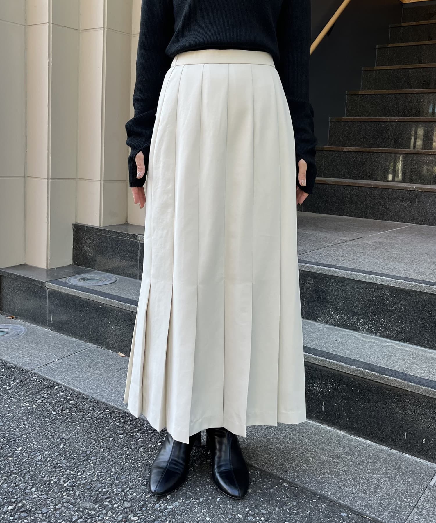 Iラインシルエットのプリーツスカート