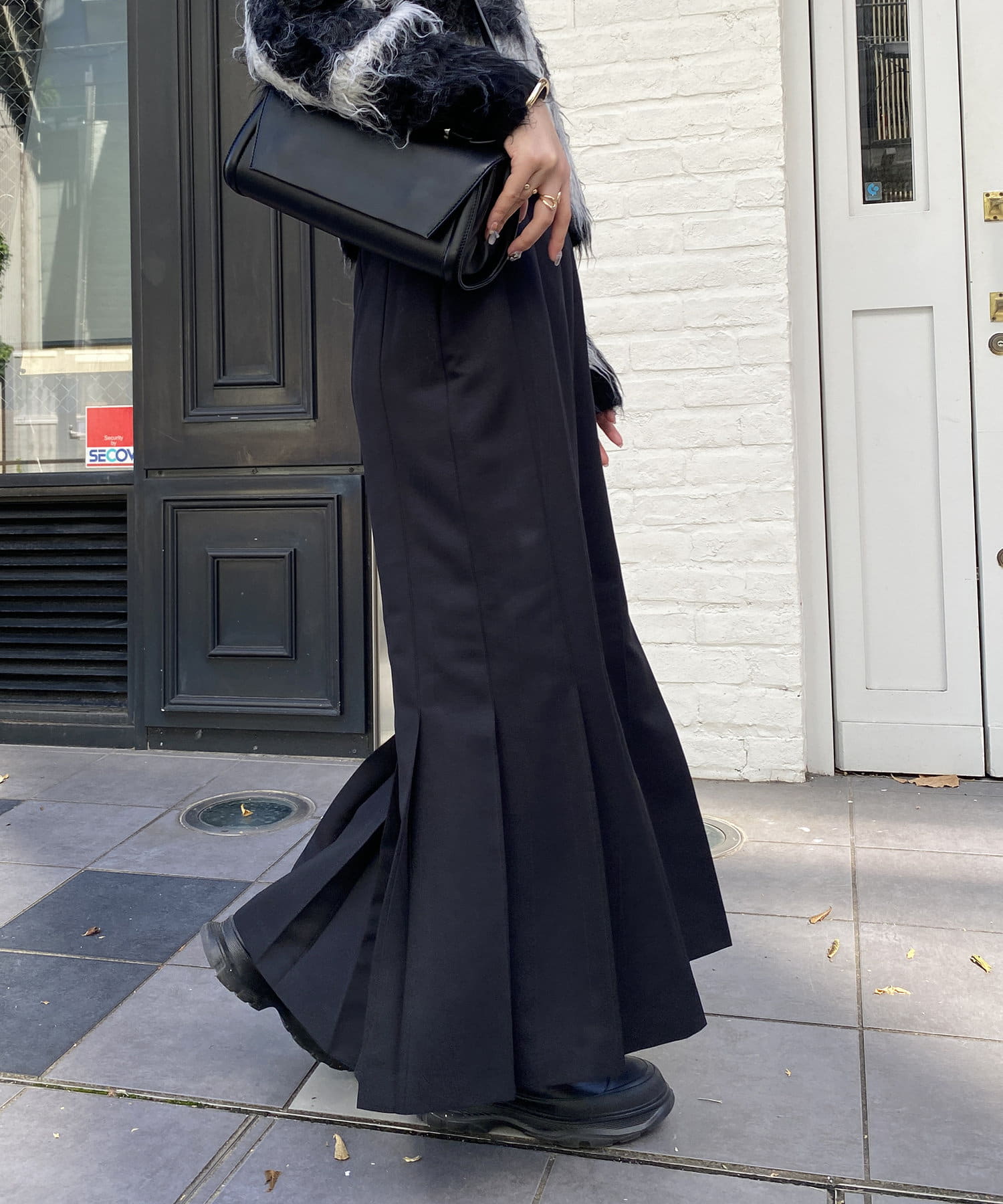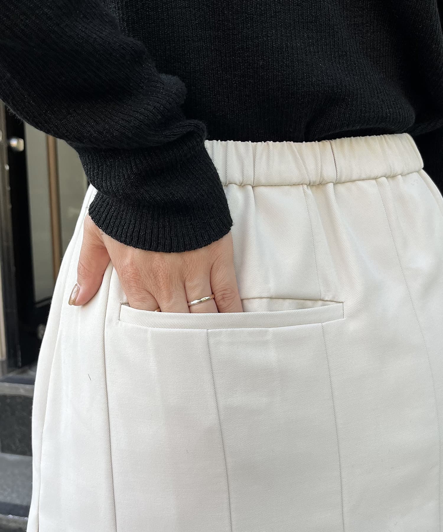 ・ヒップ周りはすっきり、ひざ下から開くプリーツデザイン