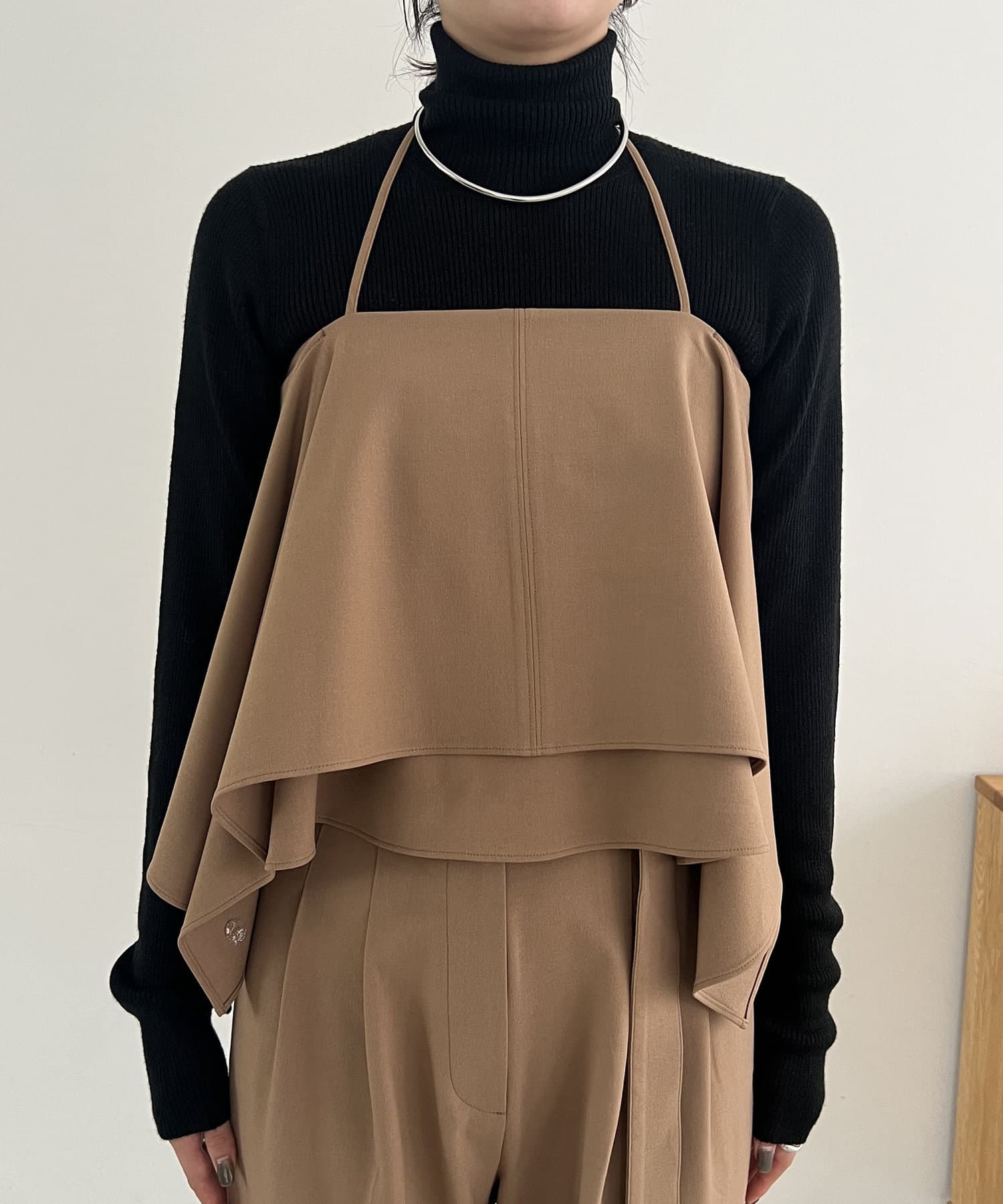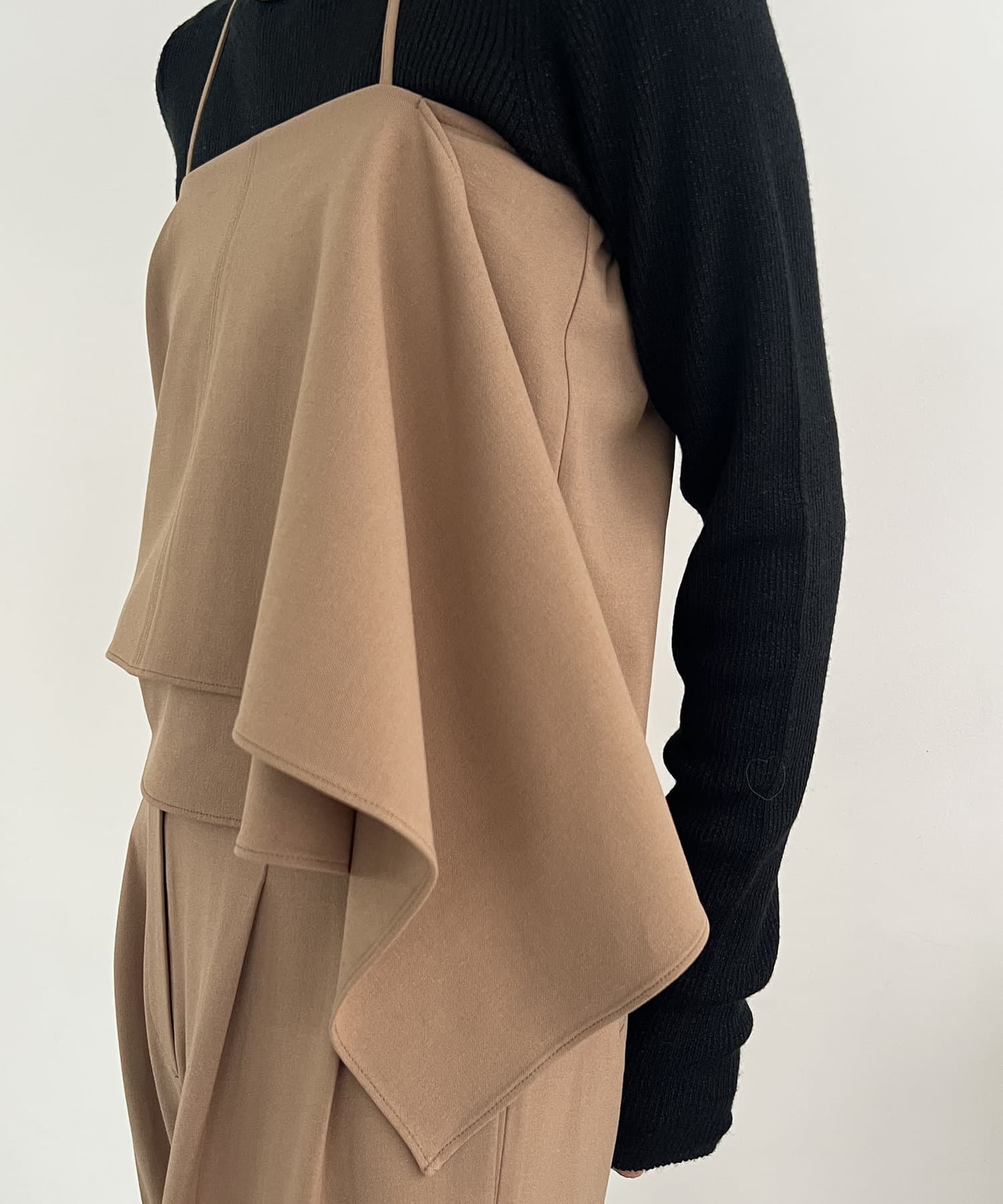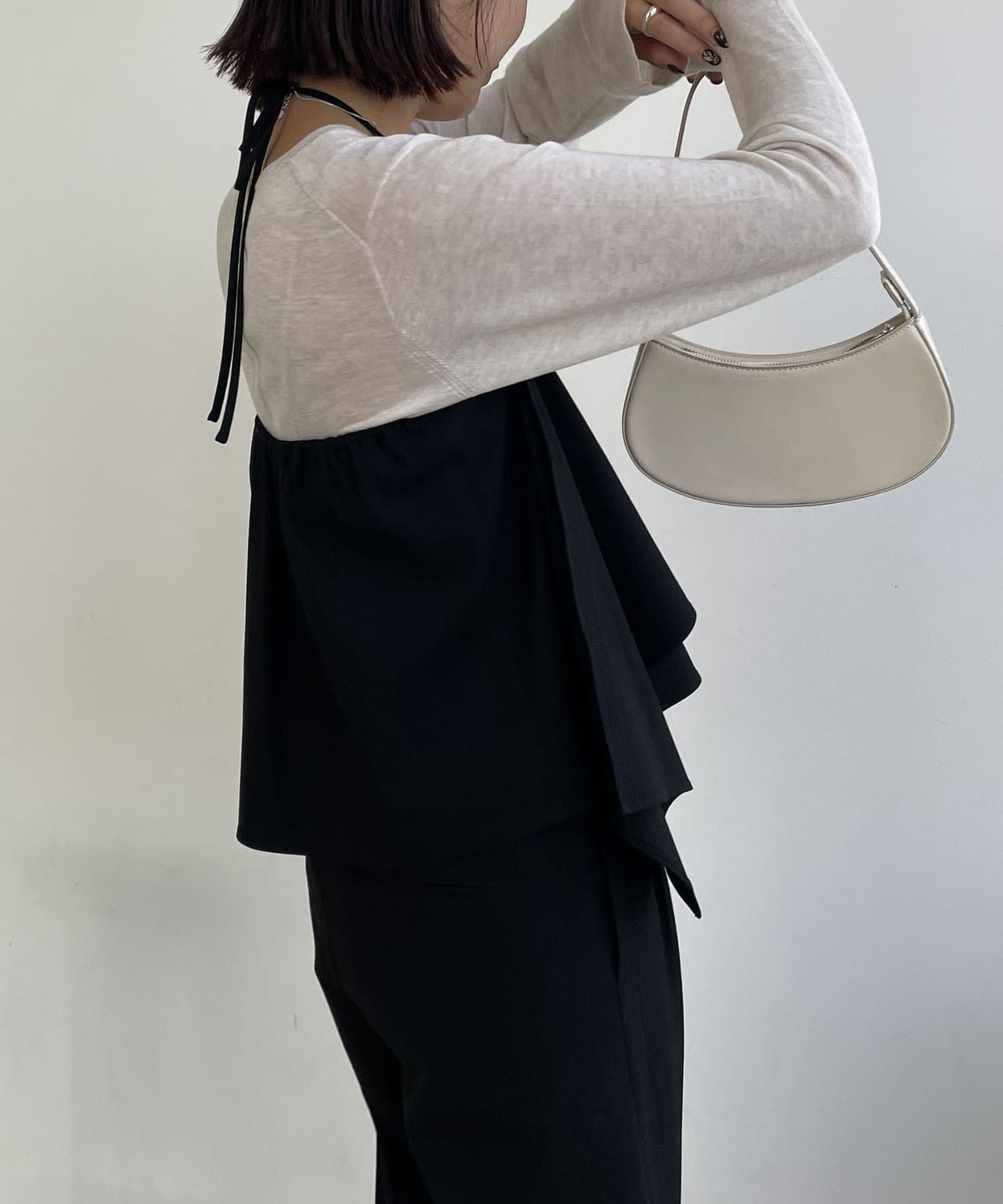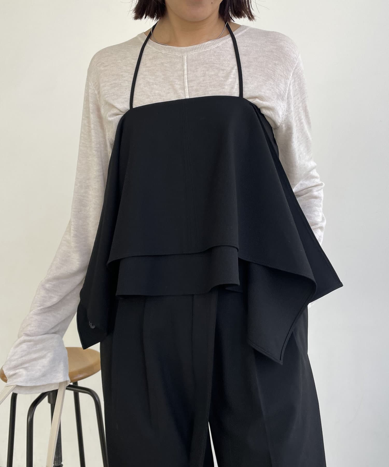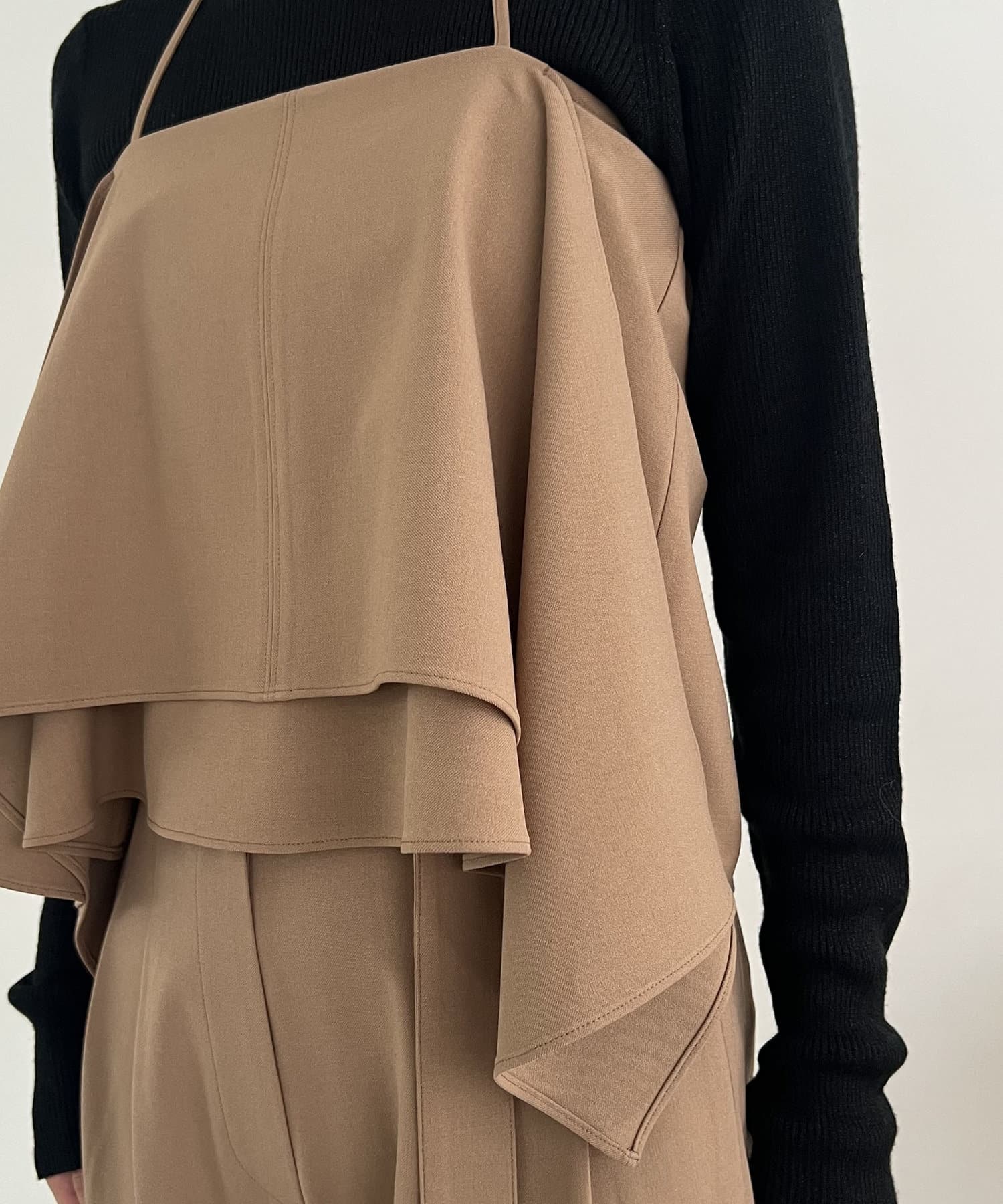 ・前が2重になっていて上の生地がドレープ感あり、動きのあるデザインがポイント
