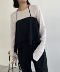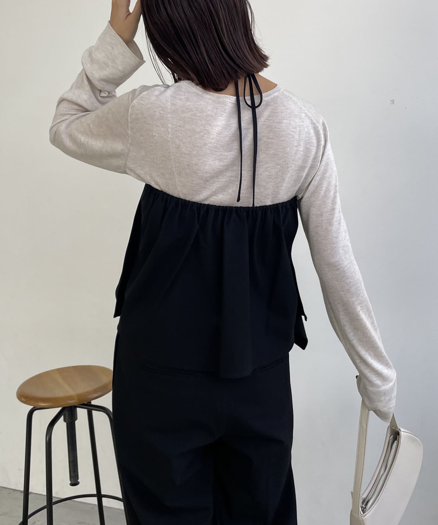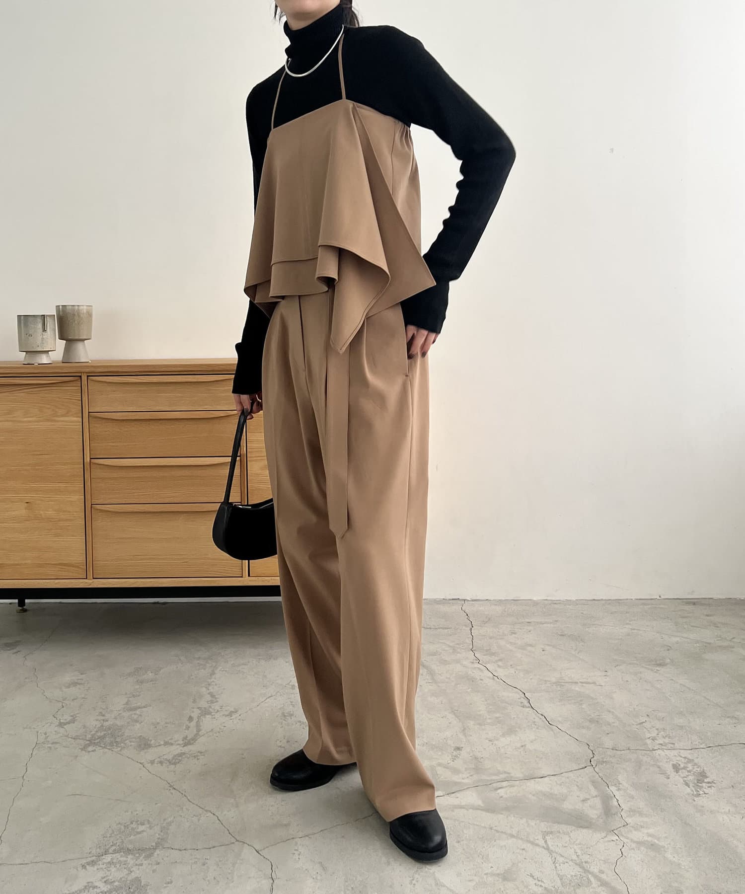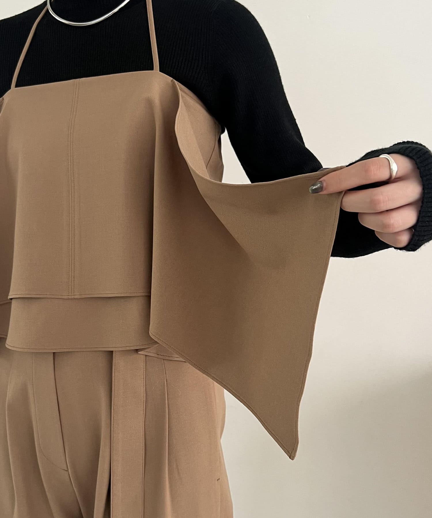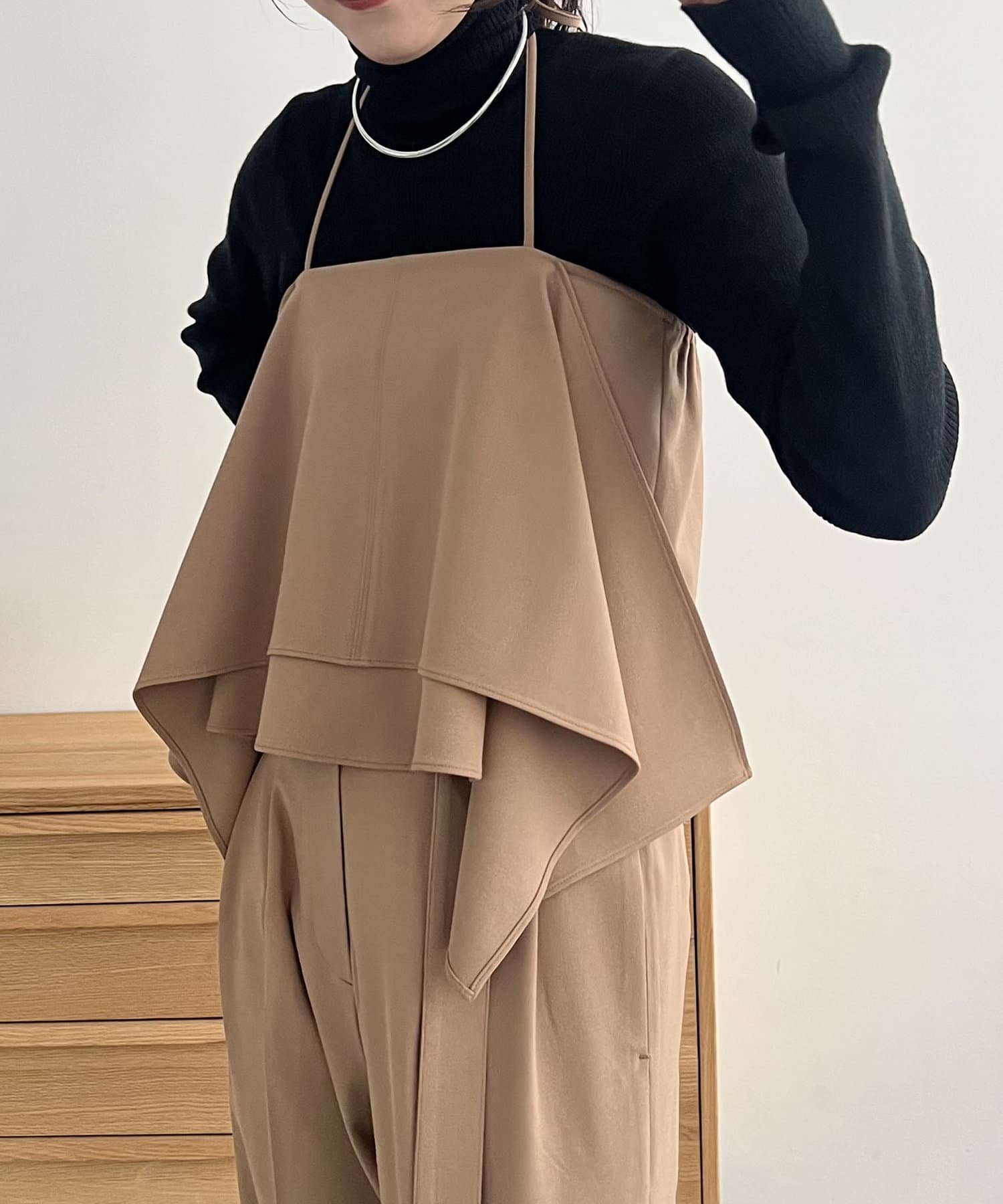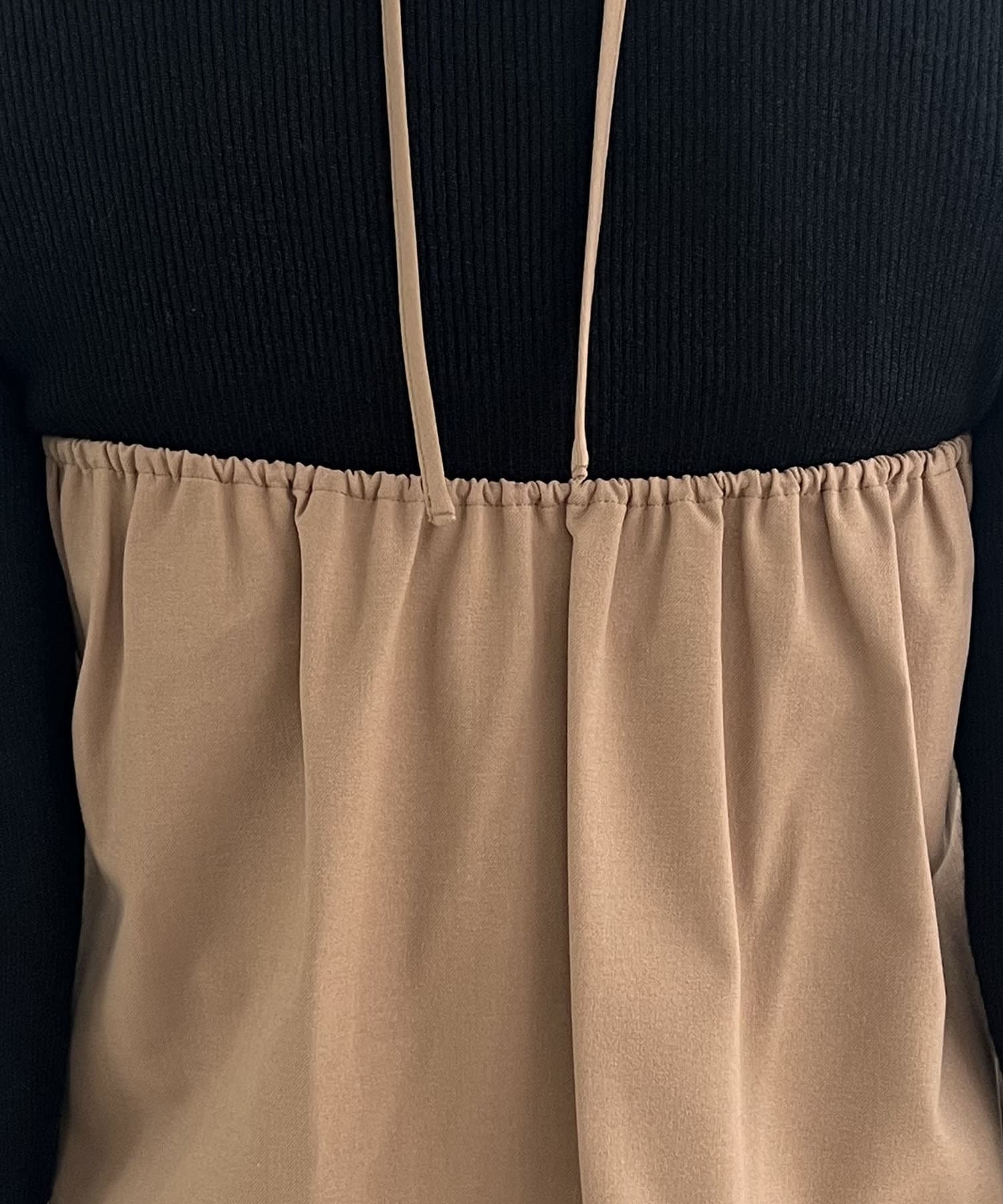 ・前が2重になっていて上の生地がドレープ感あり、動きのあるデザインがポイント