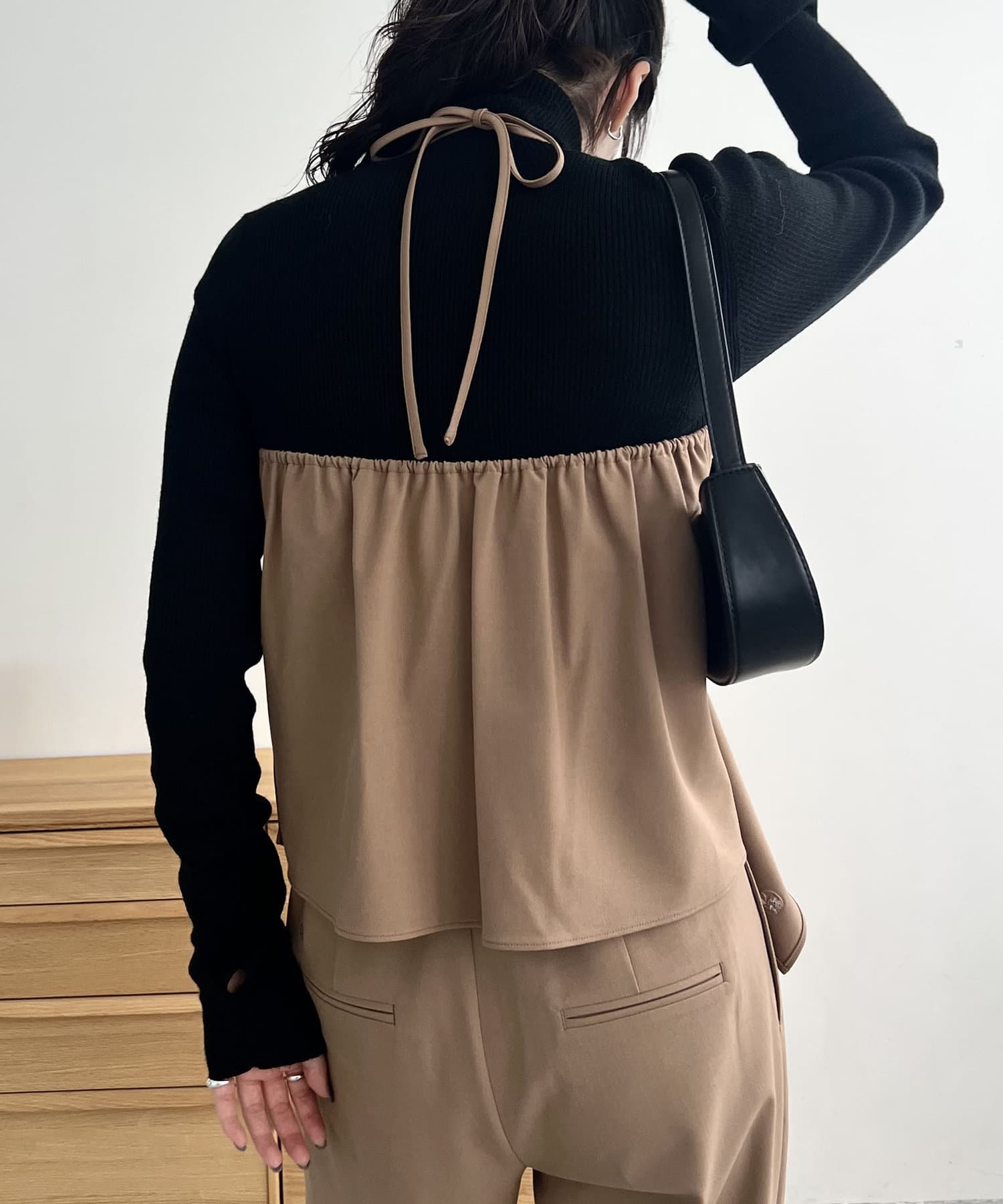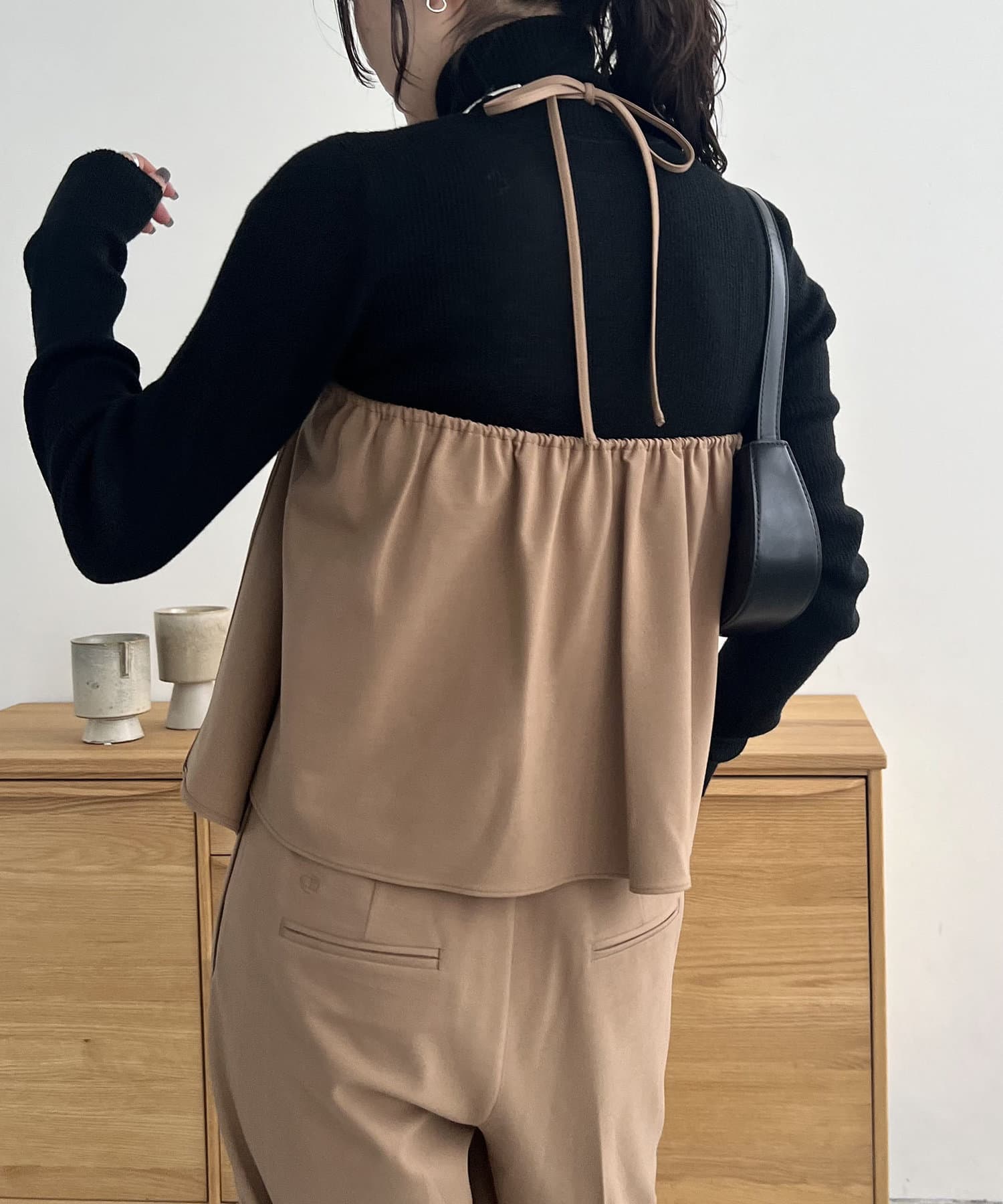 ・ハイネックや薄手のニットと合わせるのがおすすめ