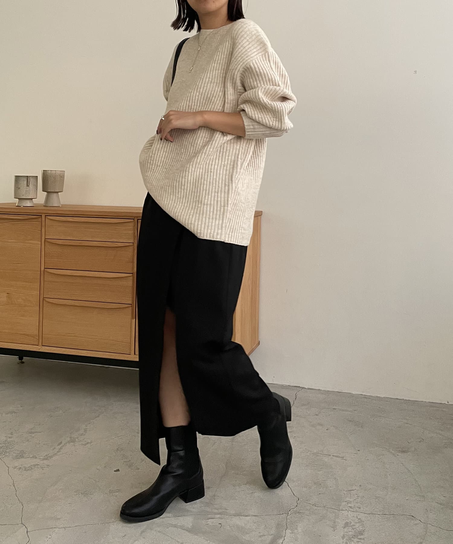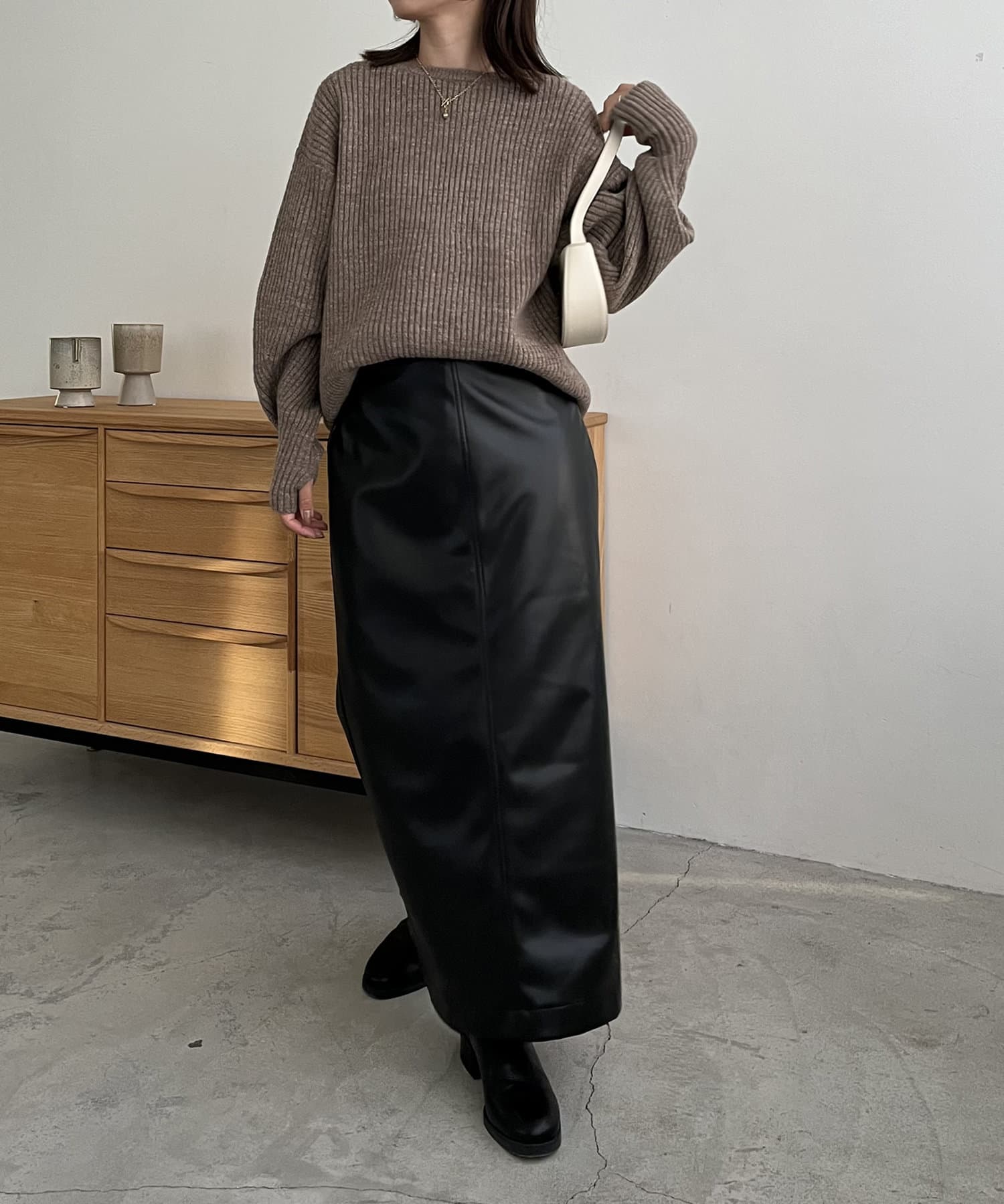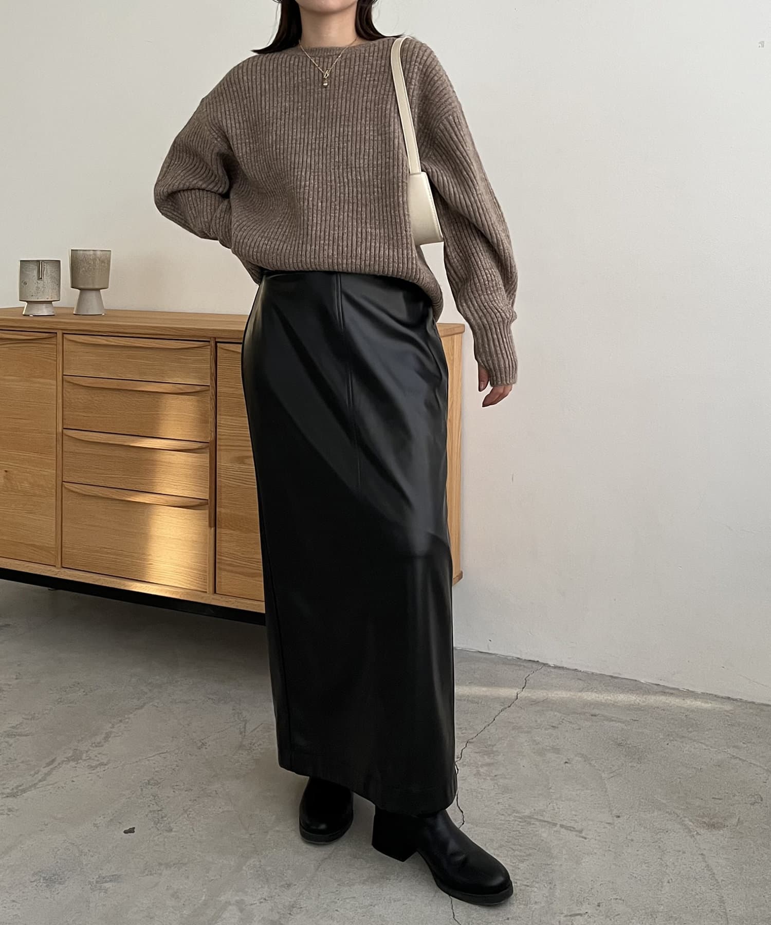 ・タイトスカートと合わせてすっきりと大人なスタイリングに