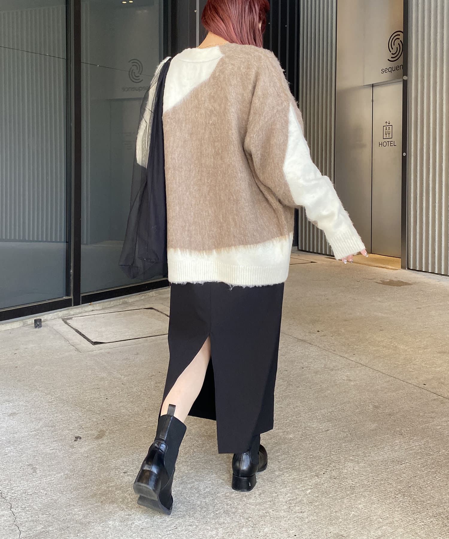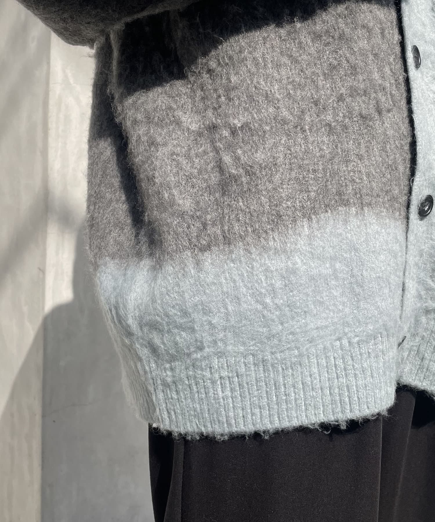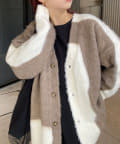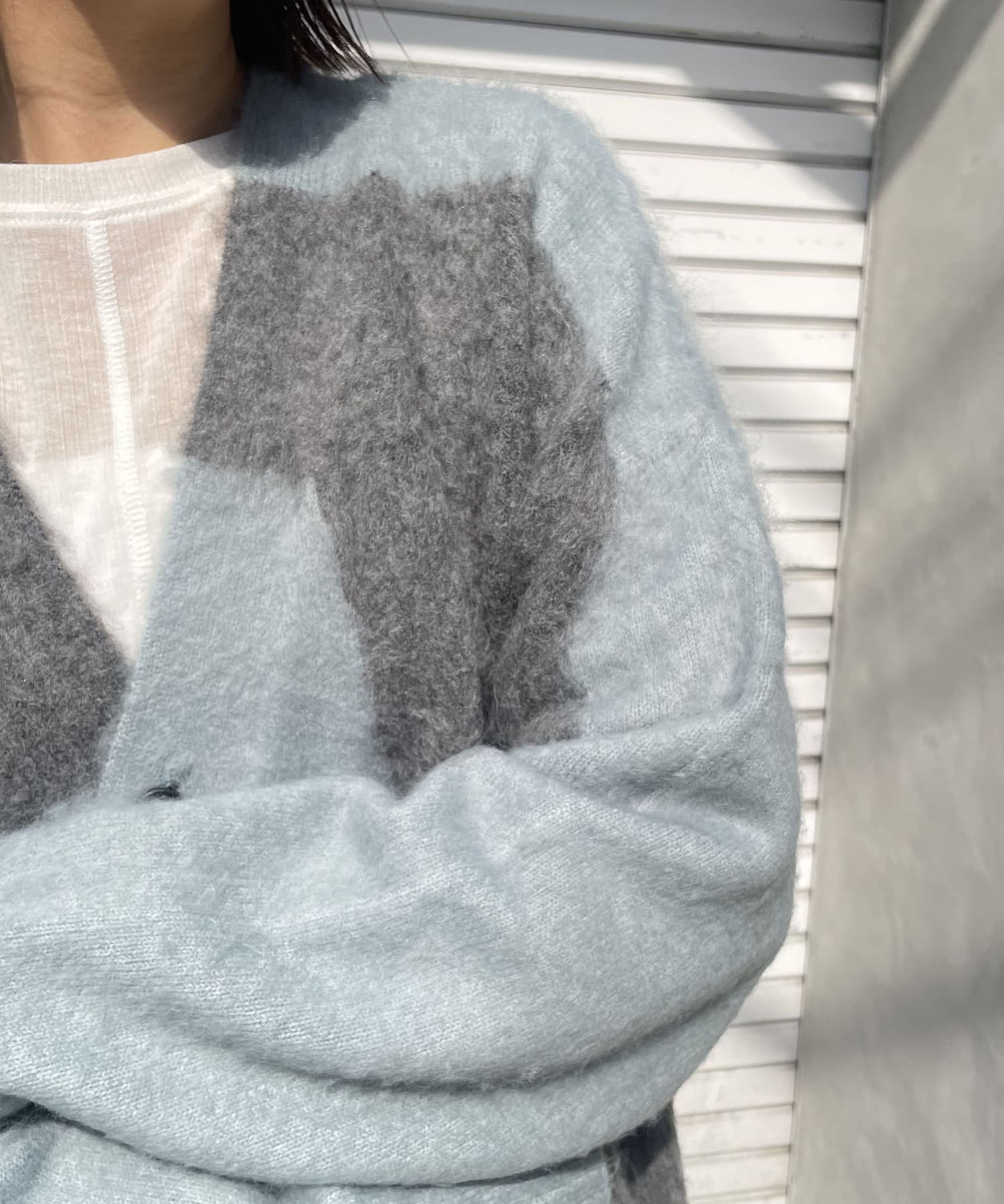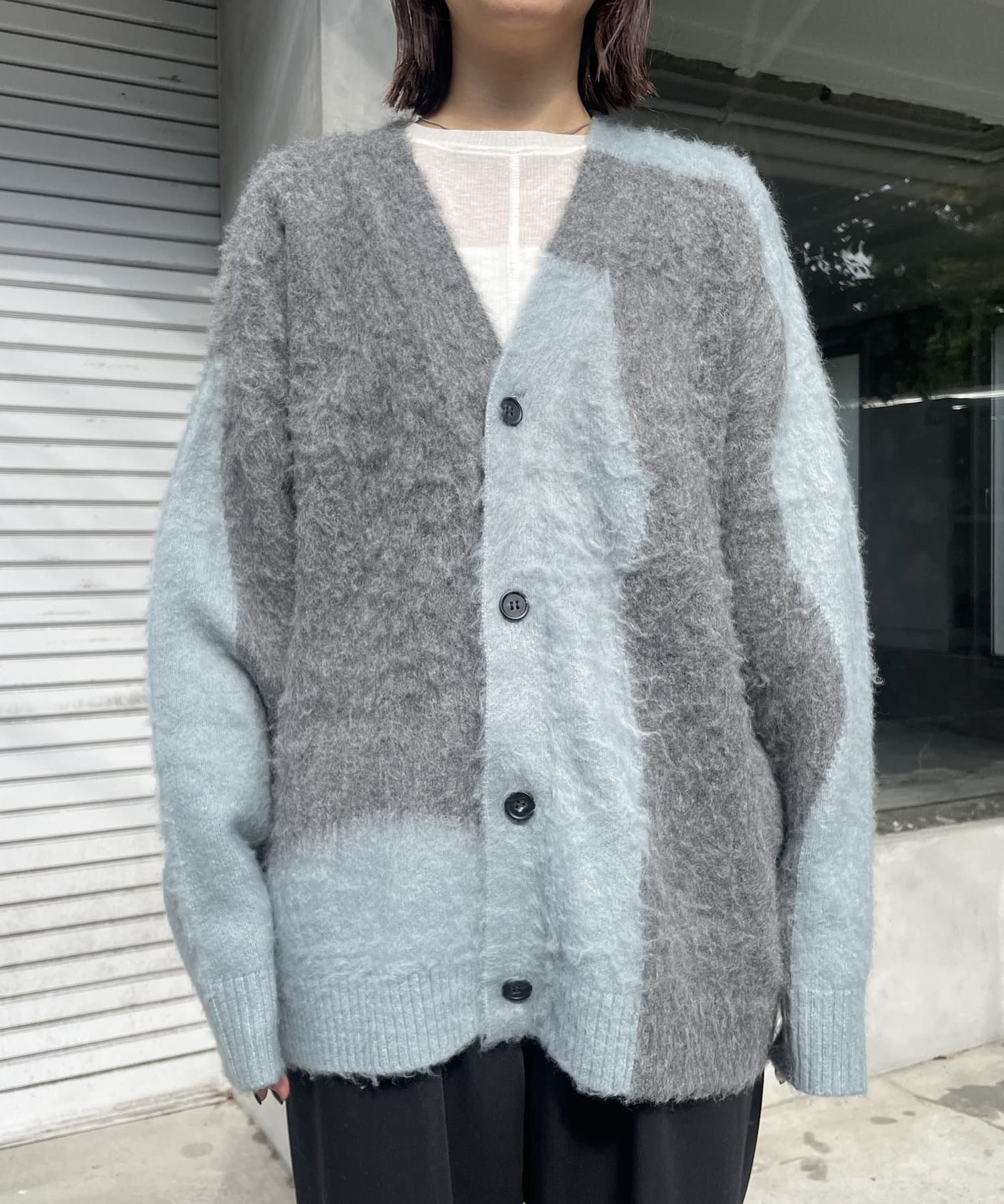 ・ニュアンス感のあるカーブラインで配色に編みたてた主役級カーデ