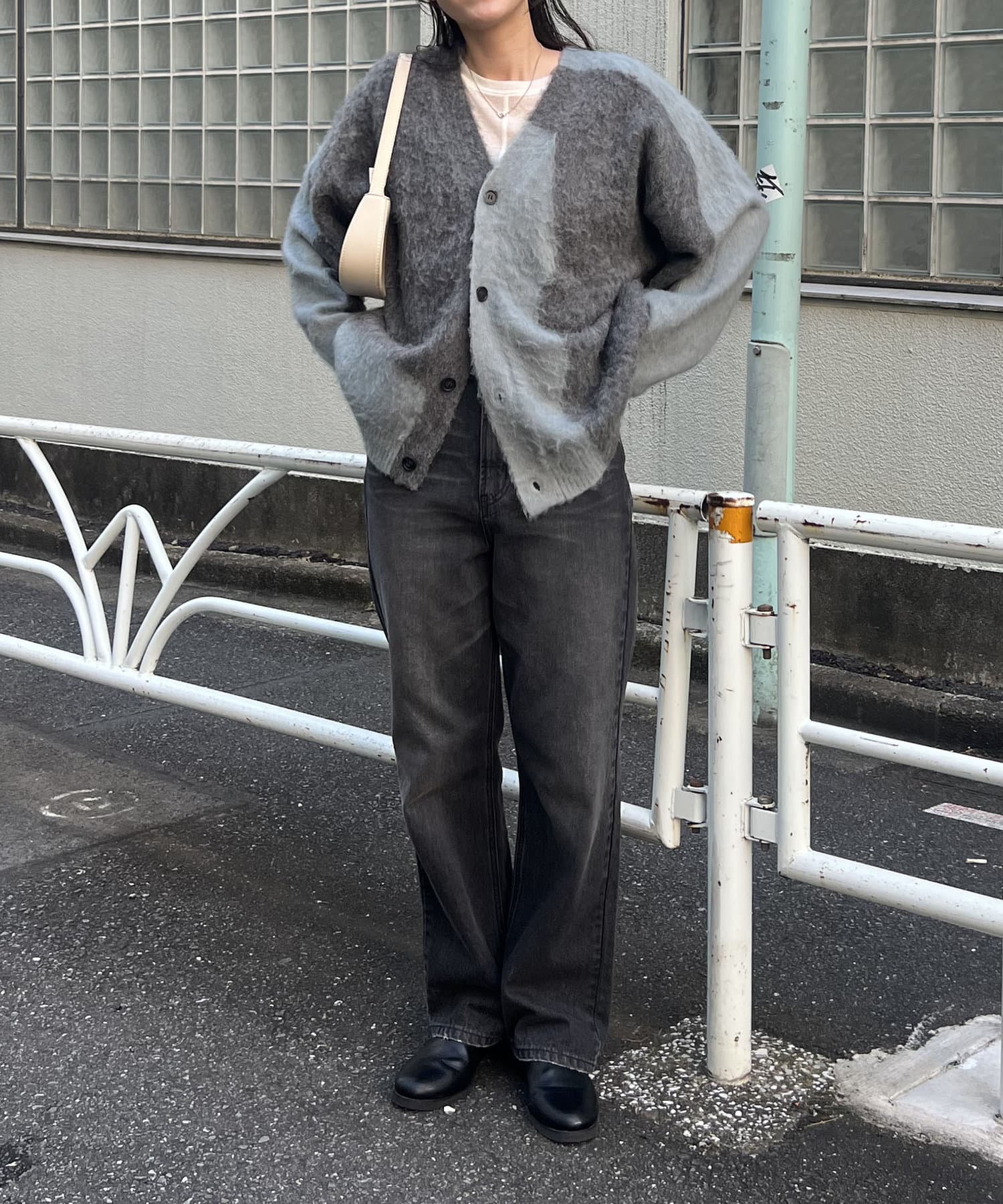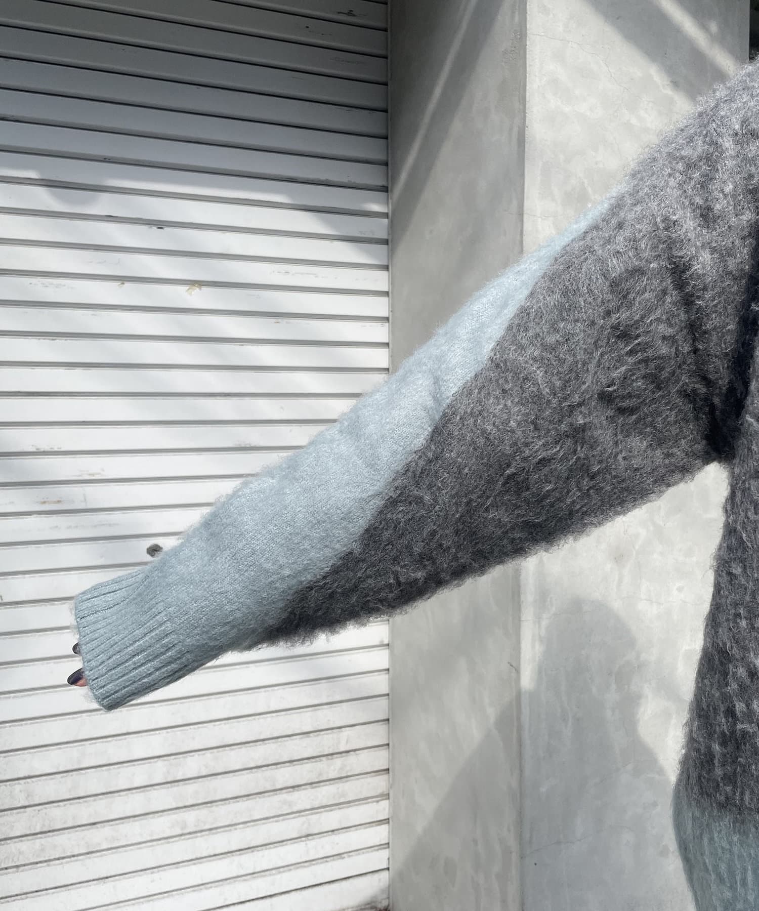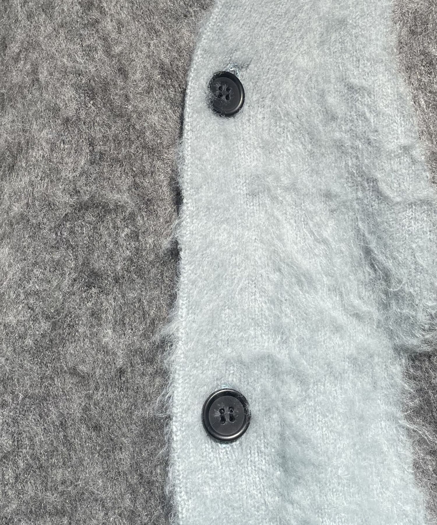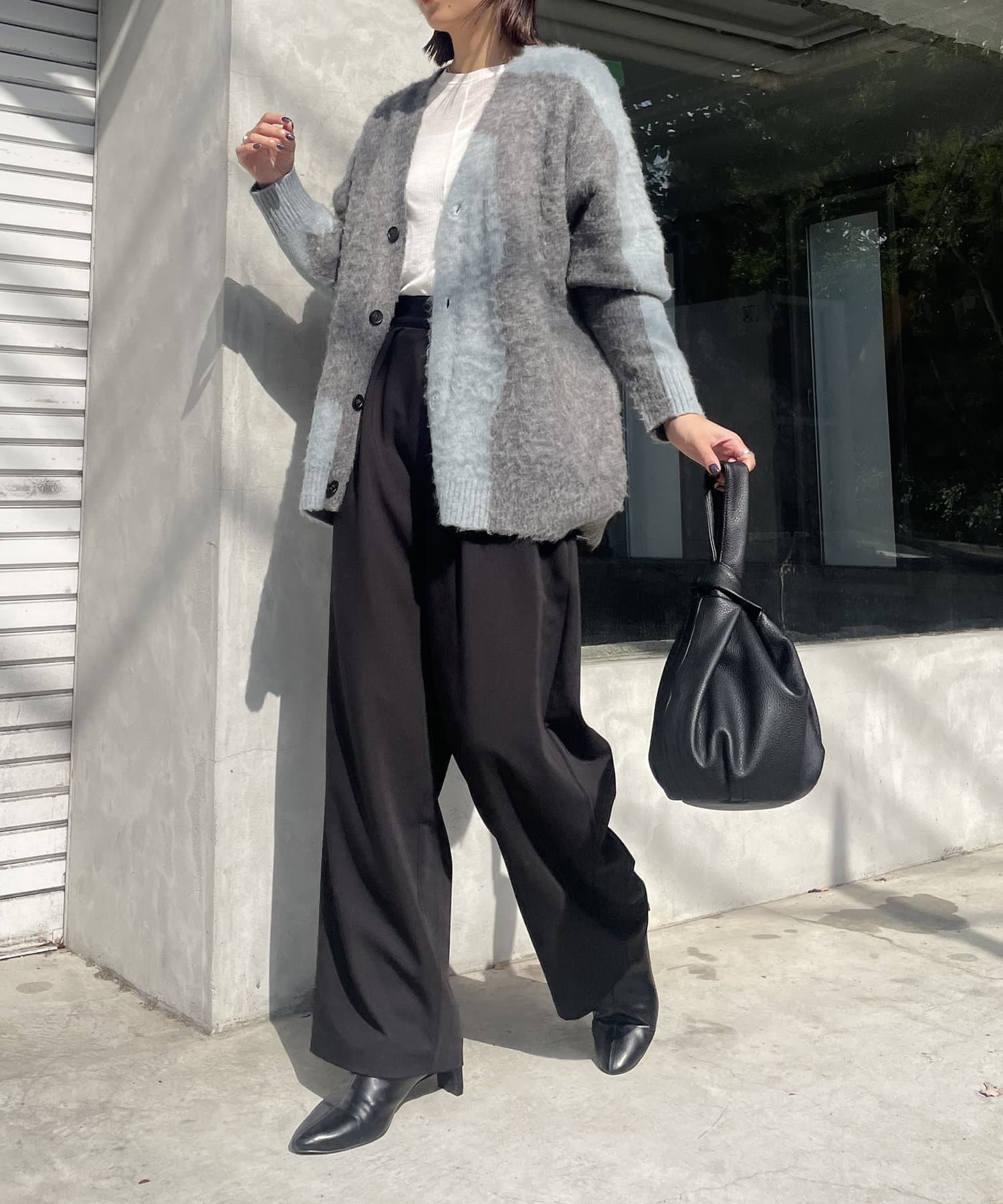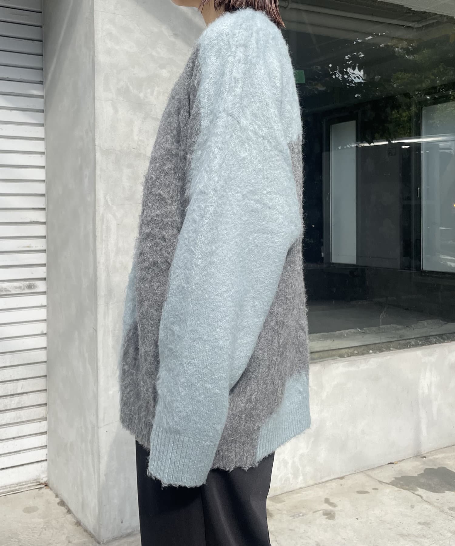 ・ニュアンス感のあるカーブラインで配色に編みたてた主役級カーデ