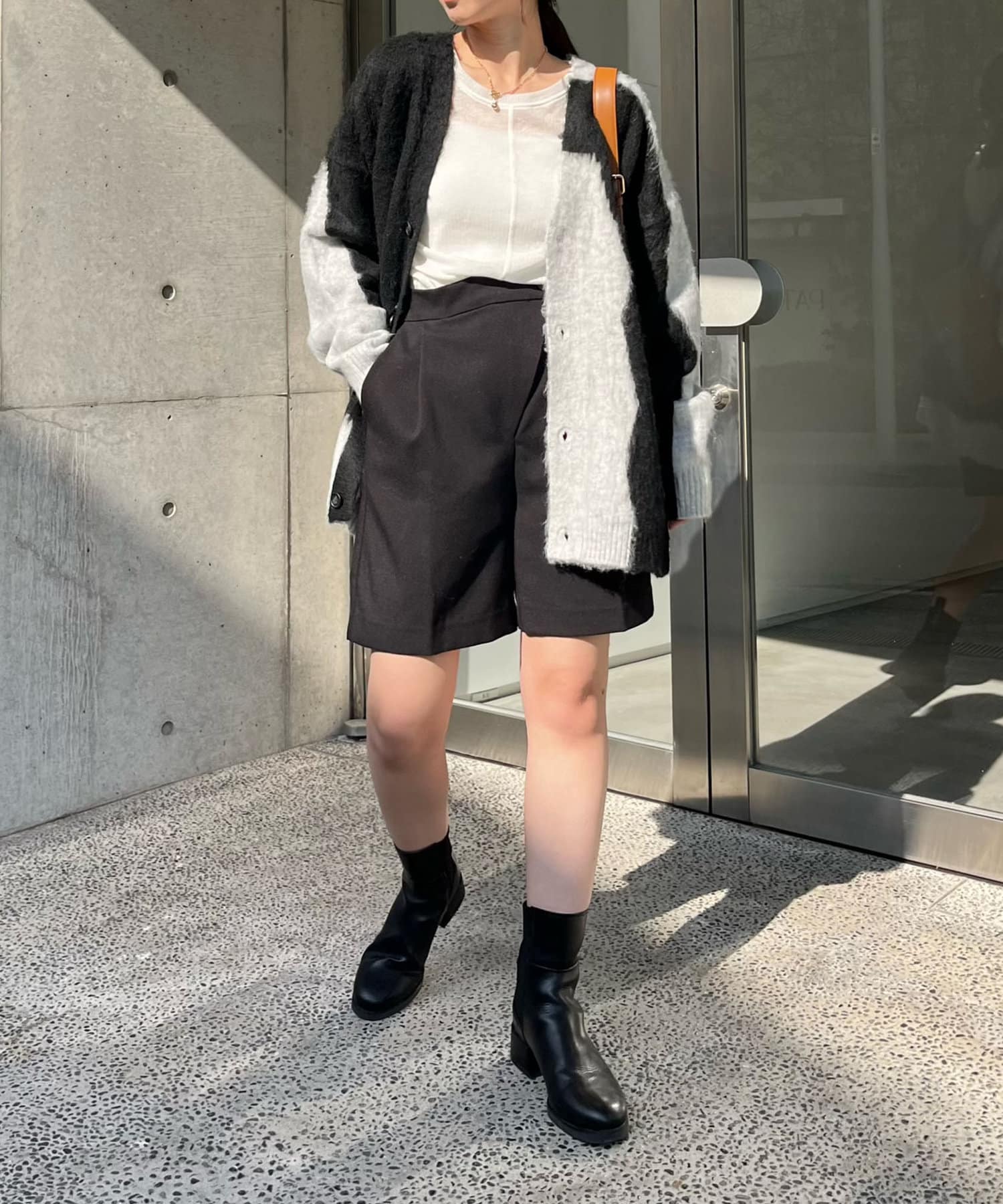 ・キャミやロンT、ハイネックなどインナーを変えてスタイリングを楽しめる