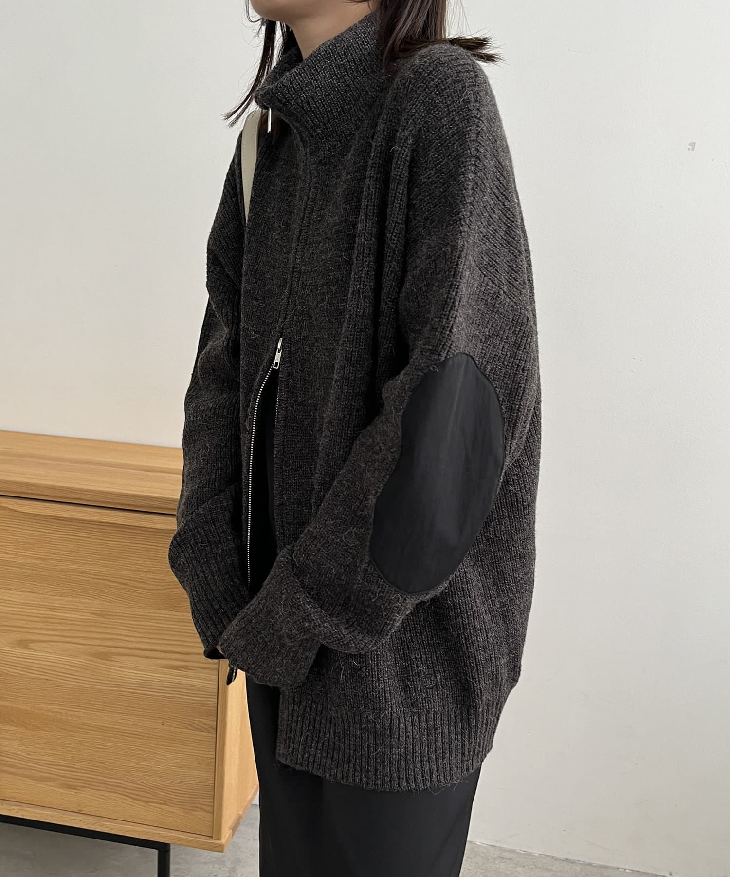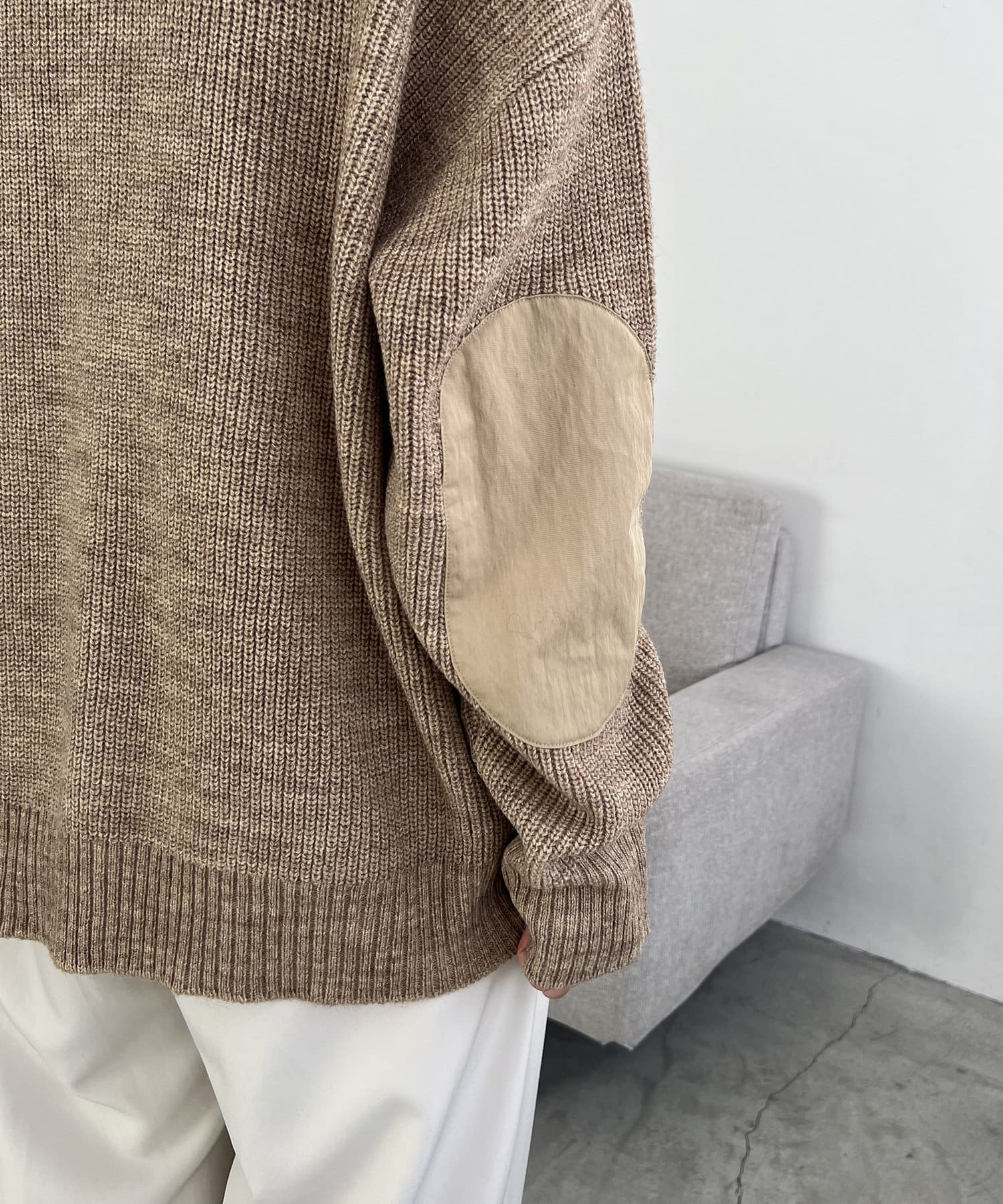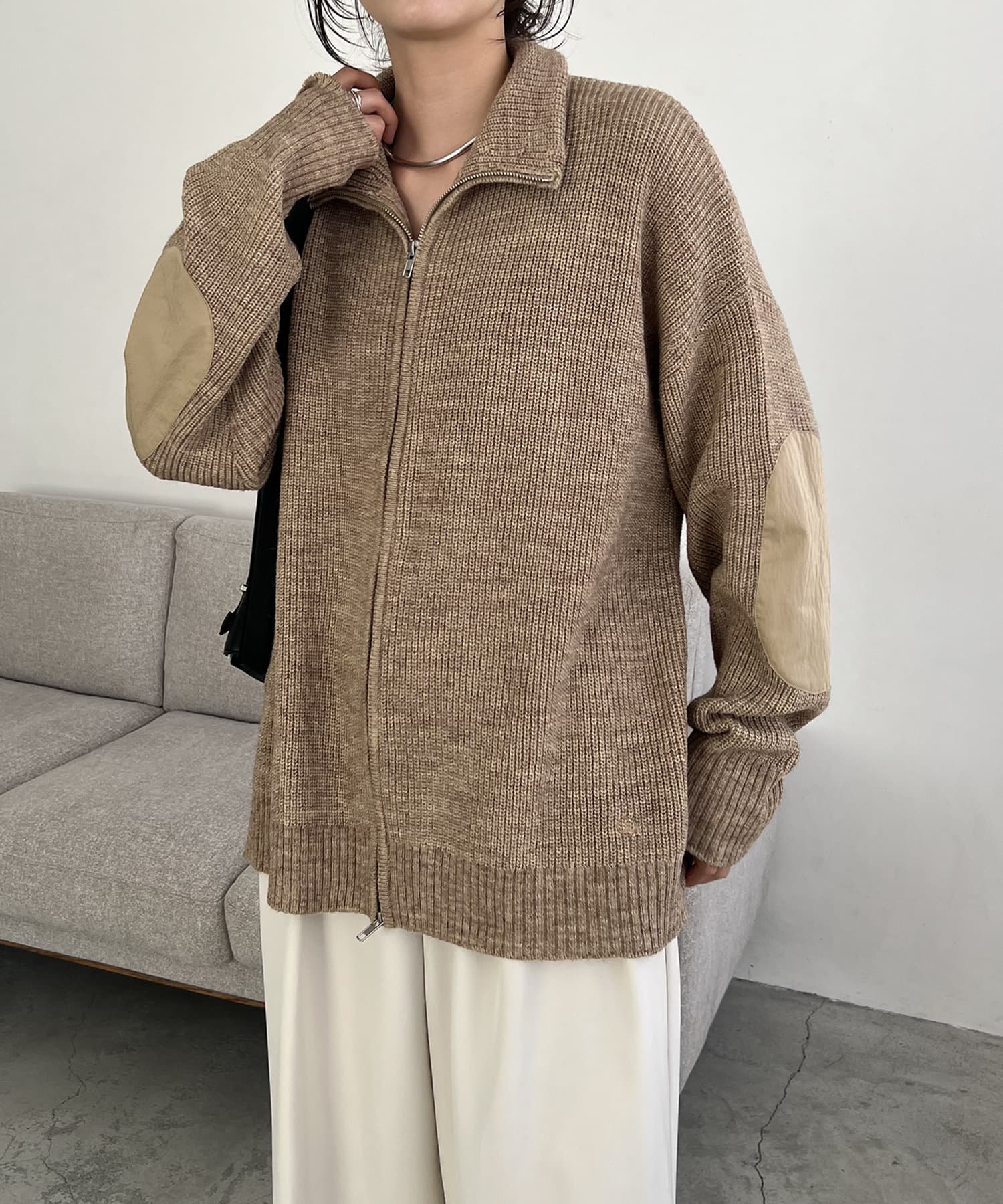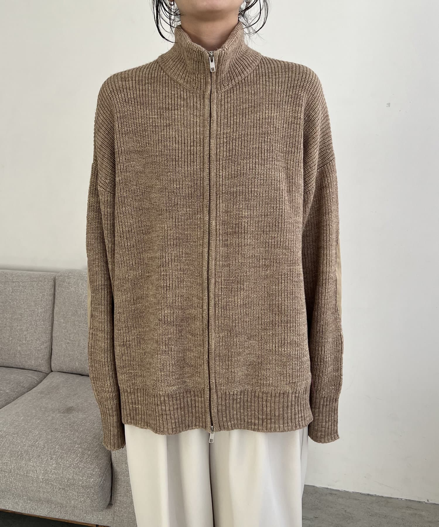 エルボーパッチジップニット