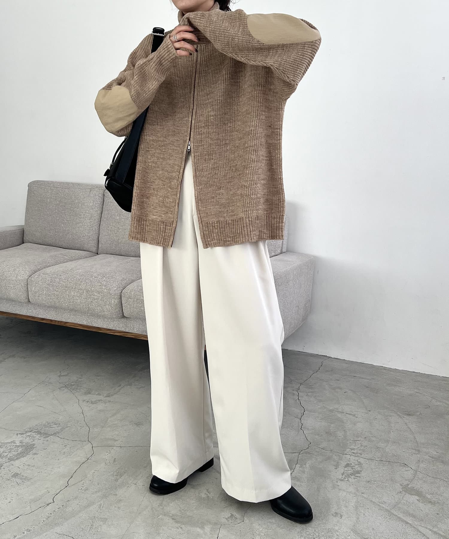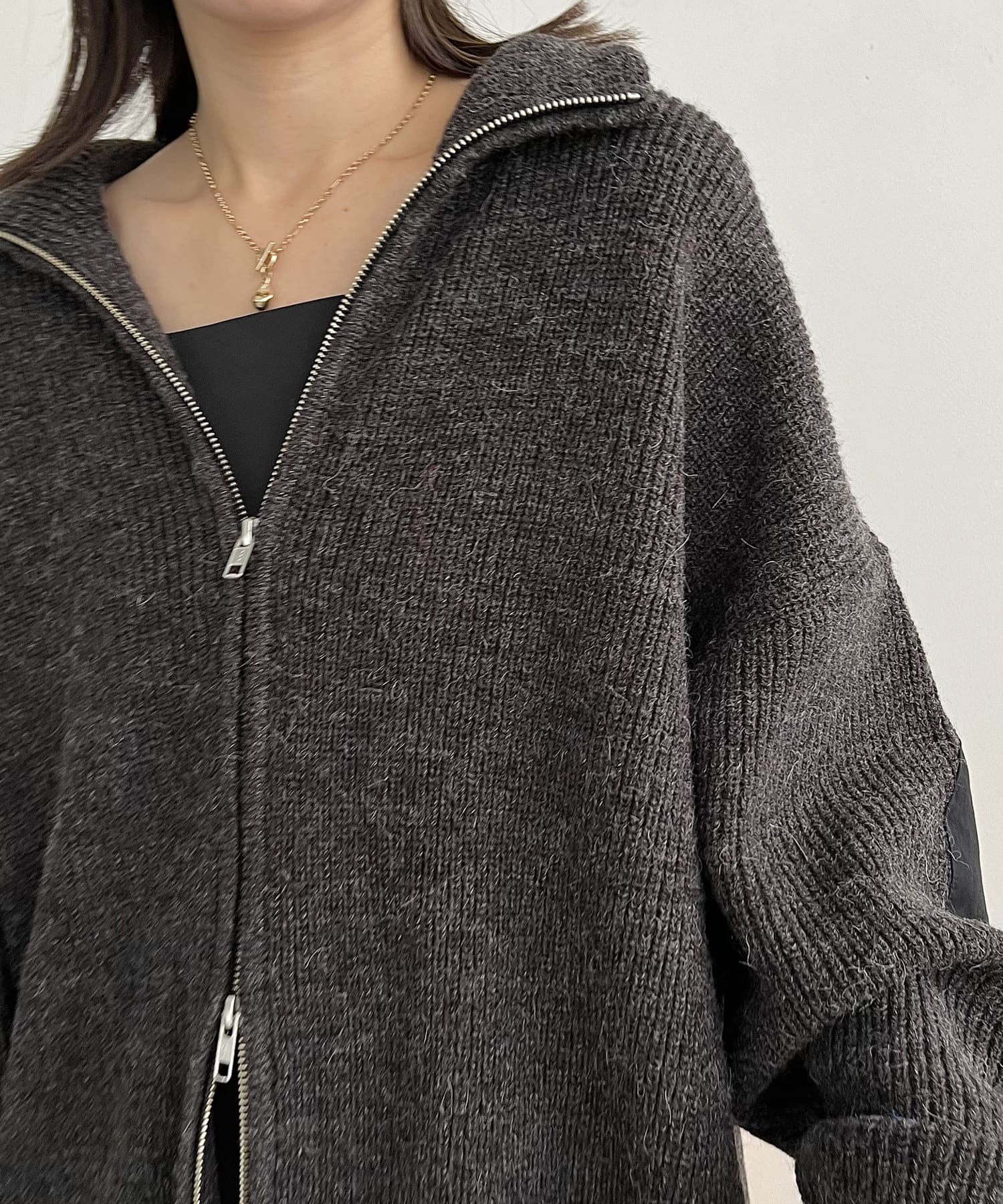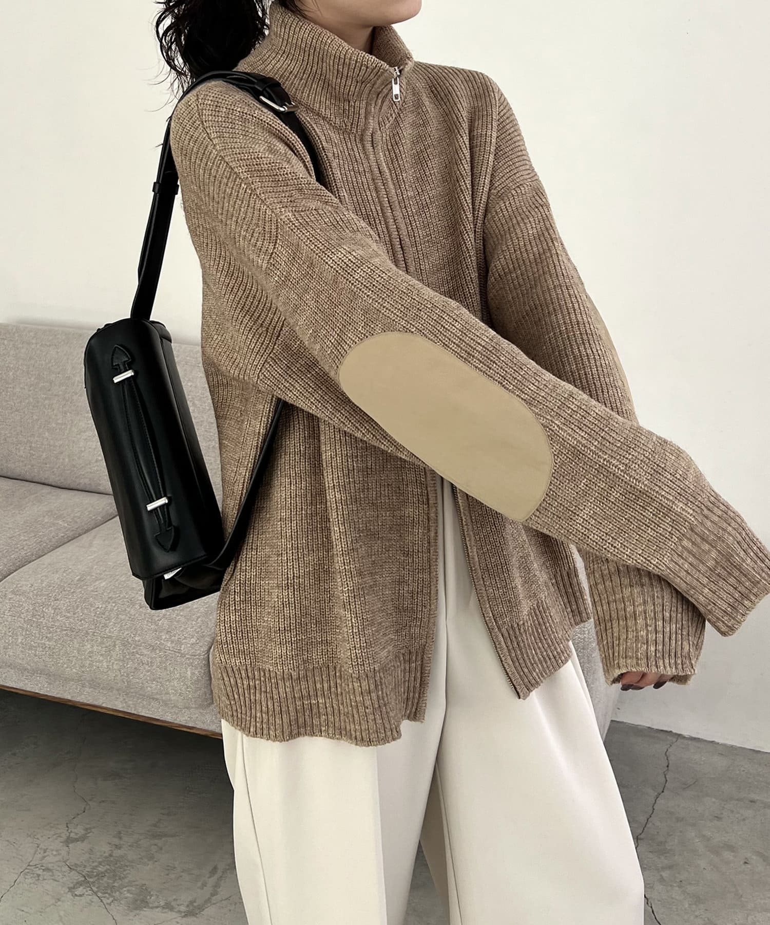 エルボーパッチジップニット