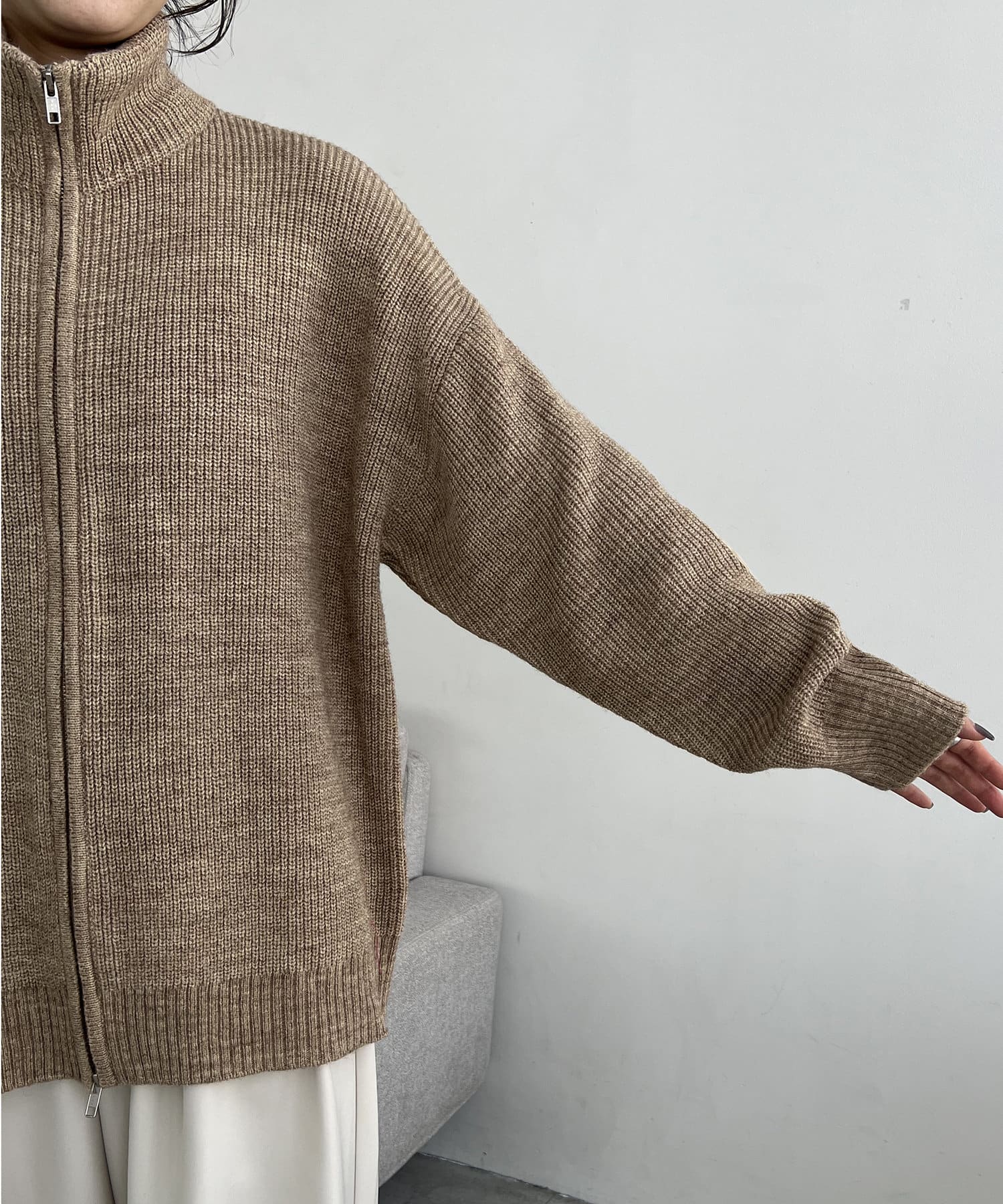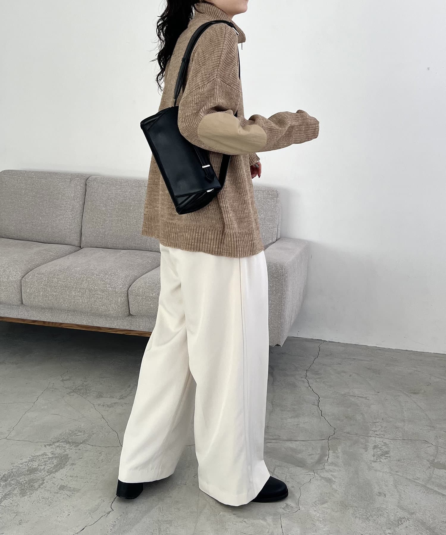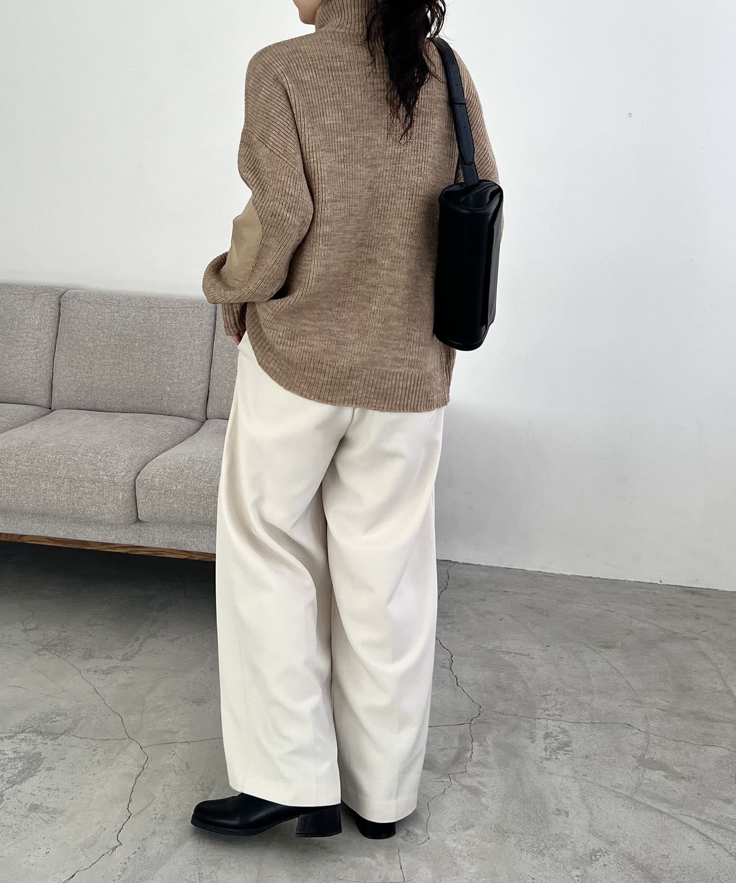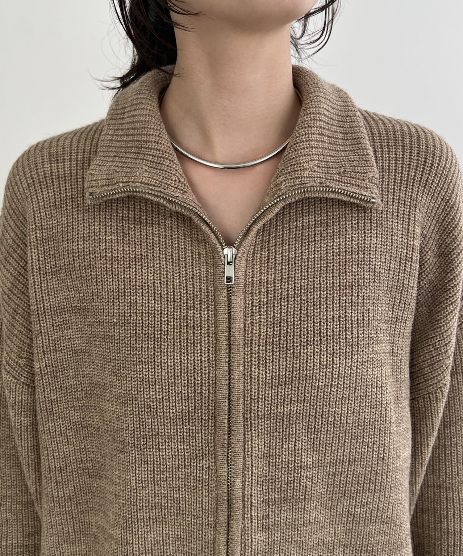 エルボーパッチジップニット