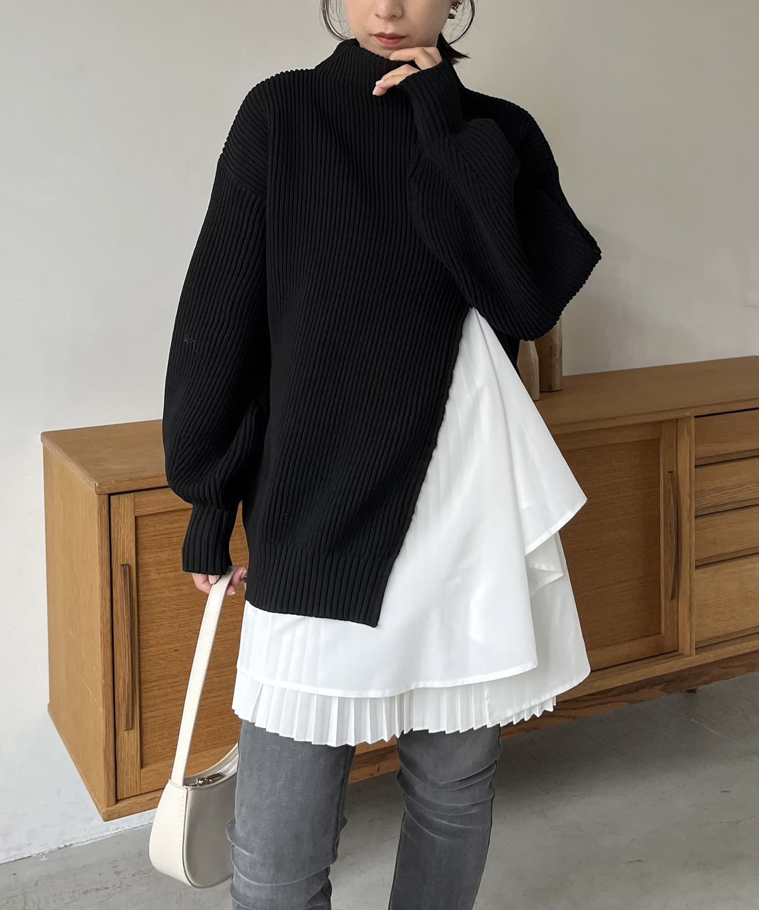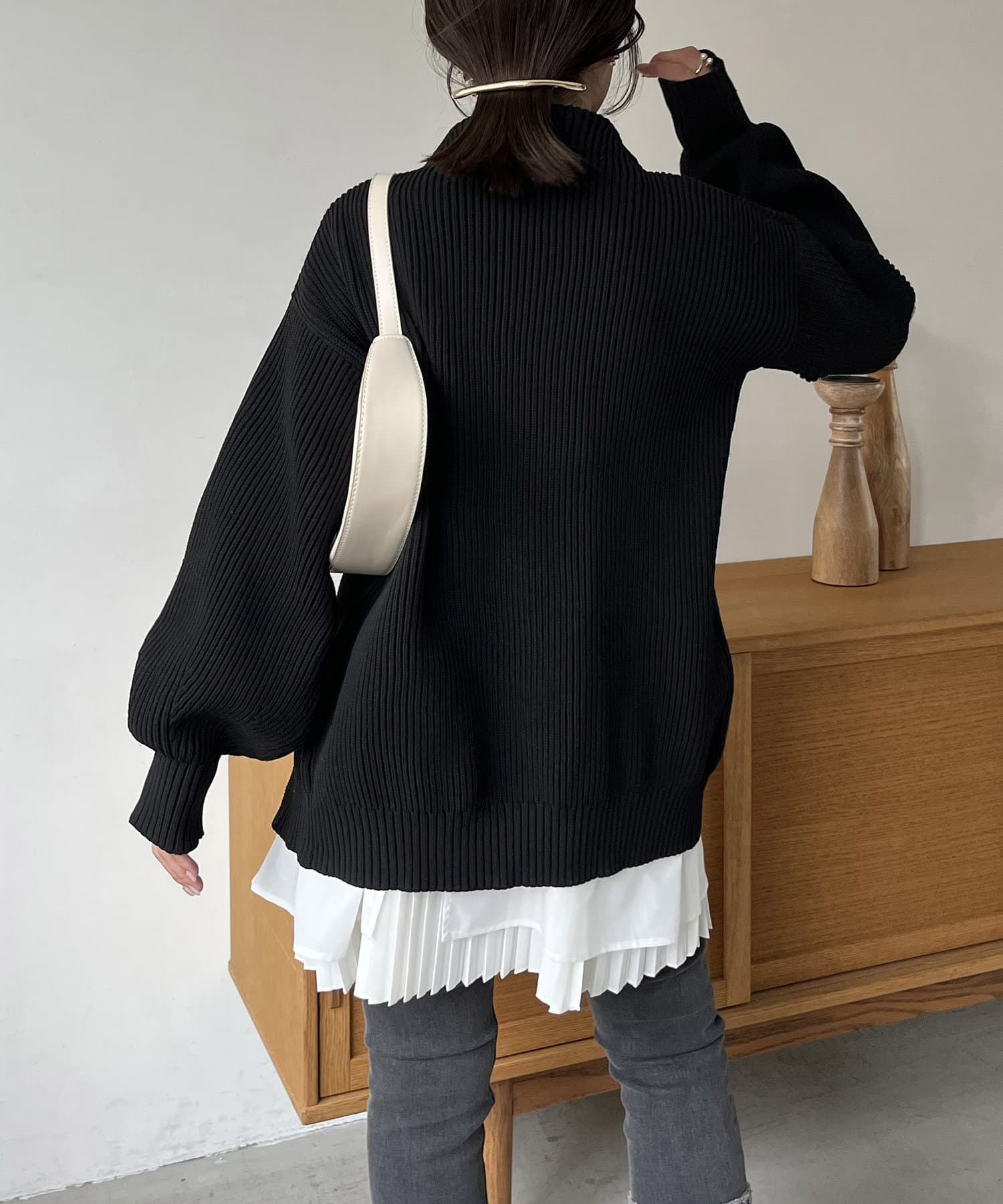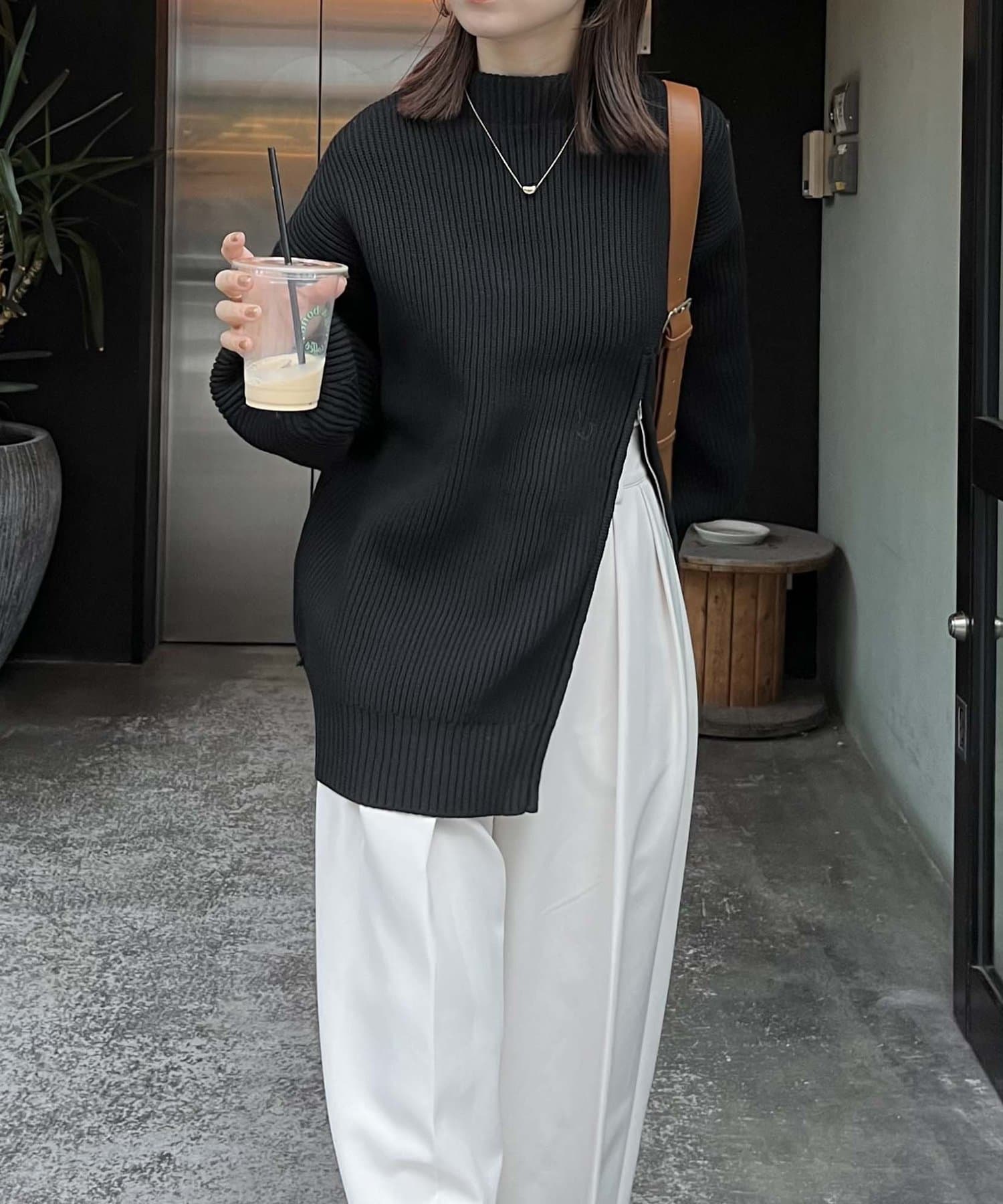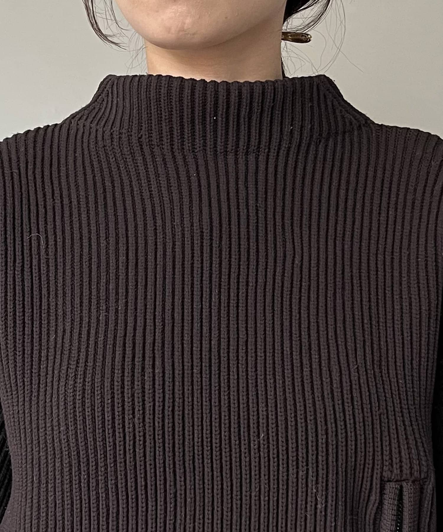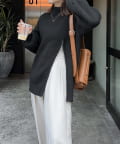 ・モックネックで腰回りが隠れる丈感