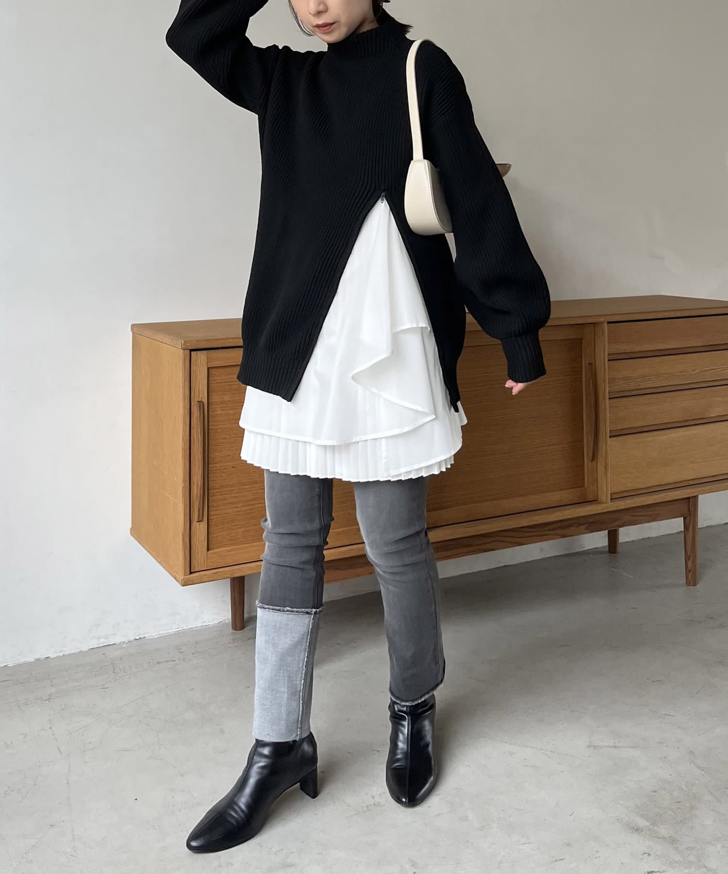 ・ジップを開けてスリット風に着るのがおすすめ
