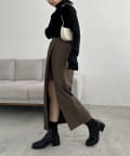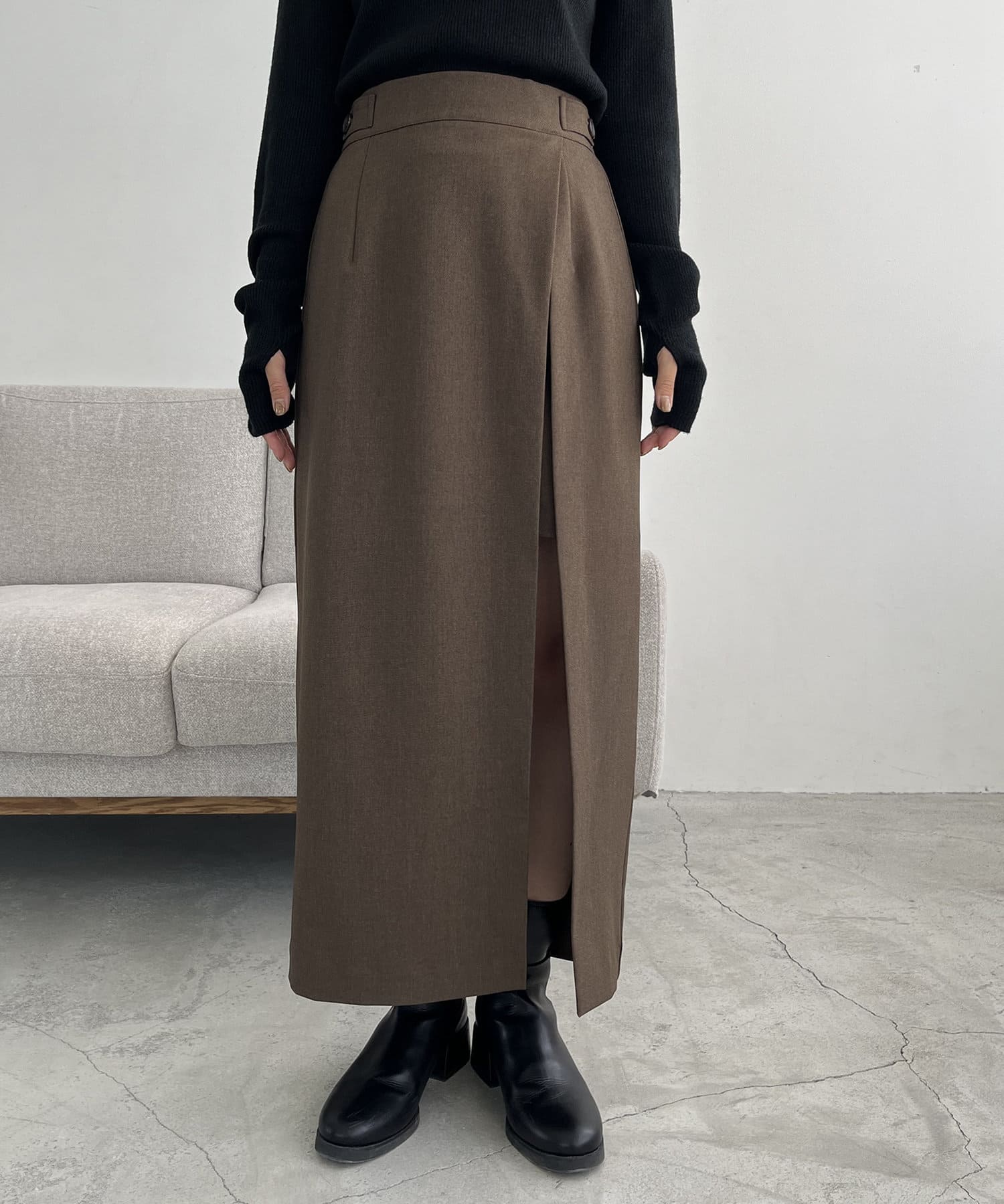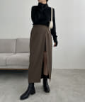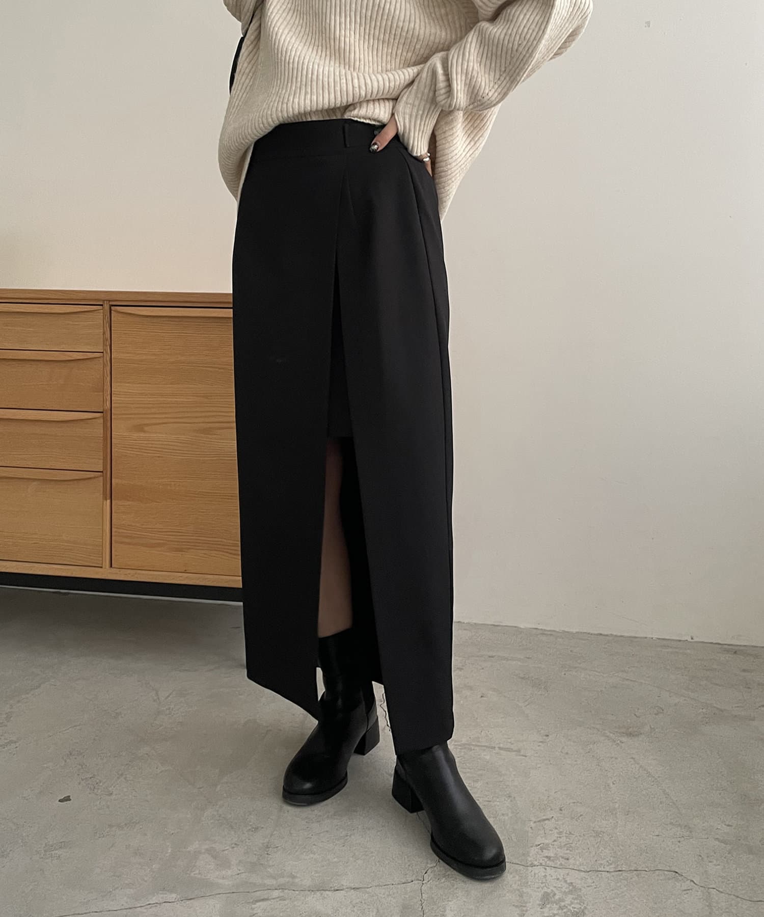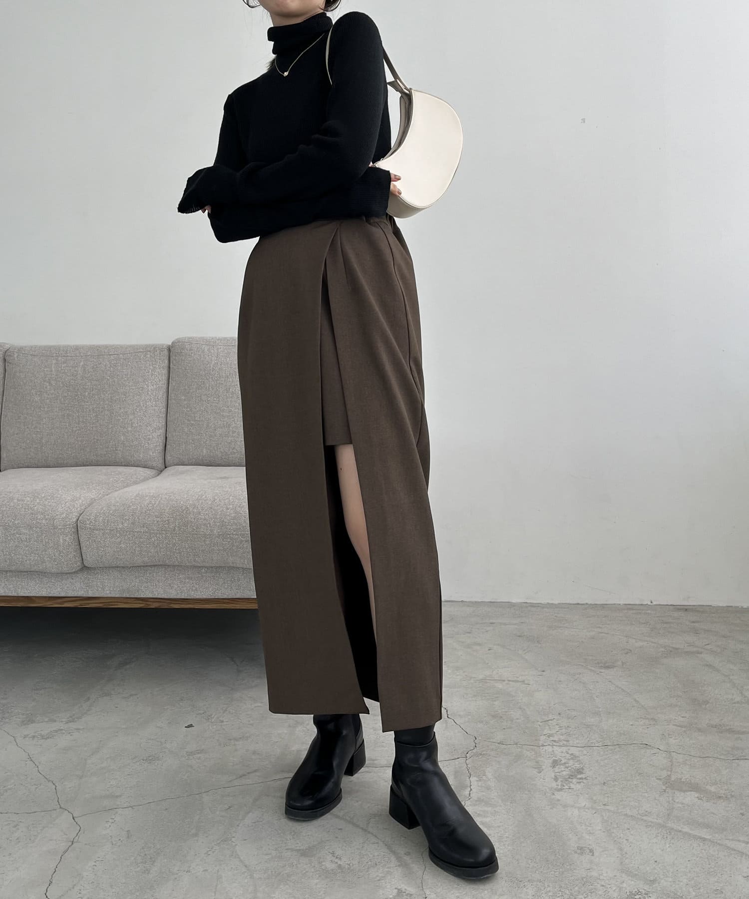 ・トレンドのミニ丈ボトムにIラインスカートがレイヤードされたデザイン