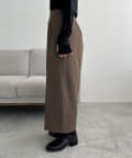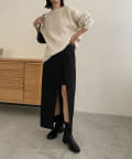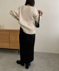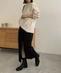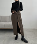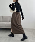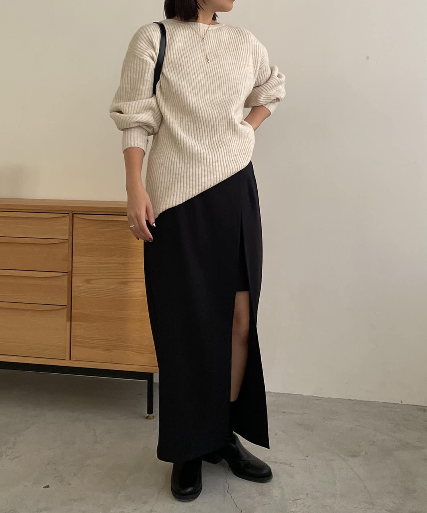 ・シンプルにリブニット合わせでボトムを引き立たせて