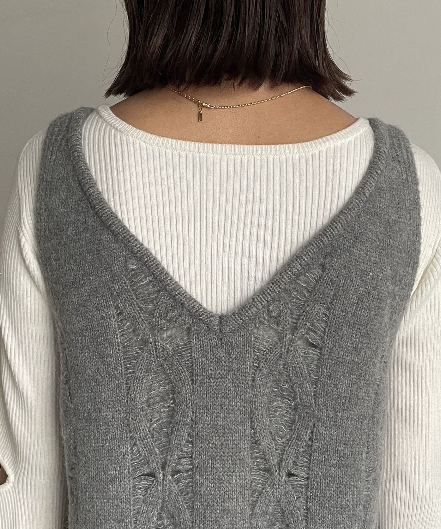 ・背中もVに開いておりバックスタイルも抜け感あり◎