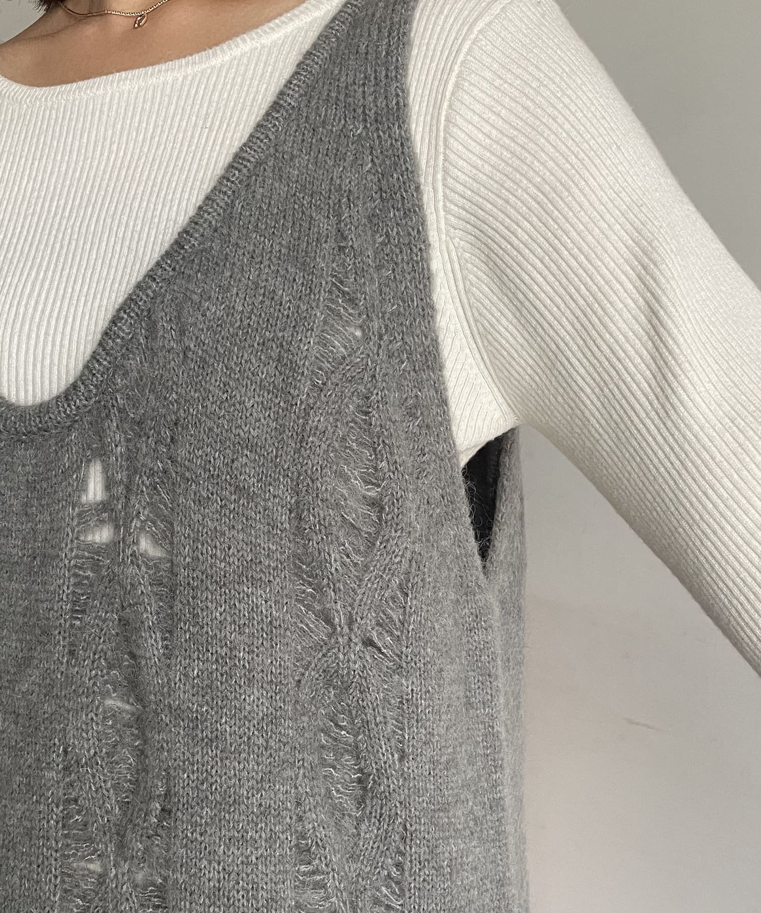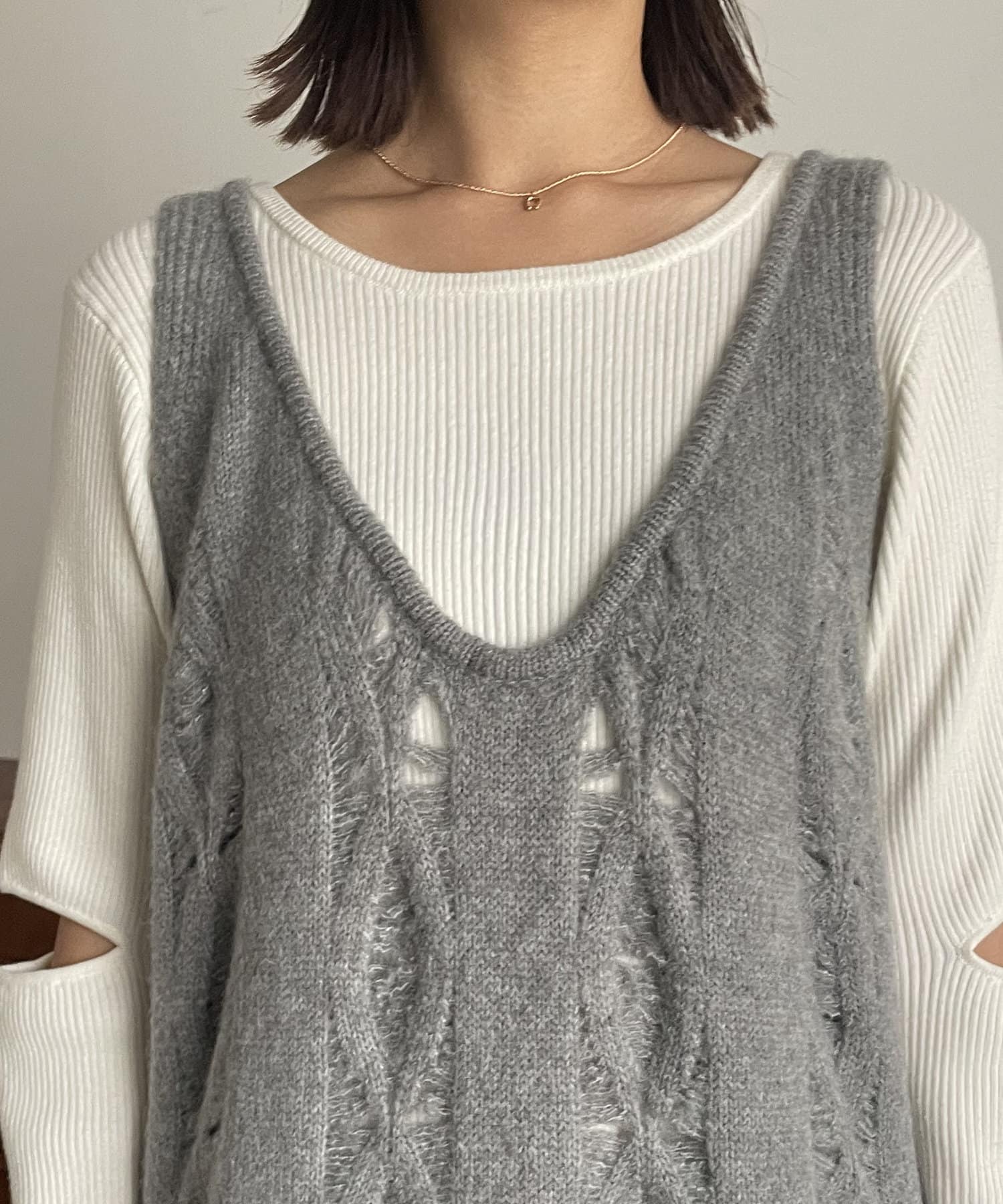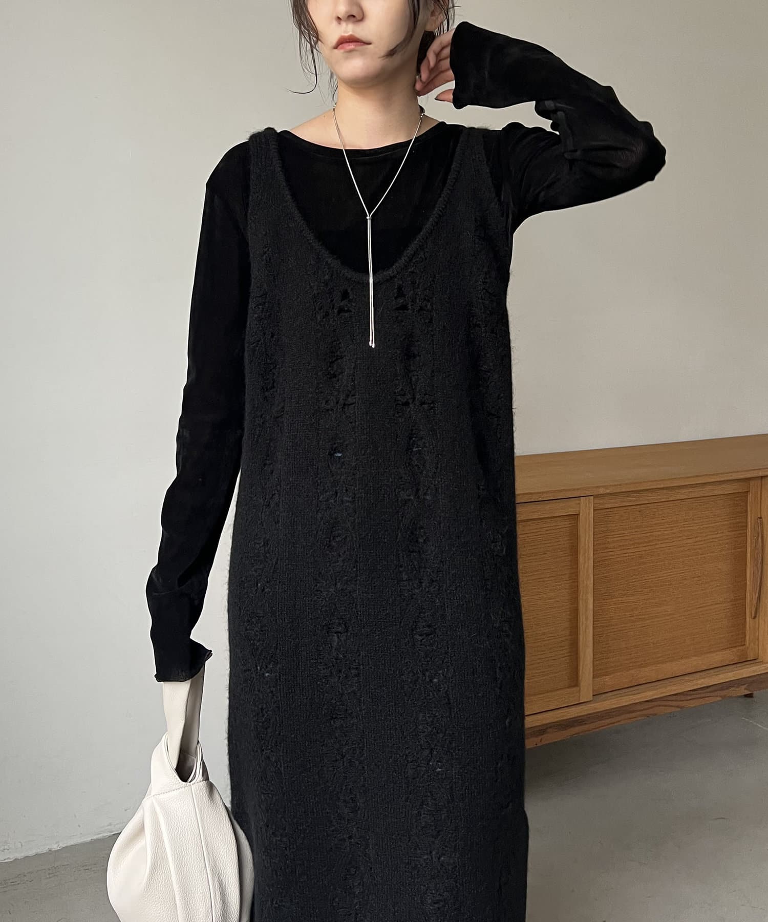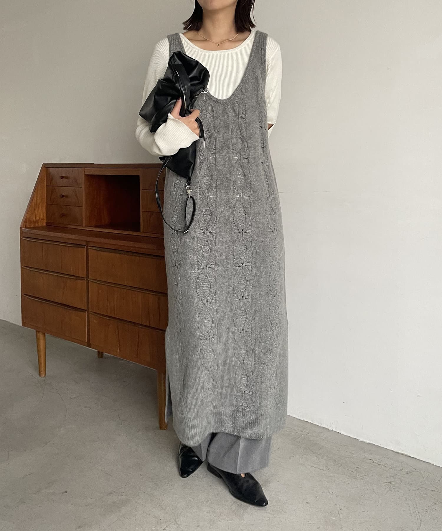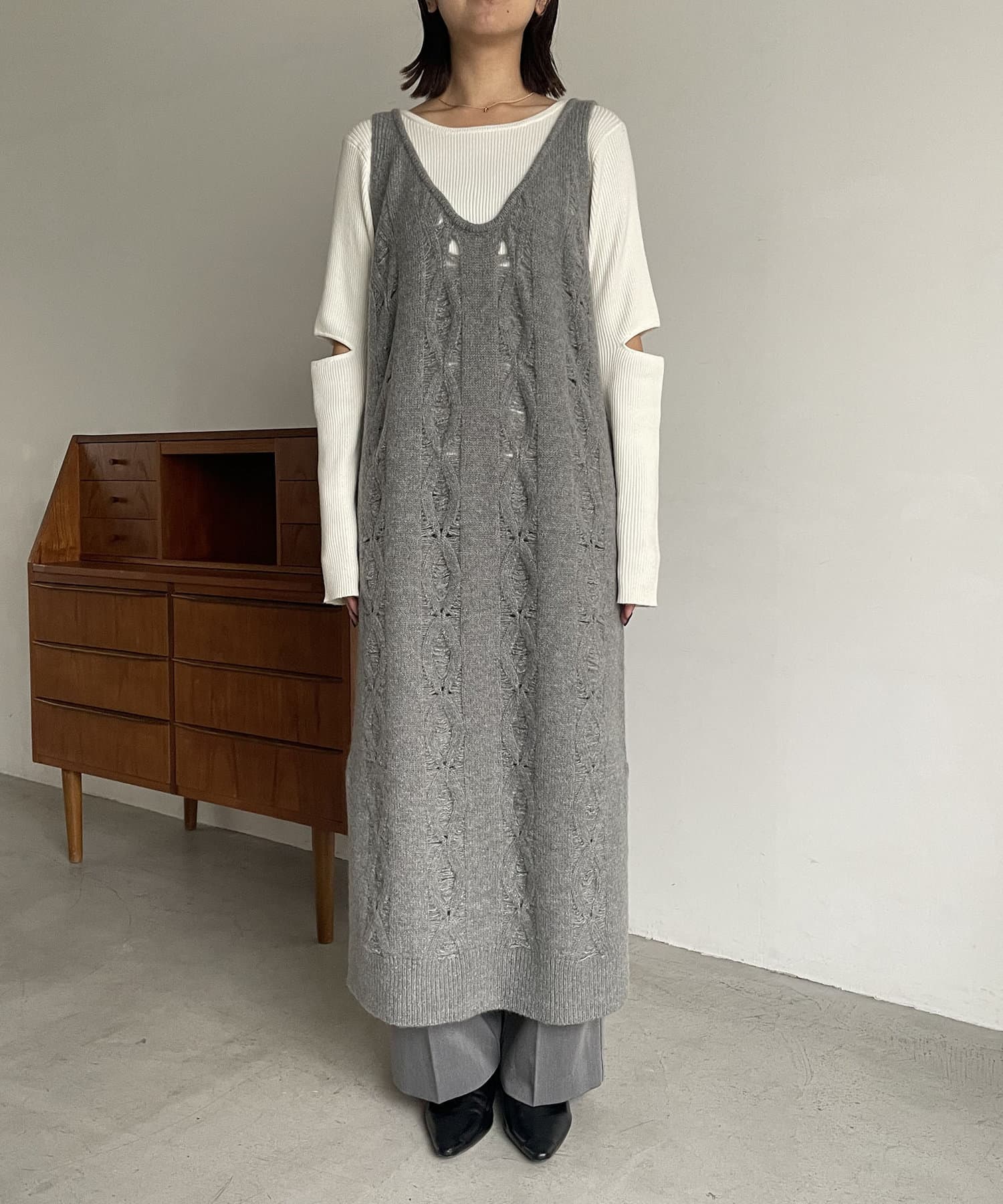 全体が透かし編みになっているレイヤード用ワンピース