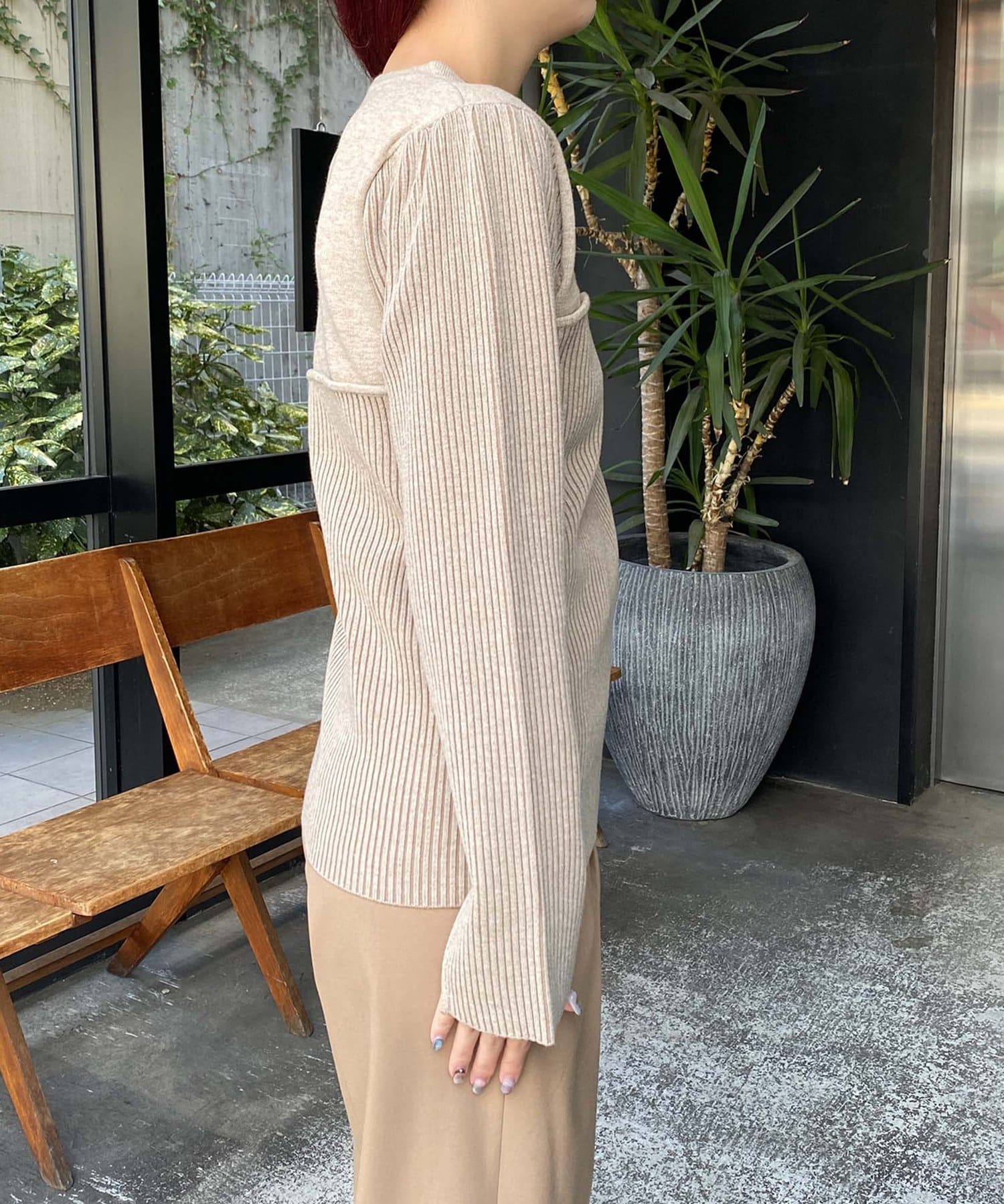 方が少しフワッと袖にはスリット。