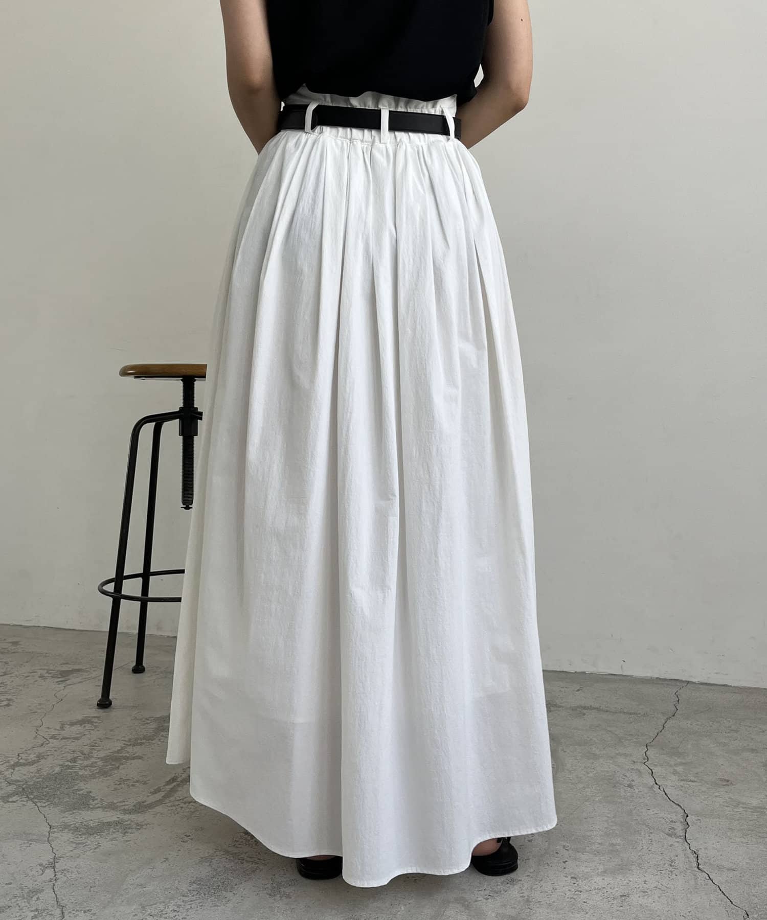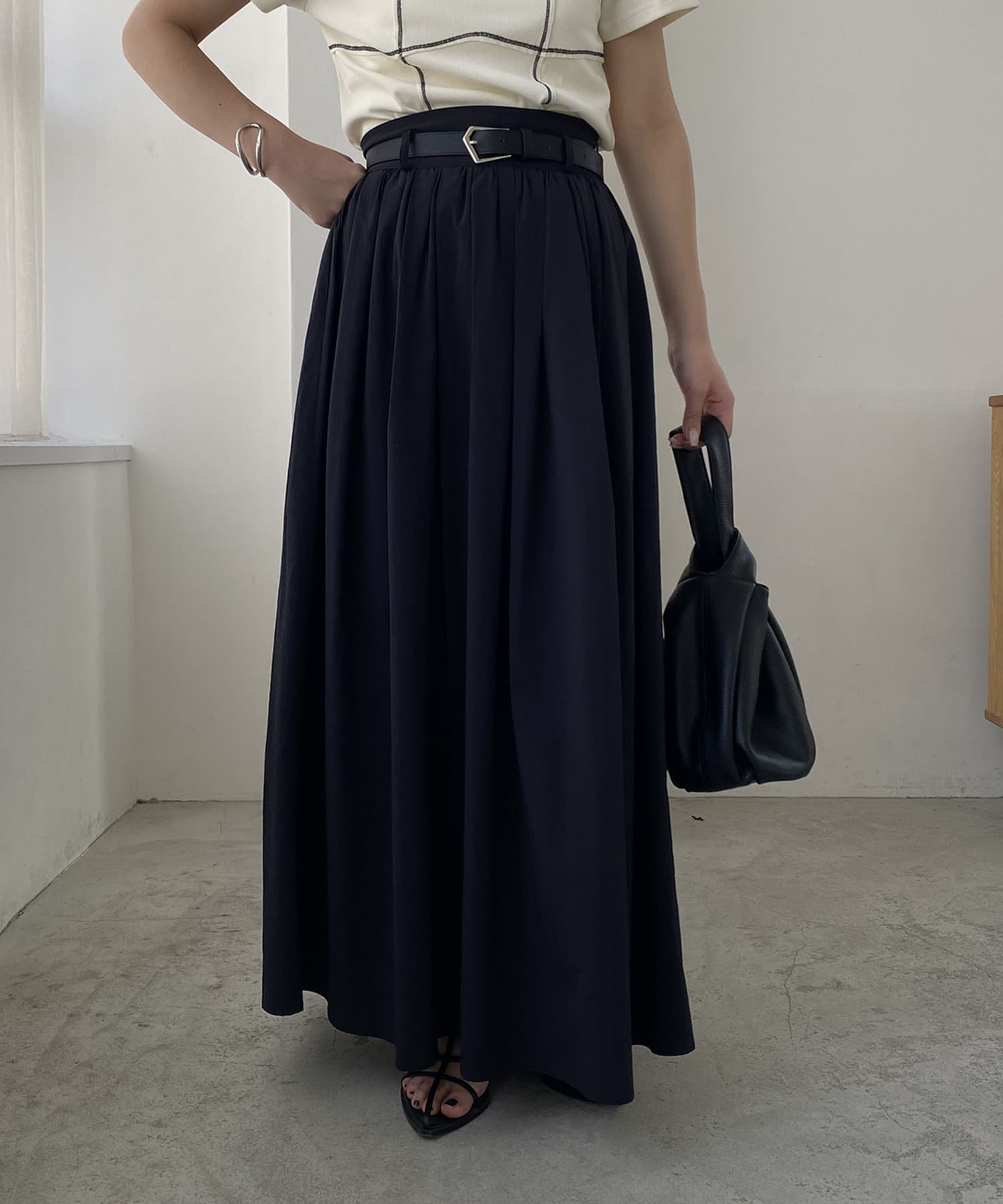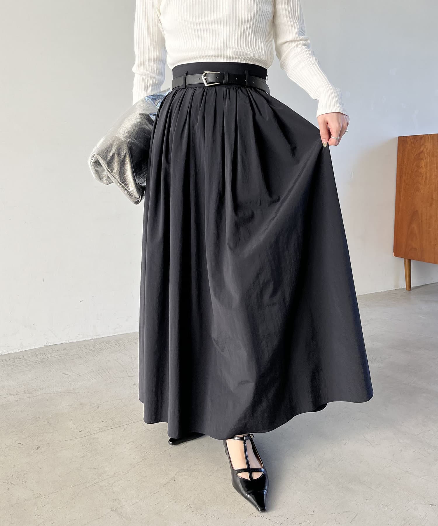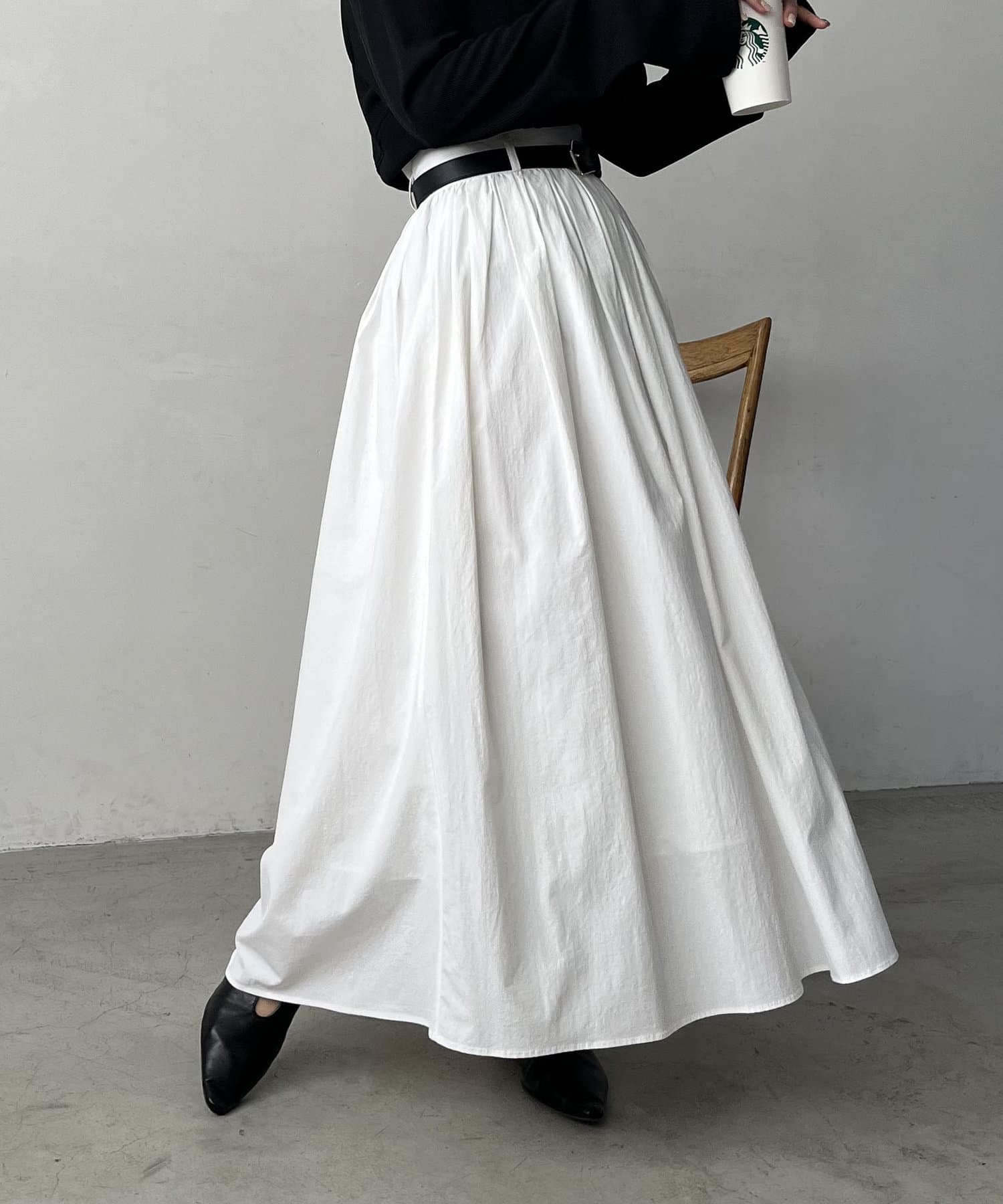 ・ウエストベルトが少し太めになっていて、ギャザースカート特有のウエスト周りのふくらみが気にならないデザインに