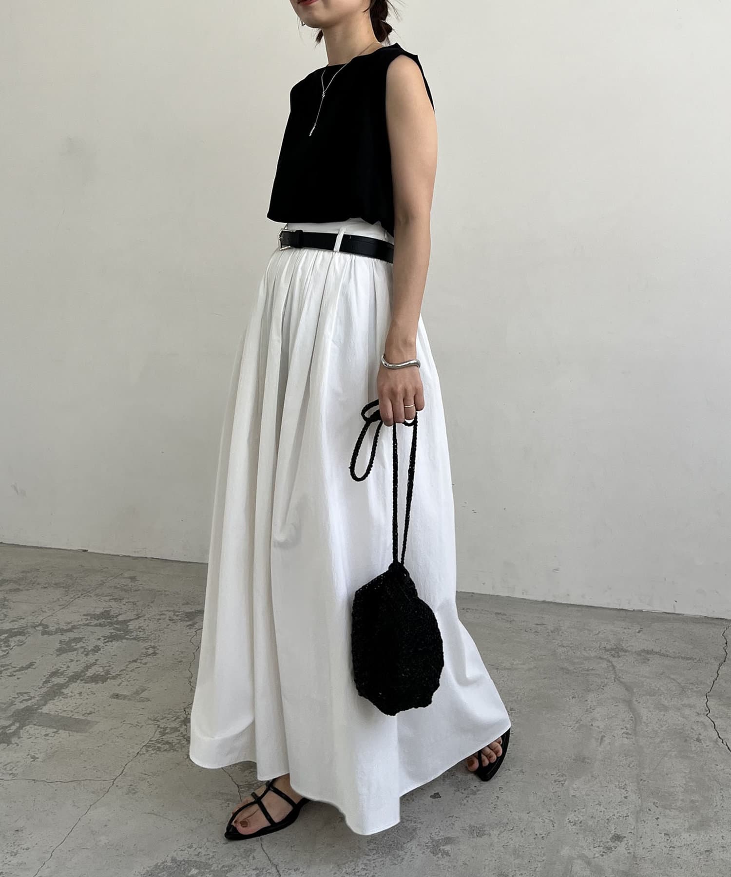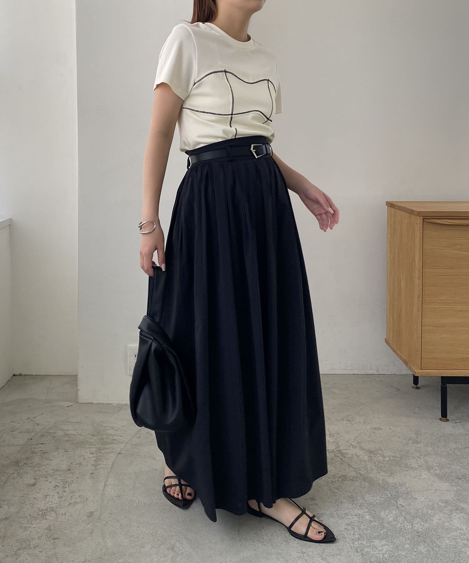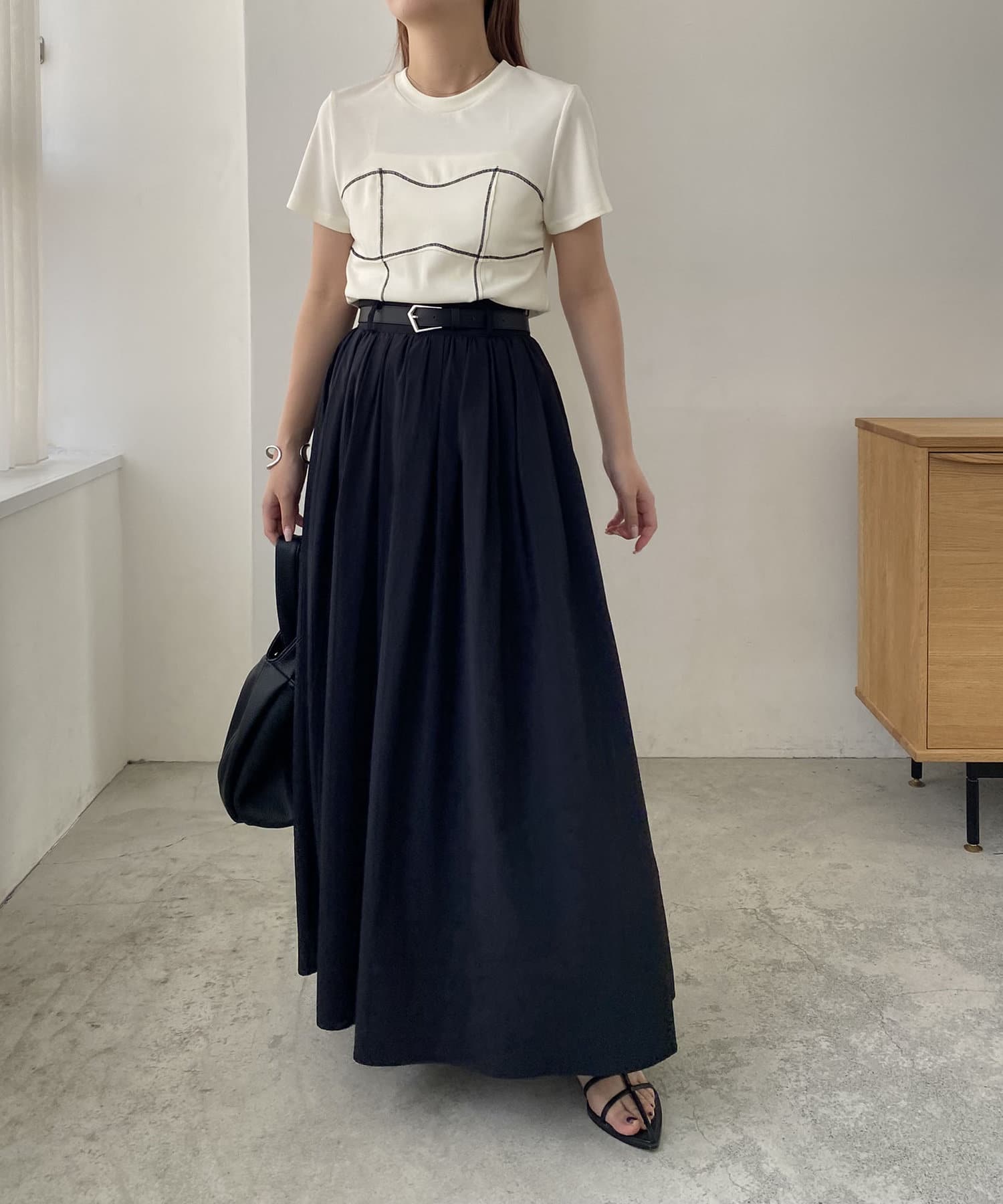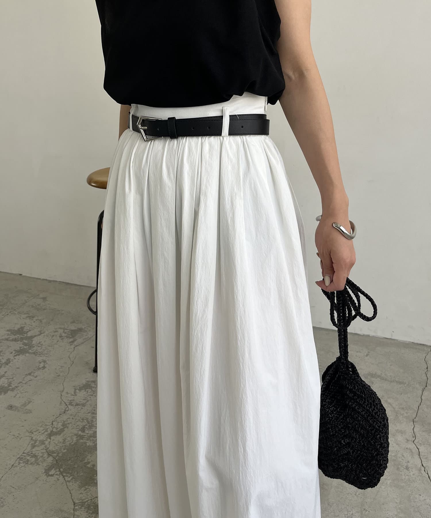 ・ウエストベルトが少し太めになっていて、ギャザースカート特有のウエスト周りのふくらみが気にならないデザインに