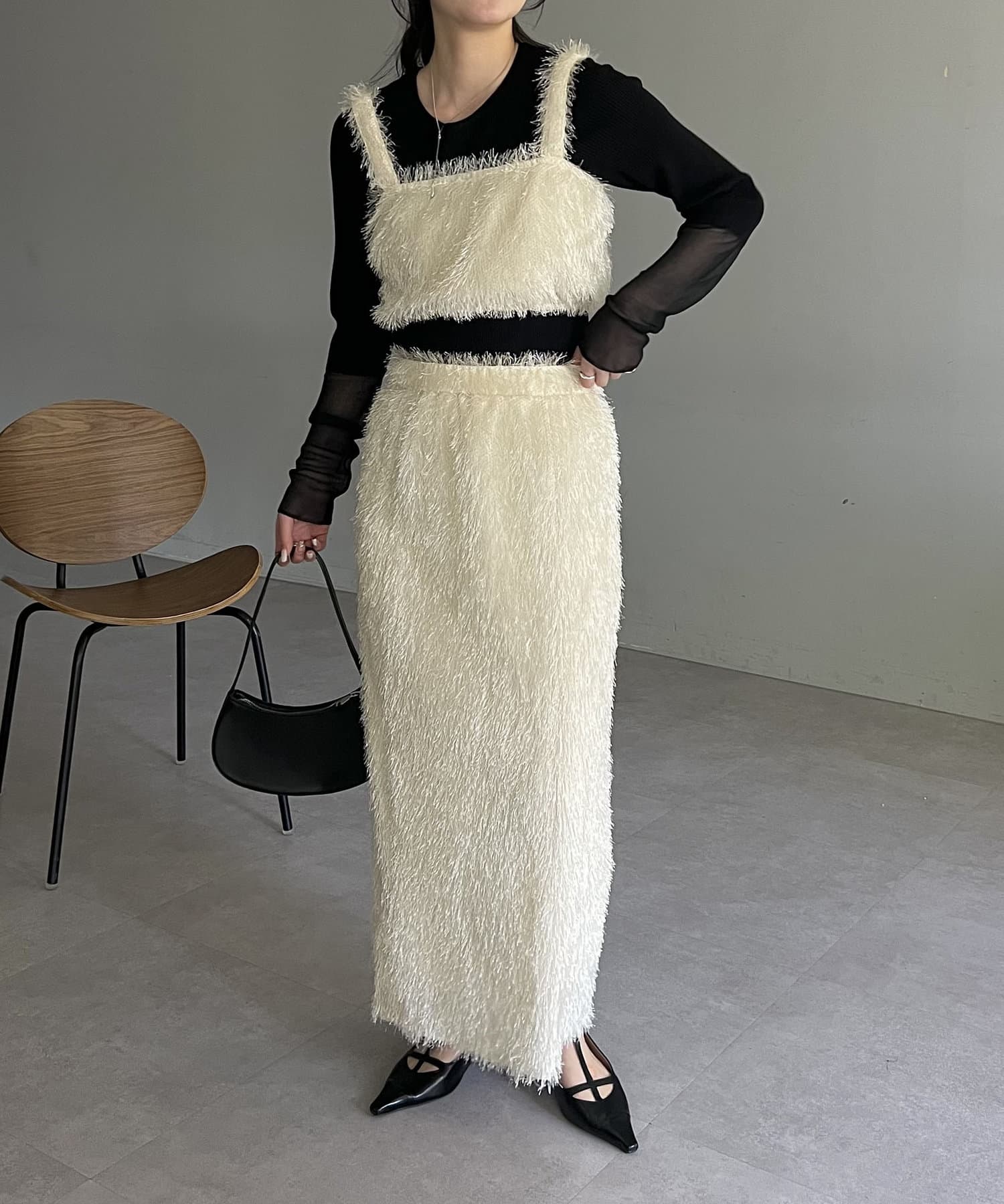 【CAPRICIEUX LE'MAGE】フェザーフリンジスカート