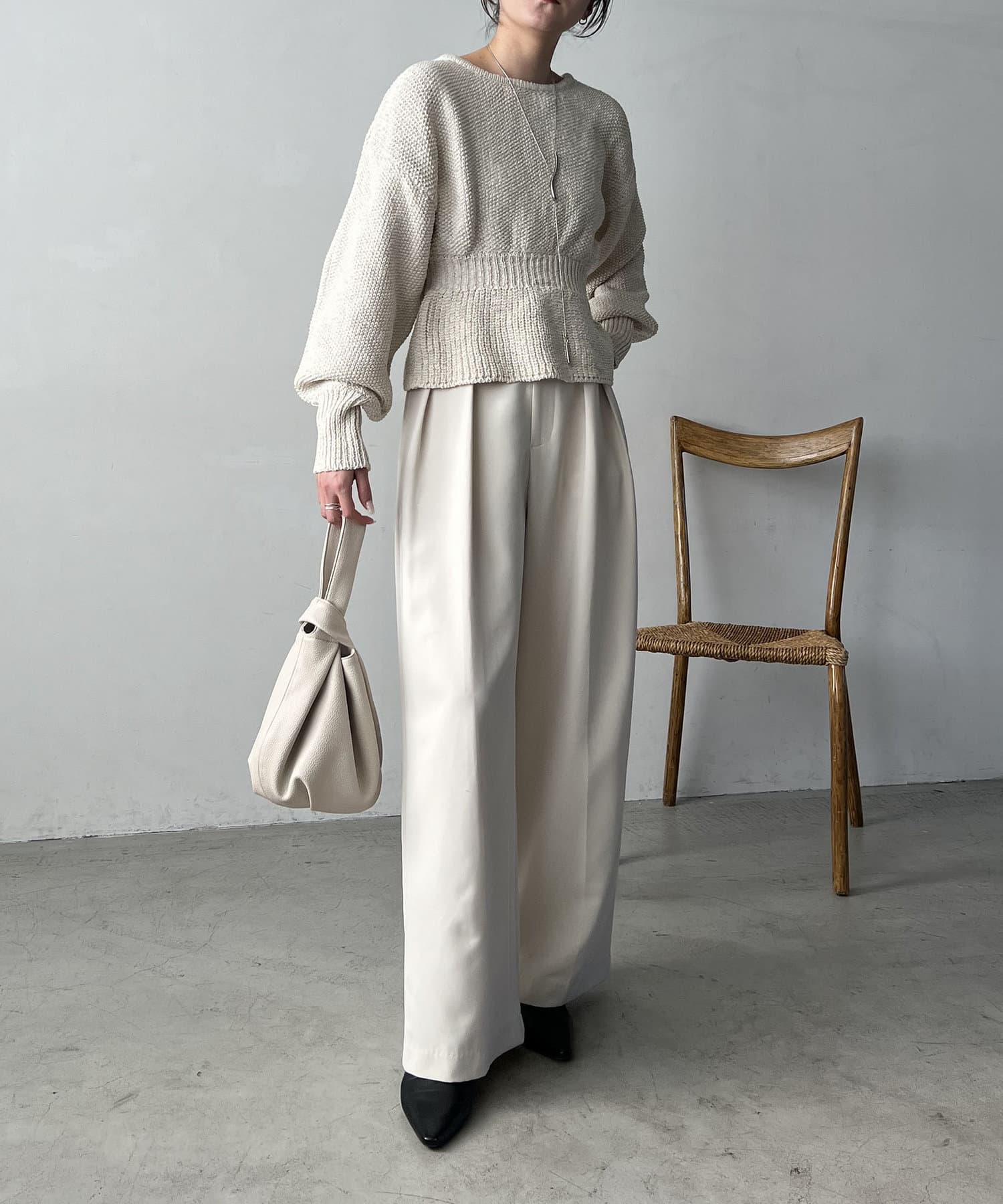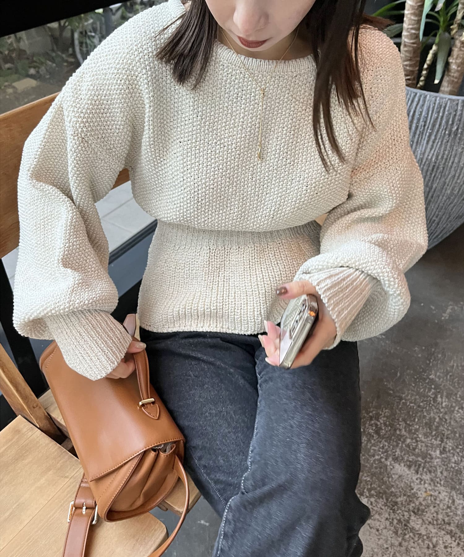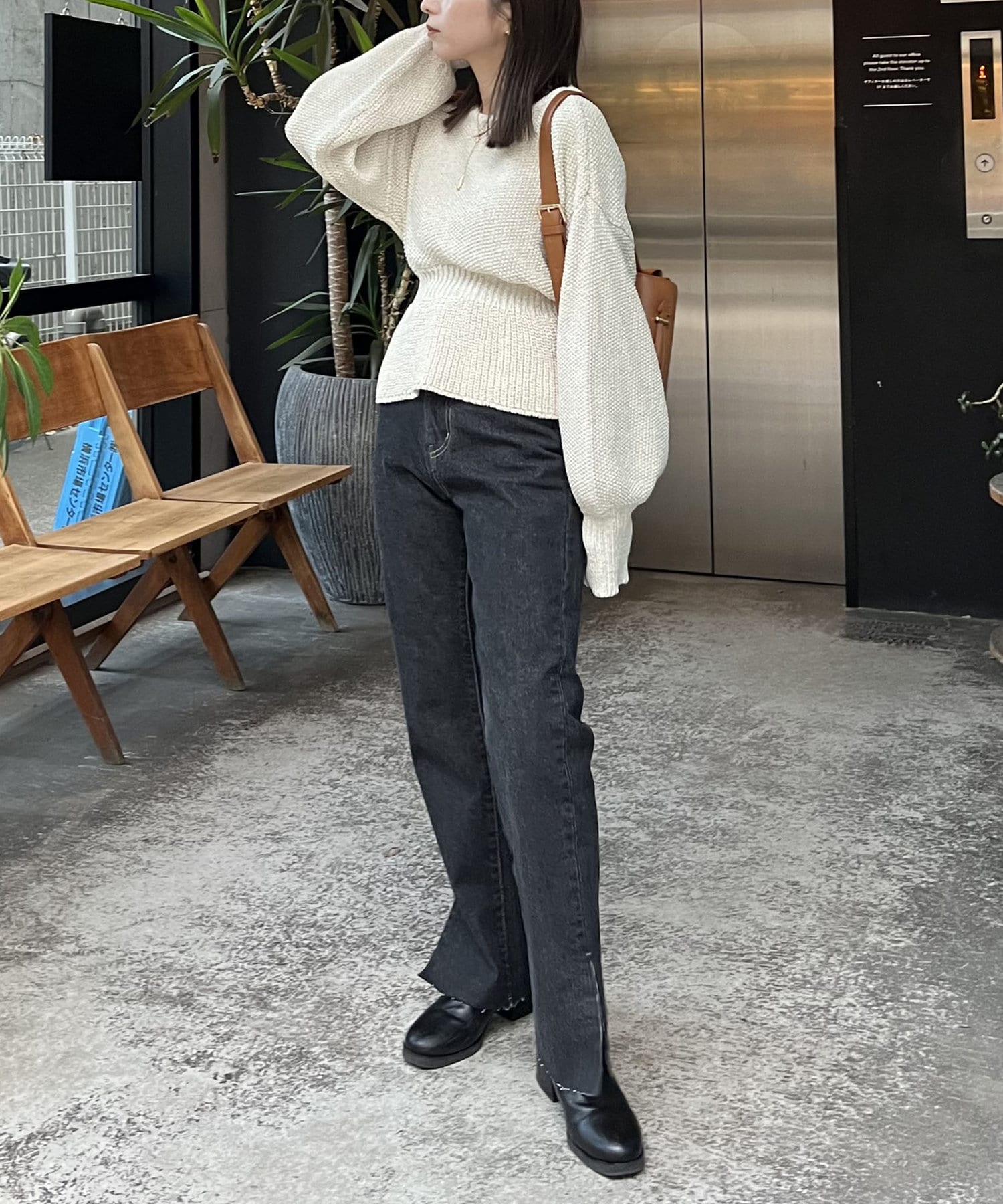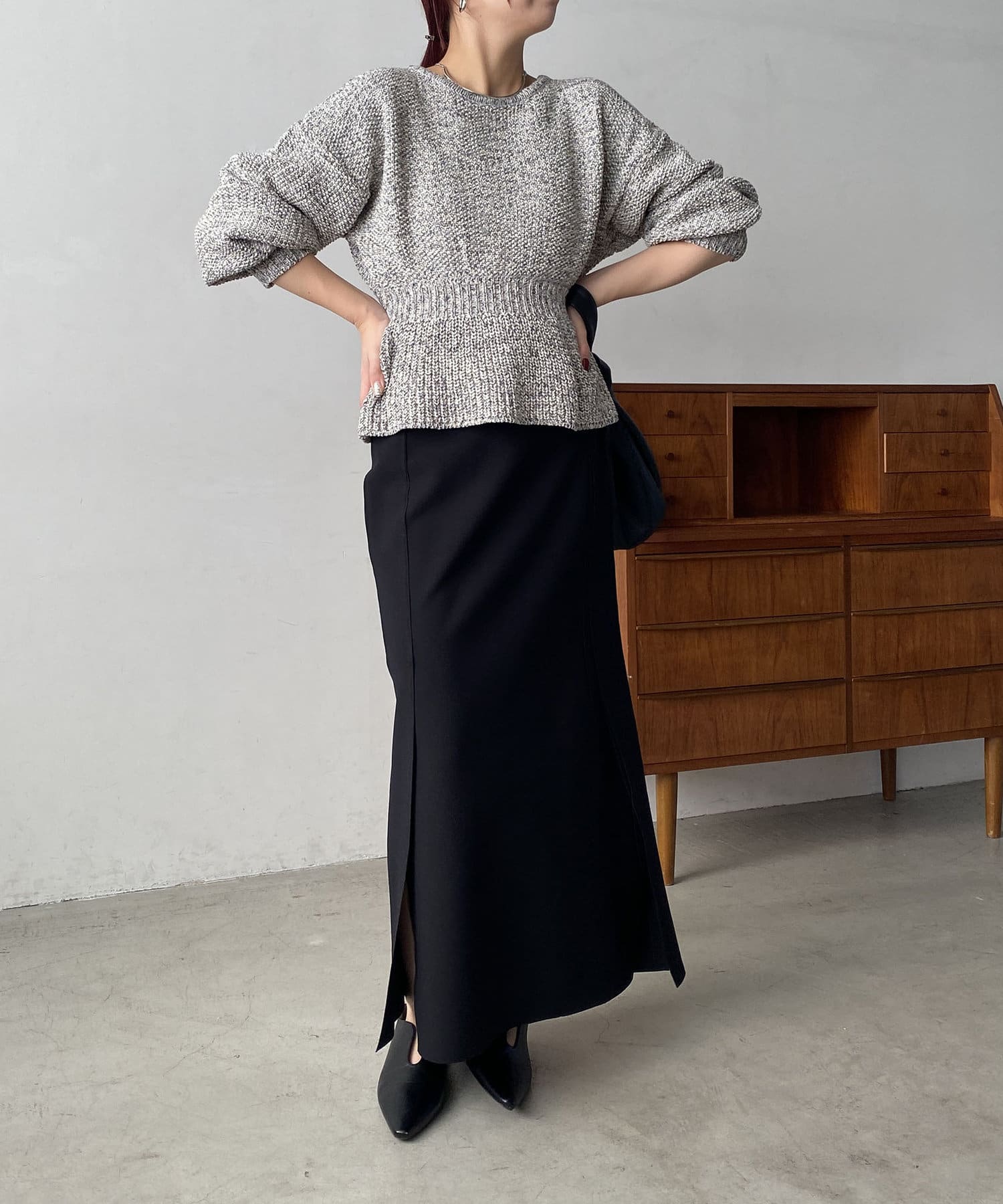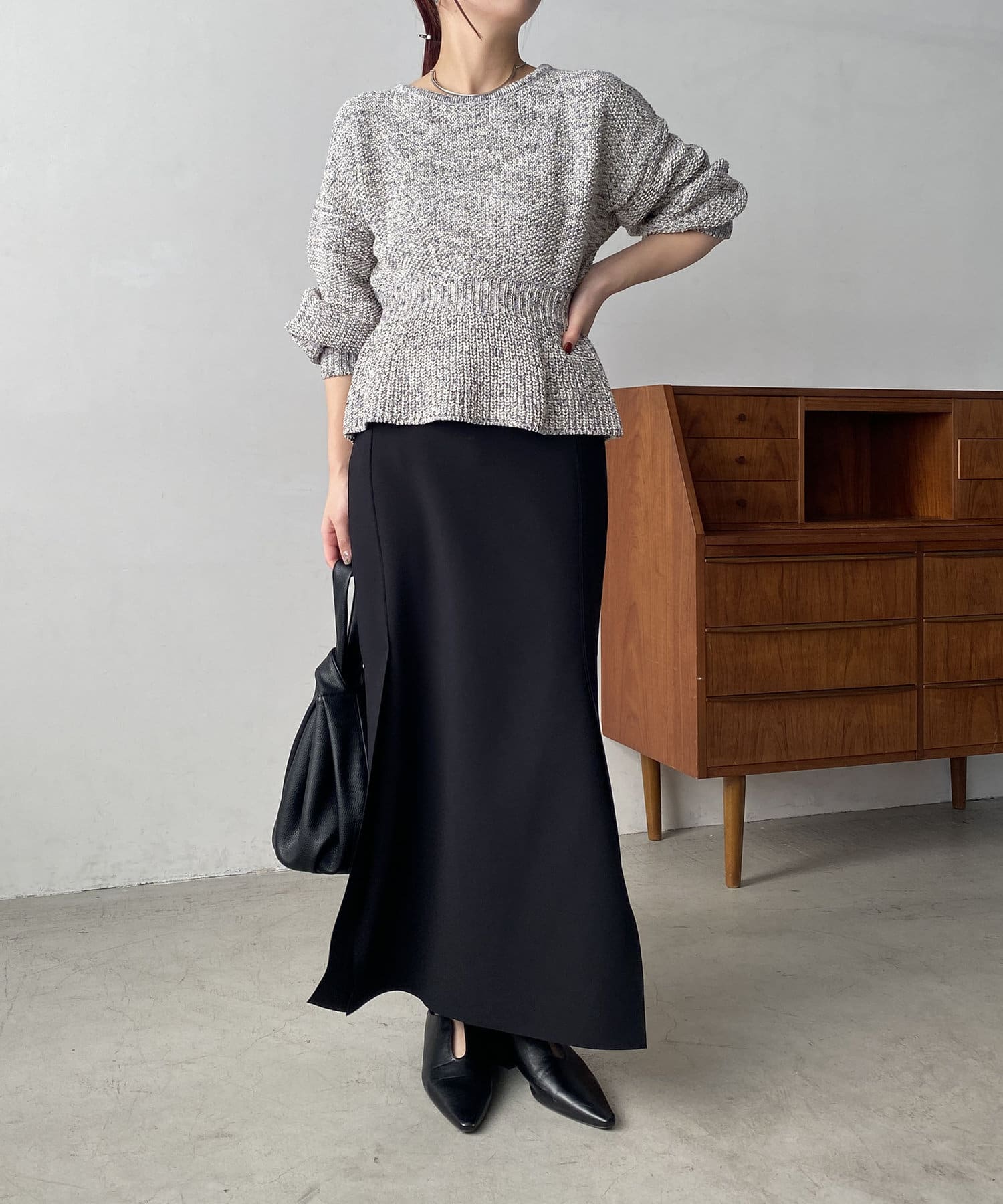 ペプラム型なので普通のニットとの差別化もできておしゃれに大人っぽい印象になります。