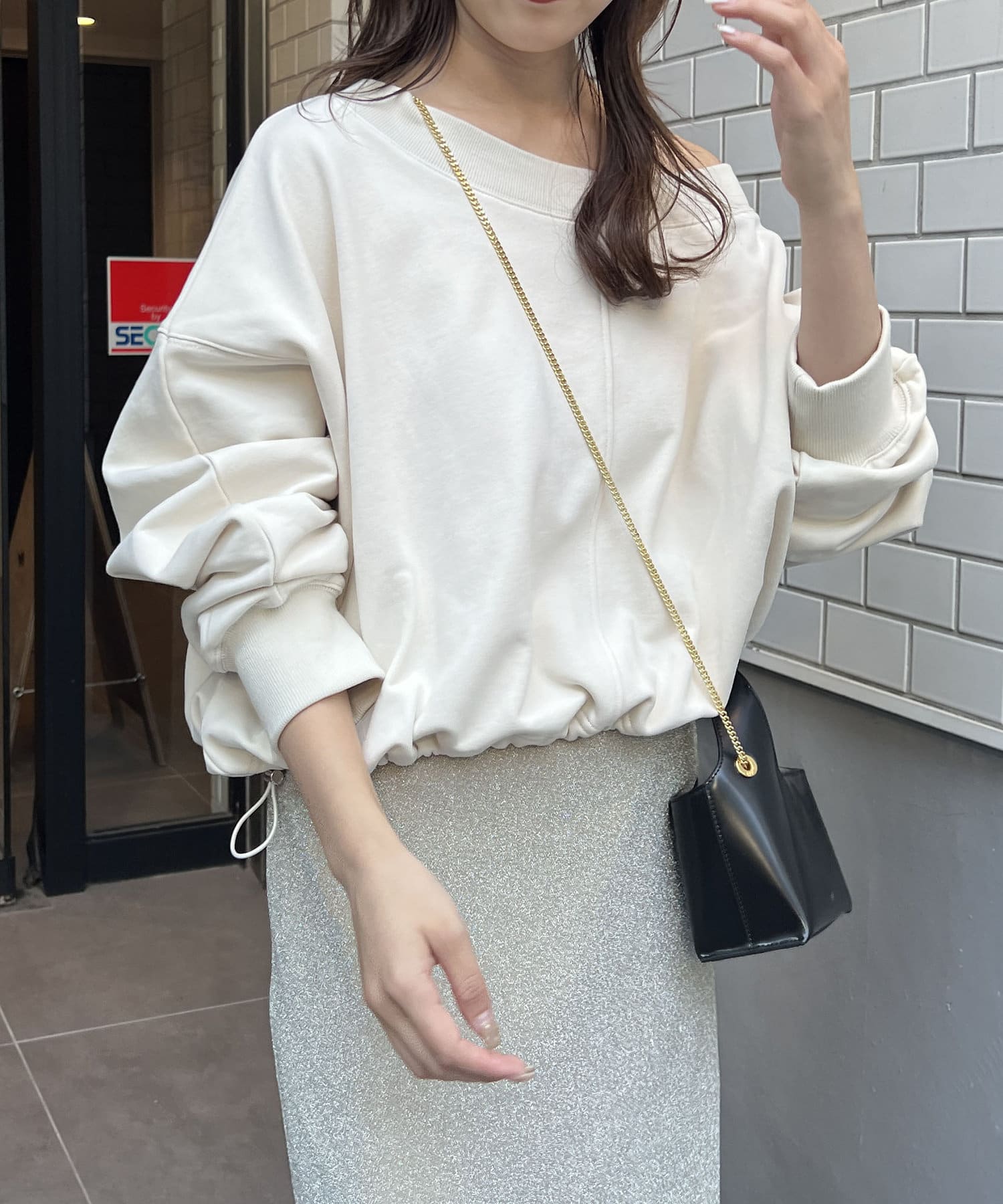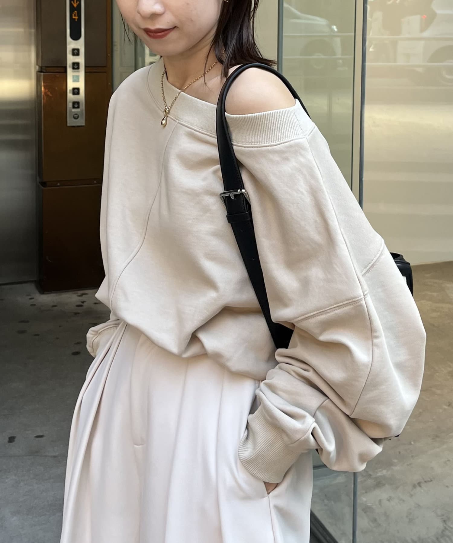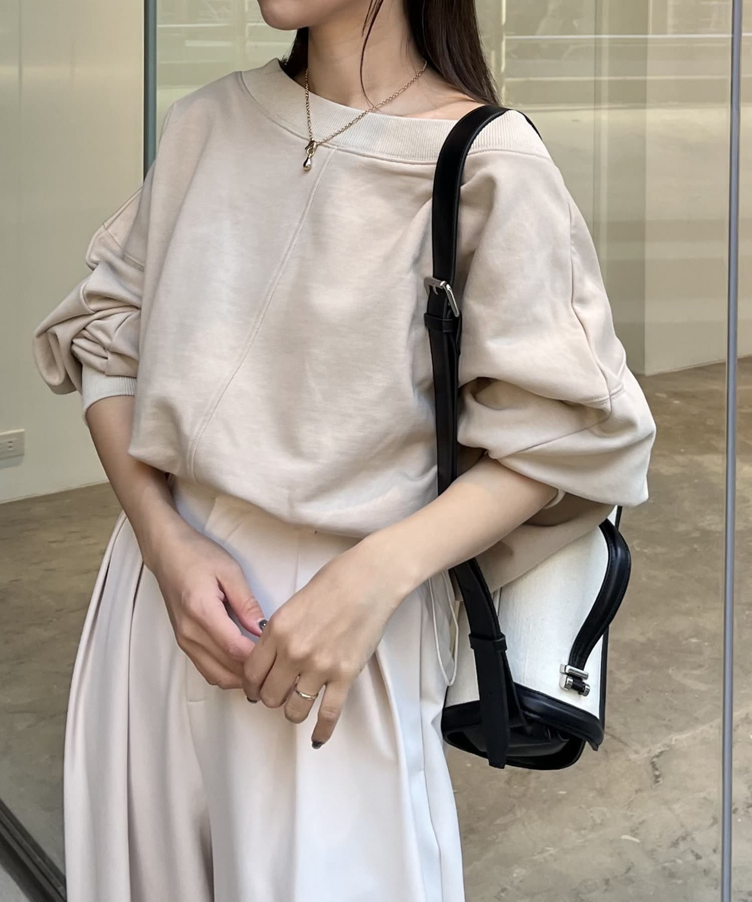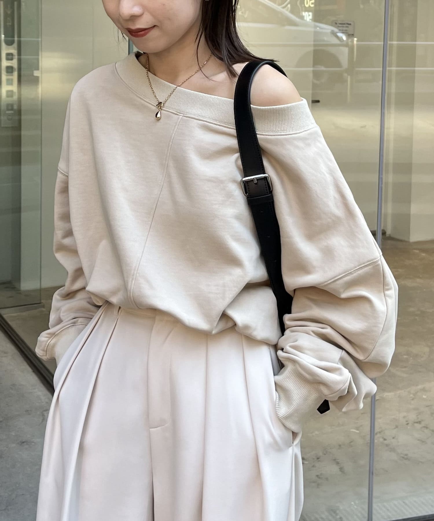 ・肩を落としてワンショルダーで着ても◎